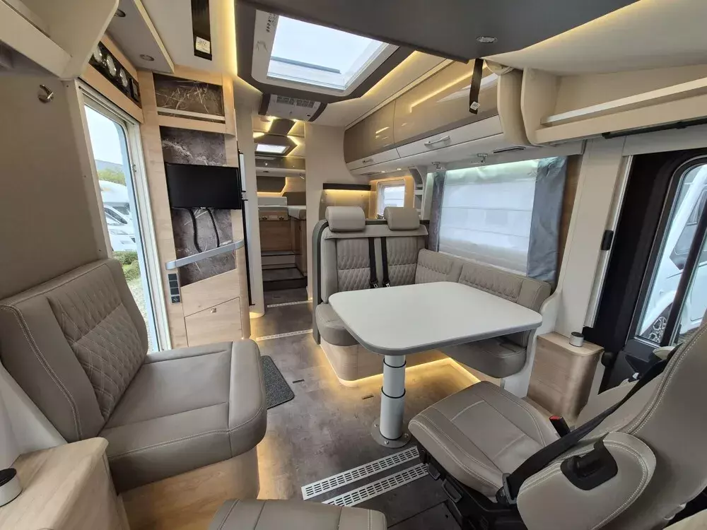 - Light Moments (Light Moments: Beleuchteter Einstiegsgriff, Light Moments: Indirekte Beleuchtung im Badezimmer mit beleuchteter Duschkonsole, Light Moments: Sockelbeleuchtung im gesamten Fahrzeug, Light Moments: Durchgehender Baldachin mit indirekter Beleuchtung, Light Moments: Küchenrückwand beleuchtet, Light Moments: Indirekte dimmbare Wandflächen-Ambientebeleuchtung)