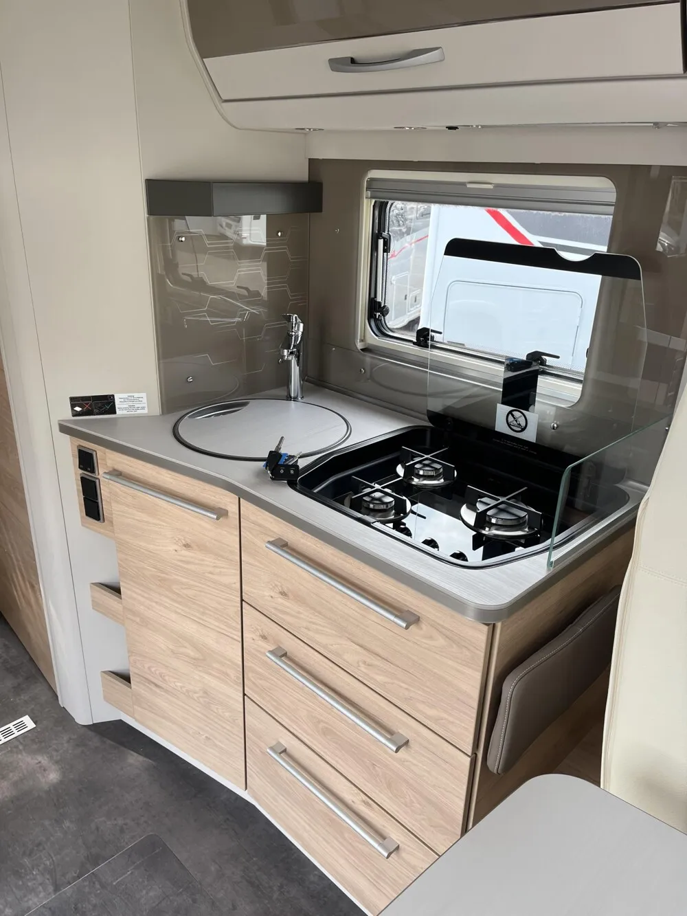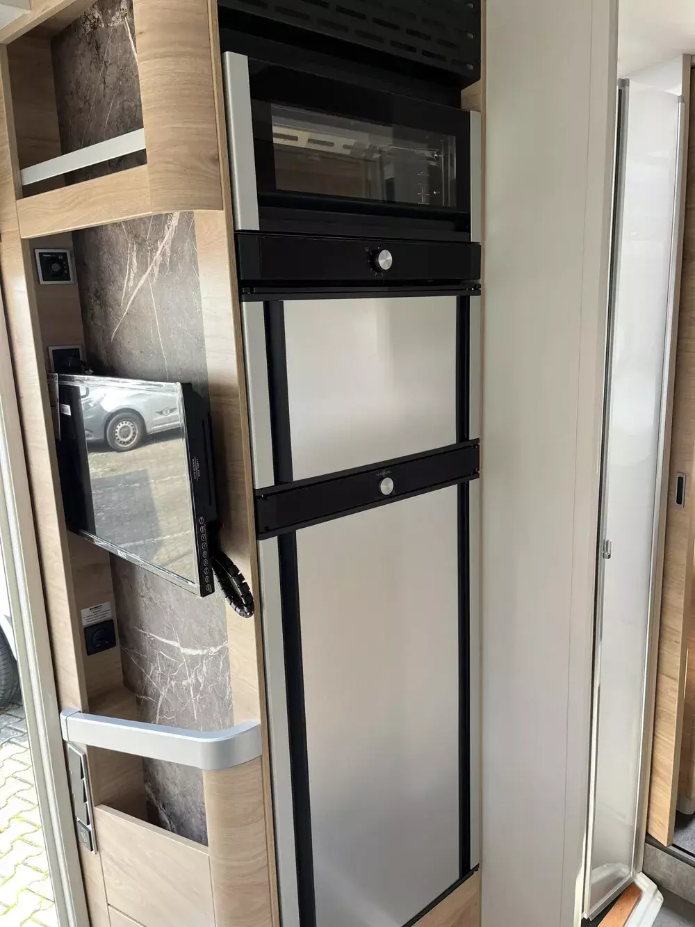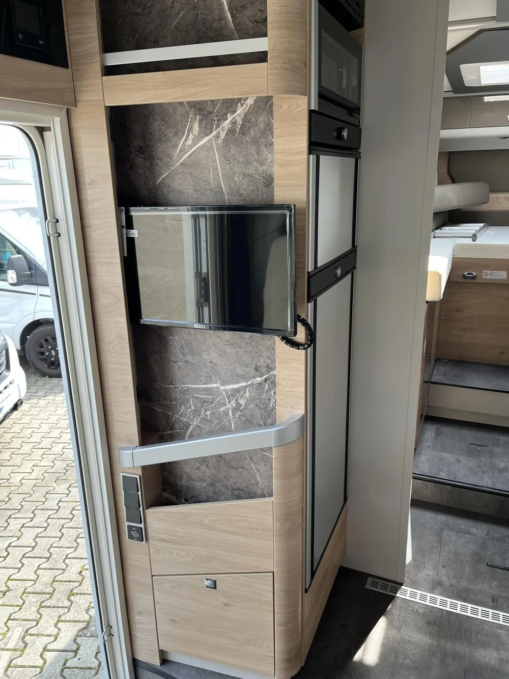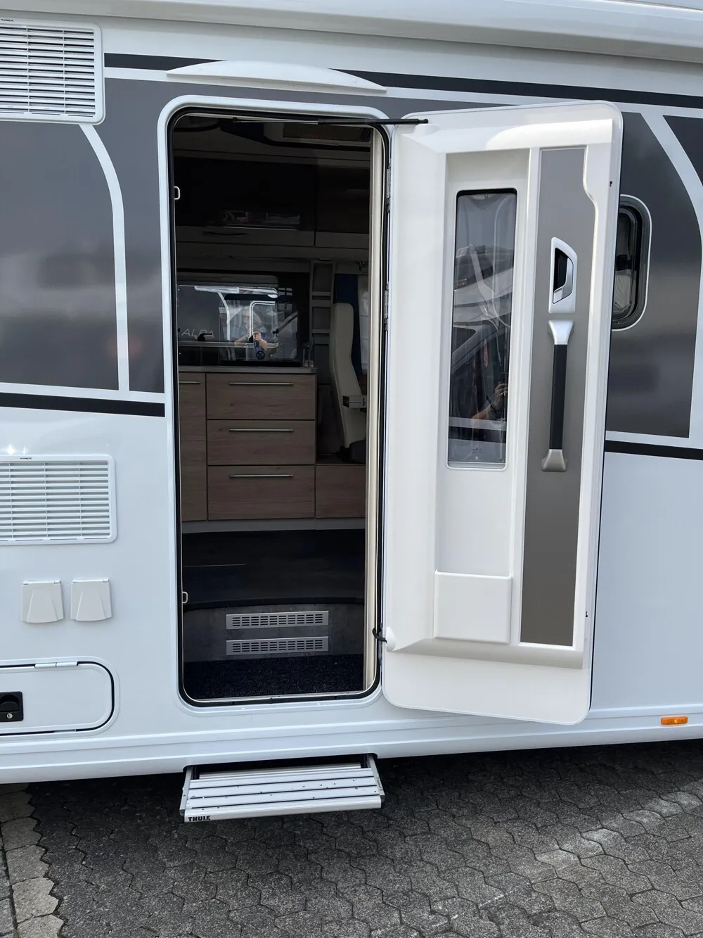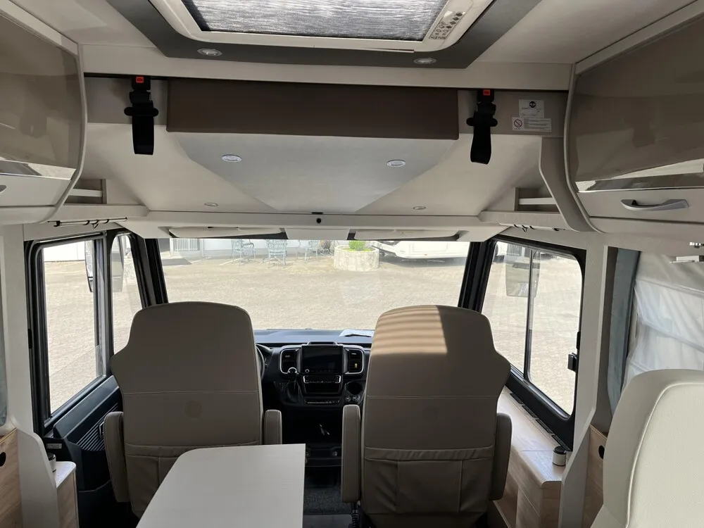 - Travel-Paket (Vorbereitung für Radiosystem inkl. Soundpaket im Fahrerhaus, Radioantenne DAB+ auf dem Dach montiert, Panorama-Dachhaube 75x105 cm im Wohnraum, Light Moments: Indirekte Ambientebeleuchtung über den Dachstauschränken, Stützen (2 Stk.) für Anbau hinten, Elektrischer Frontscheiben-Rollo, Automatische Gasflaschenumschaltung inkl. Crash Sensor, EisEx und Gasfilter, Dunstabzugshaube (Abluft) mit Zugluft-Stopper, Integrierte Einlinsen Rückfahrkamera, Zentralverriegelung für Fahrerhaus-, Wohnraumtüre und Garagentüren)
