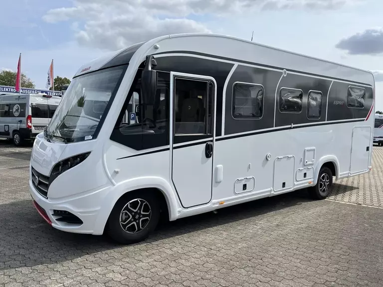 - Esprit GT (LED-Abblendlicht, Sonnenblenden seitlich, als Rollo für Fahrer und Beifahrer, Panorama-Dachhaube 70 x 50 cm im Schlafraum, Innendesign GT inkl. erweiterter Küchenrückwand, Außendesign GT Advance (Heckleuchtenträger mit schwarzem Diffusor, lackierung I-Front teilweise schwarz, Kühlergrill mit Chromkeder, Skidplate "rot"), Hoher charakteristischer Dethleffs Exklusiv Heckleuchtenträger mit ShapeLine LED Rückleuchten, in Heckspoiler integrierter 3. Bremsleuchte und eingezogener Heckwand)