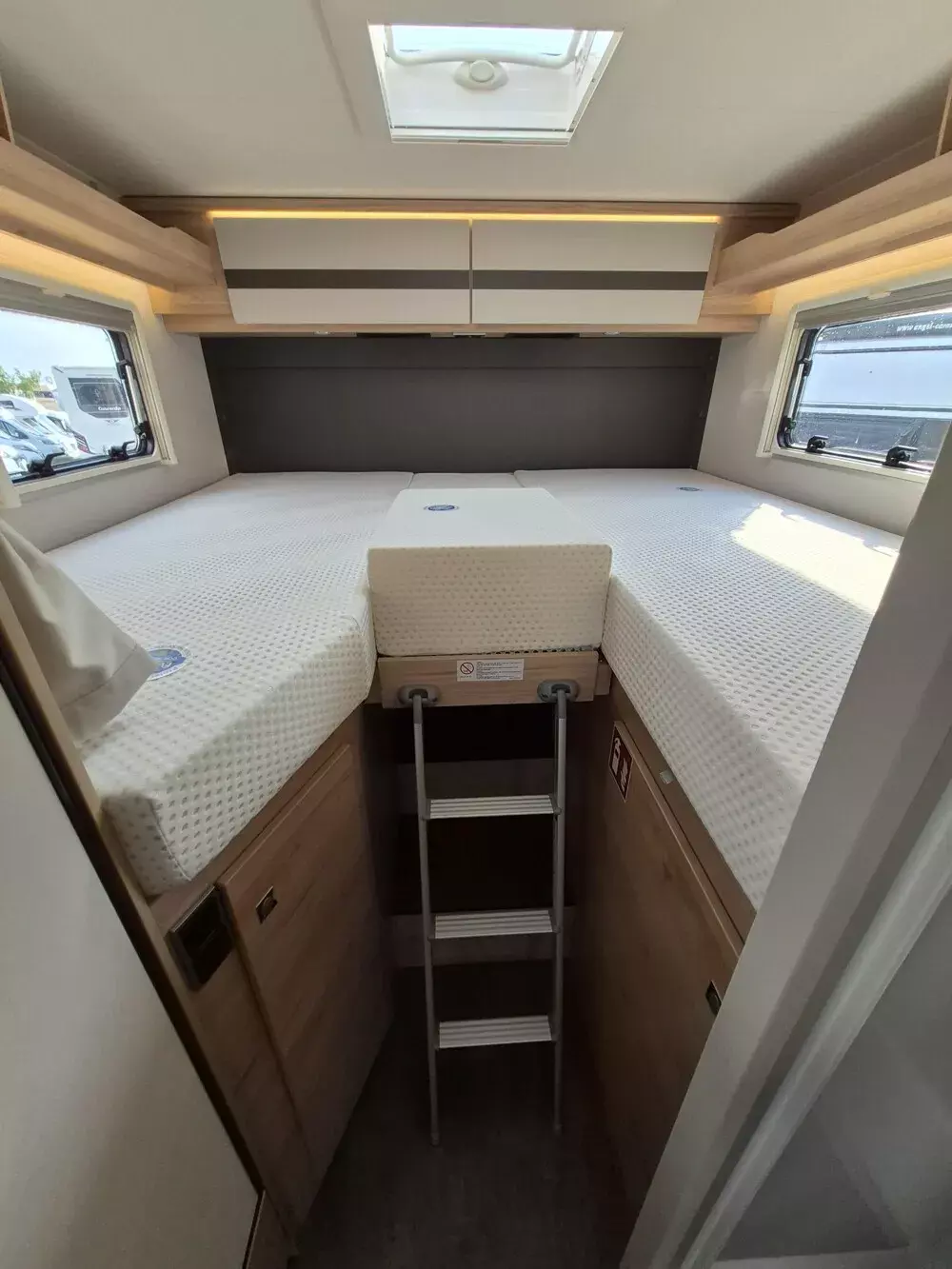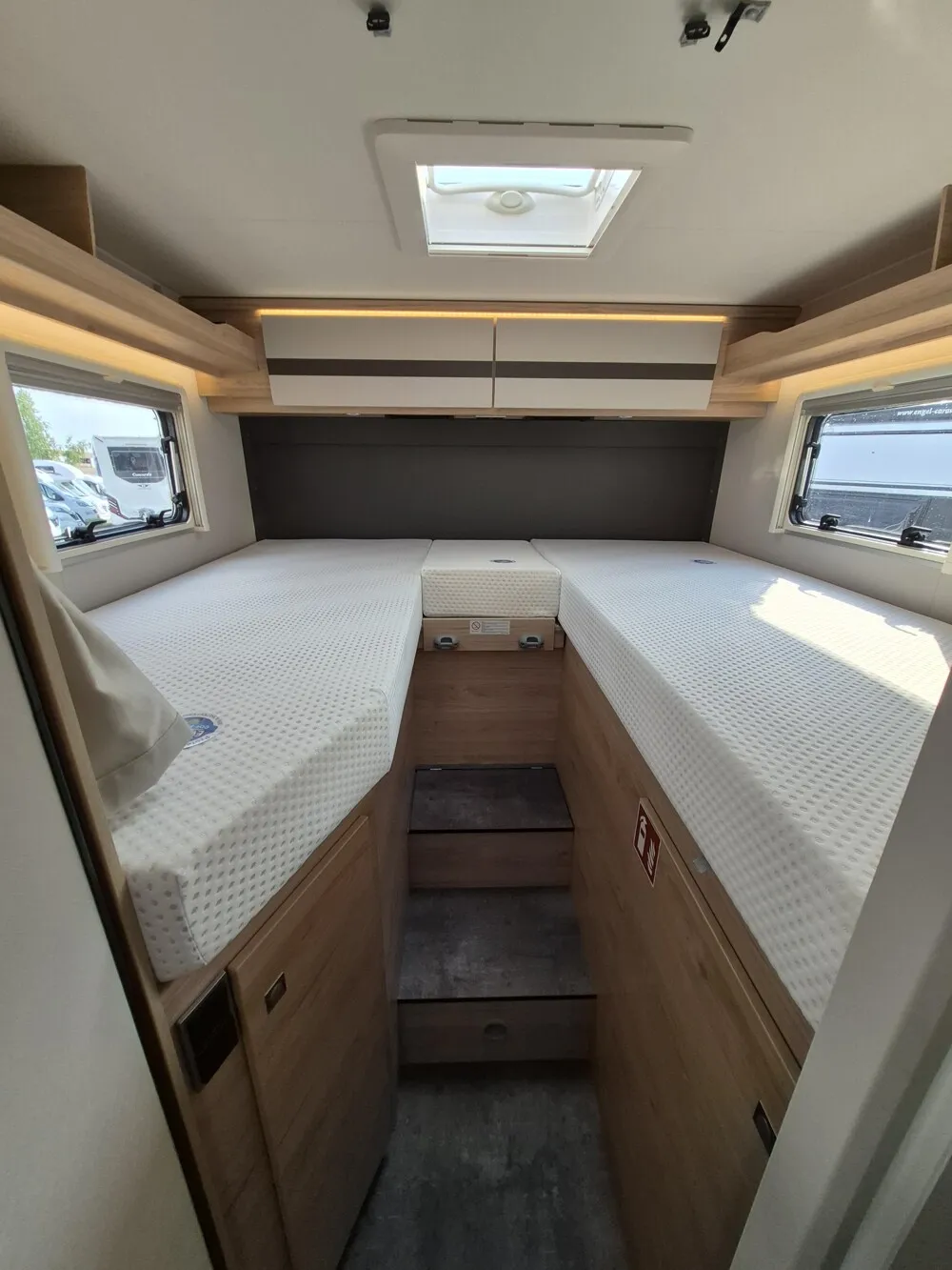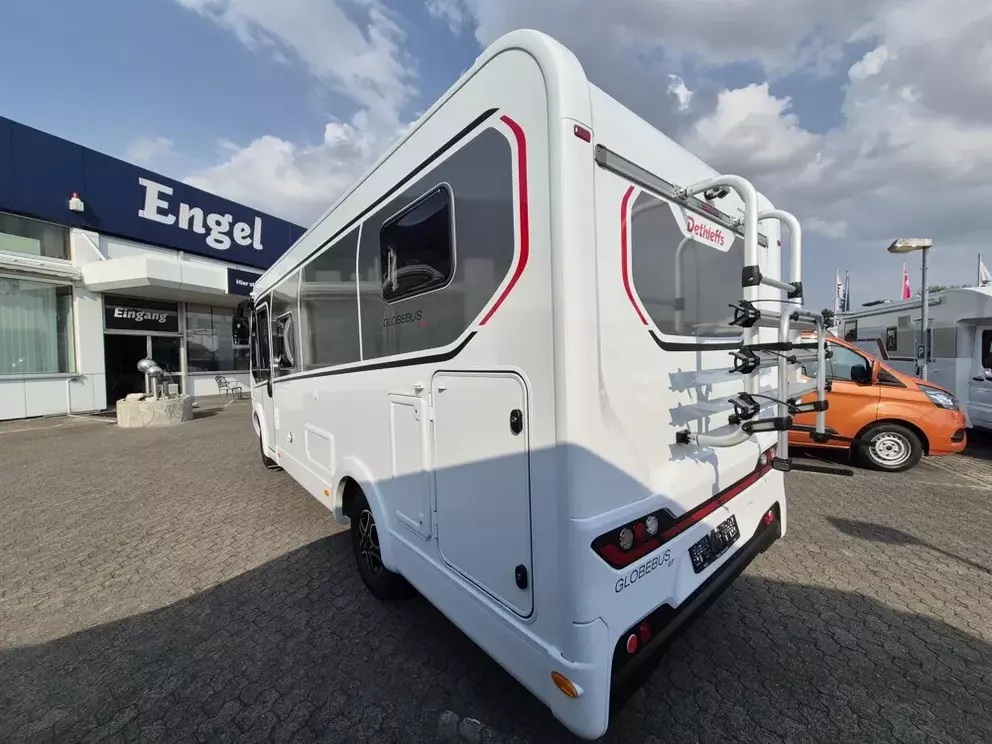 - Active-Paket I 4 (Wohnraumtür mit Fenster inkl. Verdunkelung und Zentralverriegelung (inkl. Fahrerhaustür), Panorama-Dachhaube 75x105 cm im Wohnraum, Light Moments: Indirekte Ambientebeleuchtung über den Dachstauschränken, Light Moments: Indirekte Wandflächen-Ambientebeleuchtung, Bord-Control-Panel Luxus, Vorbereitung für Radiosystem inkl. Soundpaket im Fahrerhaus, Radioantenne DAB+ auf dem Dach montiert, Active Außendesign (Lackierung I-Front teilweise schwarz, erweiterte Beklebung GT, Skidplate "rot"), Hoher charakteristischer Dethleffs Exklusiv Heckleuchtenträger mit 3. Bremsleuchte, Doppelverglaste Rahmenfenster mit Verdunklung & Mückenschutz, Küchenrückwand "Grau Metallic", Steckdosen und Schalter in Bicolor, Duschrost, Rückfahrkamera (Einfachkamera), Dethleffs Naviceiver inkl. DAB+, Truck Navigation, Wireless Apple CarPlay und Android Auto, Abwassertank isoliert, Digitales Bedienelement für Warmluftheizung, Vorbereitung Solar, Vorbereitung Dach-Klimaanlage, Vorbereitung zweite Rückfahrkamera, Vorbereitung SAT-Anlage, Wohnwelt Jupiter, Light Moments: Fensterverkleidung im Wohnraum beleuchtet, Bettumbau Einzelbetten zu Doppelbett, Cassettenmarkise Omnistor 4,5 m (manuell))