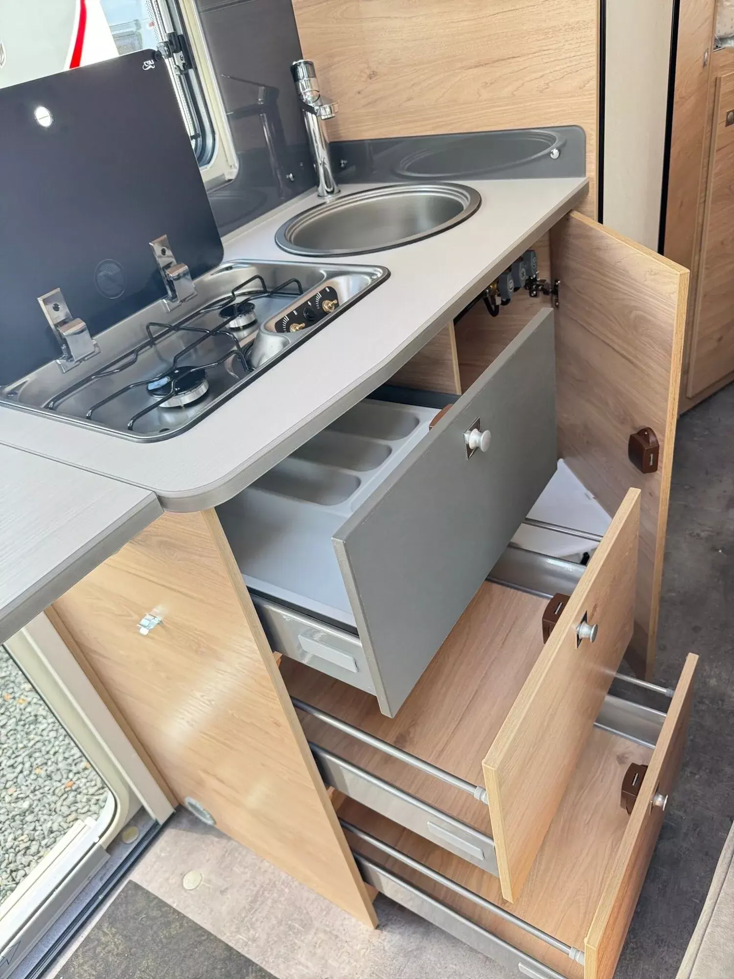- Active-Paket I 6 (Wohnraumtür mit Fenster inkl. Verdunkelung und Zentralverriegelung (inkl. Fahrerhaustür), Bettumbau Einzelbetten zu Doppelbett, Light Moments: Indirekte Ambientebeleuchtung über den Dachstauschränken, Light Moments: Indirekte Wandflächen-Ambientebeleuchtung, Bord-Control-Panel Luxus, Vorbereitung für Radiosystem inkl. Soundpaket im Fahrerhaus, Radioantenne DAB+ auf dem Dach montiert, Fahrerhaus Klimaanlage automatisch, Digitaler Tacho mit 7"-Kombiinstrument und Wireless Phone Charger in der Mittelkonsole, Elektrische Feststellbremse, Active Außendesign (Lackierung I-Front teilweise schwarz, erweiterte Beklebung GT, Skidplate "rot"), Hoher charakteristischer Dethleffs Exklusiv Heckleuchtenträger mit 3. Bremsleuchte, Doppelverglaste Rahmenfenster mit Verdunklung & Mückenschutz, Küchenrückwand "Grau Metallic", Steckdosen und Schalter in Bicolor, Duschrost, Rückfahrkamera (Einfachkamera), Dethleffs Naviceiver inkl. DAB+, Truck Navigation, Wireless Apple CarPlay und Android Auto, Abwassertank isoliert, Digitales Bedienelement für Warmluftheizung, Vorbereitung Solar, Vorbereitung Dach-Klimaanlage, Vorbereitung zweite Rückfahrkamera, Vorbereitung SAT-Anlage, Wohnwelt Jupiter, Light Moments: Fensterverkleidung im Wohnraum beleuchtet, Panorama-Dachhaube 75x105 cm im Wohnraum, Cassettenmarkise Omnistor 5,0 m (manuell))