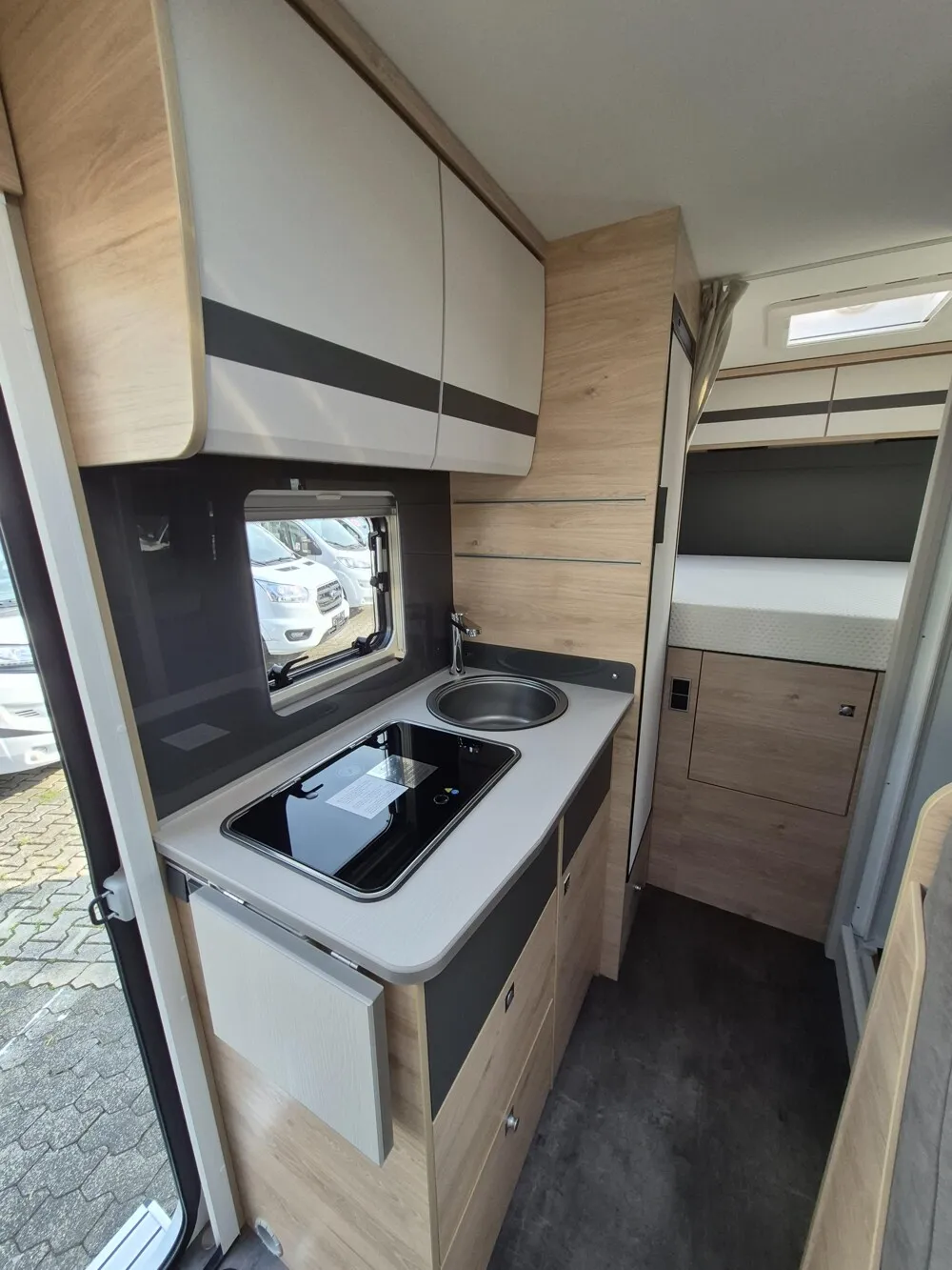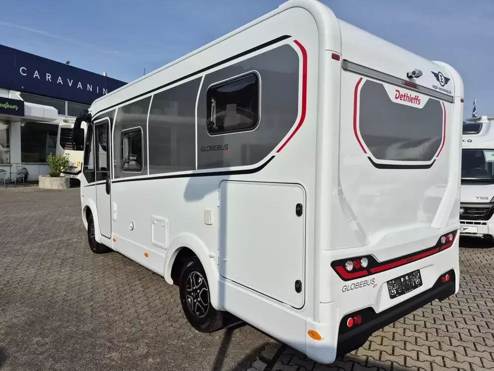 - Active-Paket I 1 (Wohnraumtür mit Fenster inkl. Verdunkelung und Zentralverriegelung (inkl. Fahrerhaustür), Panorama-Dachhaube 75x105 cm im Wohnraum, Light Moments: Indirekte Ambientebeleuchtung über den Dachstauschränken, Light Moments: Indirekte Wandflächen-Ambientebeleuchtung, Bord-Control-Panel Luxus, Vorbereitung für Radiosystem inkl. Soundpaket im Fahrerhaus, Radioantenne DAB+ auf dem Dach montiert, Active Außendesign (Lackierung I-Front teilweise schwarz, erweiterte Beklebung GT, Skidplate "rot"), Hoher charakteristischer Dethleffs Exklusiv Heckleuchtenträger mit 3. Bremsleuchte, Doppelverglaste Rahmenfenster mit Verdunklung & Mückenschutz, Küchenrückwand "Grau Metallic", Steckdosen und Schalter in Bicolor, Duschrost, Rückfahrkamera (Einfachkamera), Dethleffs Naviceiver inkl. DAB+, Truck Navigation, Wireless Apple CarPlay und Android Auto, Abwassertank isoliert, Digitales Bedienelement für Warmluftheizung, Vorbereitung Solar, Vorbereitung Dach-Klimaanlage, Vorbereitung zweite Rückfahrkamera, Vorbereitung SAT-Anlage, Wohnwelt Jupiter, Light Moments: Fensterverkleidung im Wohnraum beleuchtet, Kühlschrank (137 l) anstelle Kleiderhochschrank, Cassettenmarkise Omnistor 4.0 m (manuell))