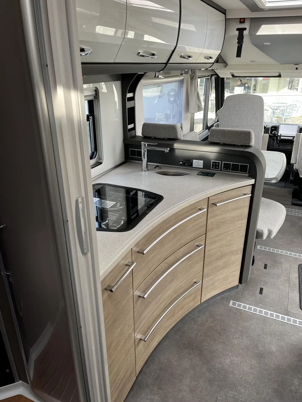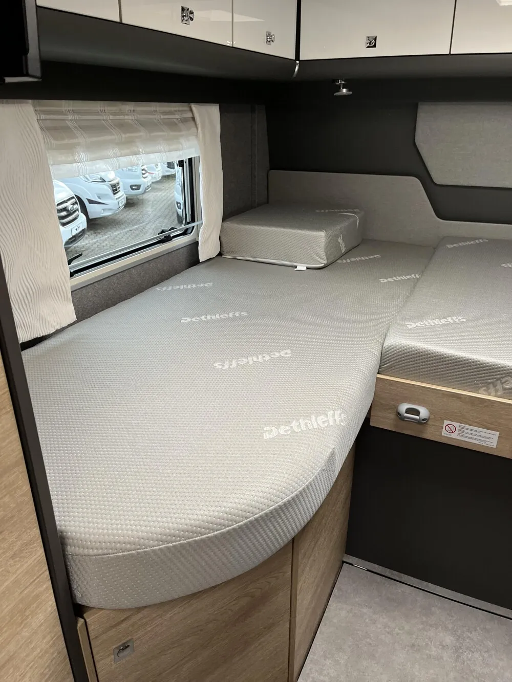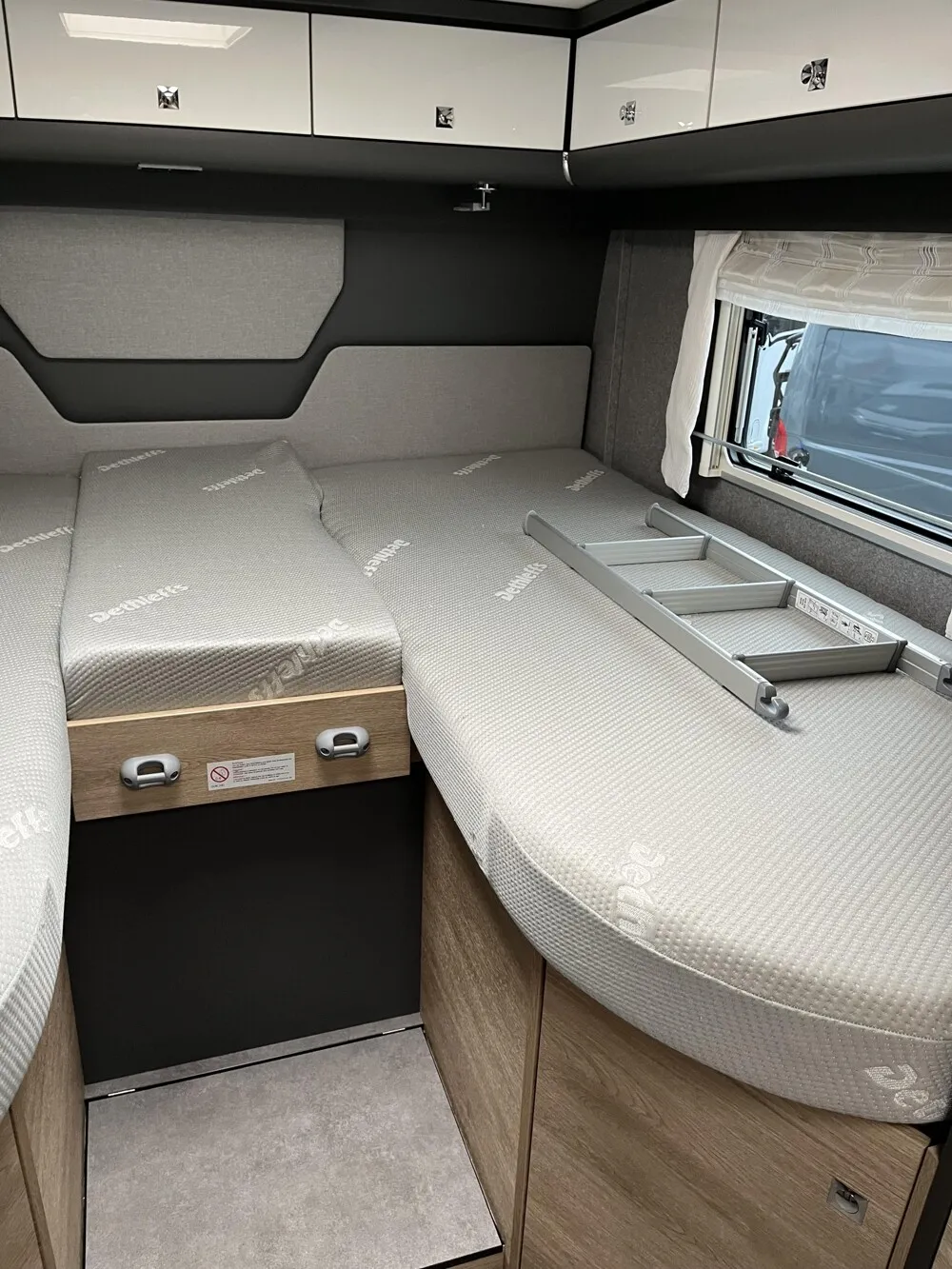 - GT-Paket Advance (Vorbereitung für Radiosystem inkl. Soundpaket im Fahrerhaus, Radioantenne DAB+ auf dem Dach montiert, Fahrerhaustüre links, Panorama-Dachhaube 75x105 cm im Wohnraum, Light Moments: Indirekte Ambientebeleuchtung über den Dachstauschränken, Stützen (2 Stk.) für Anbau hinten, Elektrischer Frontscheiben-Rollo, Automatische Gasflaschenumschaltung inkl. Crash Sensor, EisEx und Gasfilter, Dunstabzugshaube (Abluft) mit Zugluft-Stopper, Integrierte Einlinsen Rückfahrkamera, LED-Abblendlicht, Auflastung auf 5.400 kg, Sonnenblenden seitlich, als Rollo für Fahrer und Beifahrer, Panorama-Dachhaube 70 x 50 cm im Schlafraum, Innendesign GT inkl. erweiterter Küchenrückwand, Zweite Rückfahrkamera im Heckleuchtenträger, Alufelgen Dethleffs 16 Zoll (für 3-Achser))