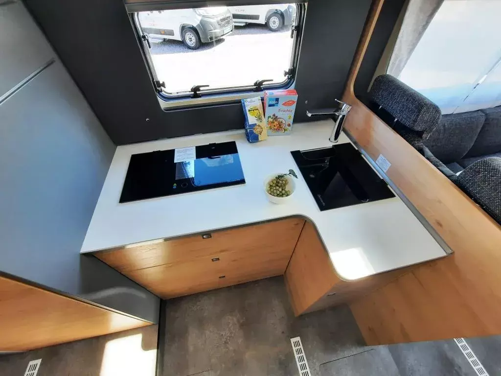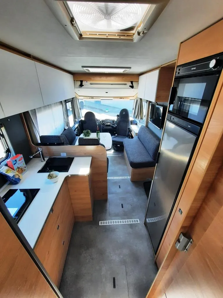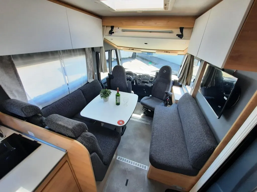 Fiat Ducato 180 PS + Automatikgetriebe, Alufelgen Dethleffs 16 Zoll, Fahrer- und Beifahrersitz drehbar, Lenkrad mit Bedienelementen, Lederlenkrad und Schaltknauf mit Ledermanschette, Seitenwindassistent, Tempomat, LED-Tagfahrlicht, ESP inkl. ASR, Traction Plus, Hill Holder und Hill Descent Control, 70 cm breite Wohnraumtür, Dachlüfter mit Ventilator, Doppelboden teilweise über die gesamte Fahrzeugbreite durchgängig beladbar, Fliegengitter-Aufbautür, GFK Dach, Wohnraumtür mit Fenster inkl. Verdunkelung und Zentralverriegelung (inkl. Fahrerhaustür) Isofix Kindersitzbefestigung für 3. und 4. Sitzplatz in Fahrtrichtung, manuelles Hubbett im Fahrerhaus, Gourmet-Küche: 2-Flamm-Kocher, großzügige Schubladen, Besteckeinsatz, Abfalleimer und großzügige Arbeitsfläche, Kühlschrank (137 l) mit integriertem Backofen, Dethleffs Naviceiver inkl. DAB+, Truck Navigation, Wireless Apple CarPlay und Android Auto, Integrierte Einlinsen Rückfahrkamera, Zweite Rückfahrkamera im Heckleuchtenträger, Warmwasser-Teppich für das Fahrerhaus, Warmwasserheizung mit Warmwasserboiler, automatischem Ablassventil, Absperrventil für den Schlafraum und digitalem Bedienelement, Wärmetauscher für Warmwasserheizung, Aufbaubatterie AGM, 95 Ah u.v.m.*