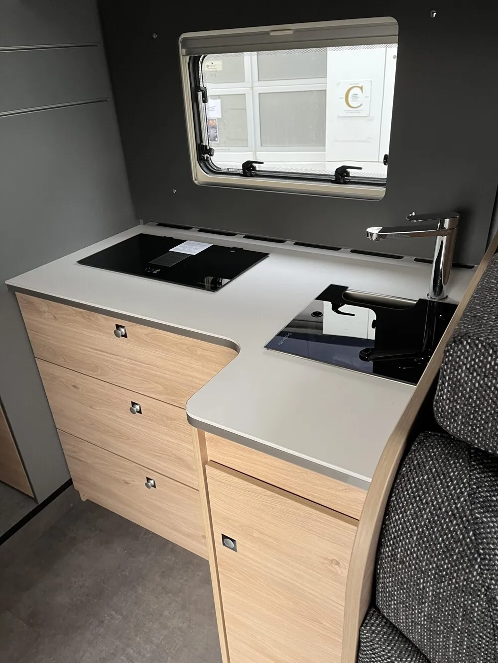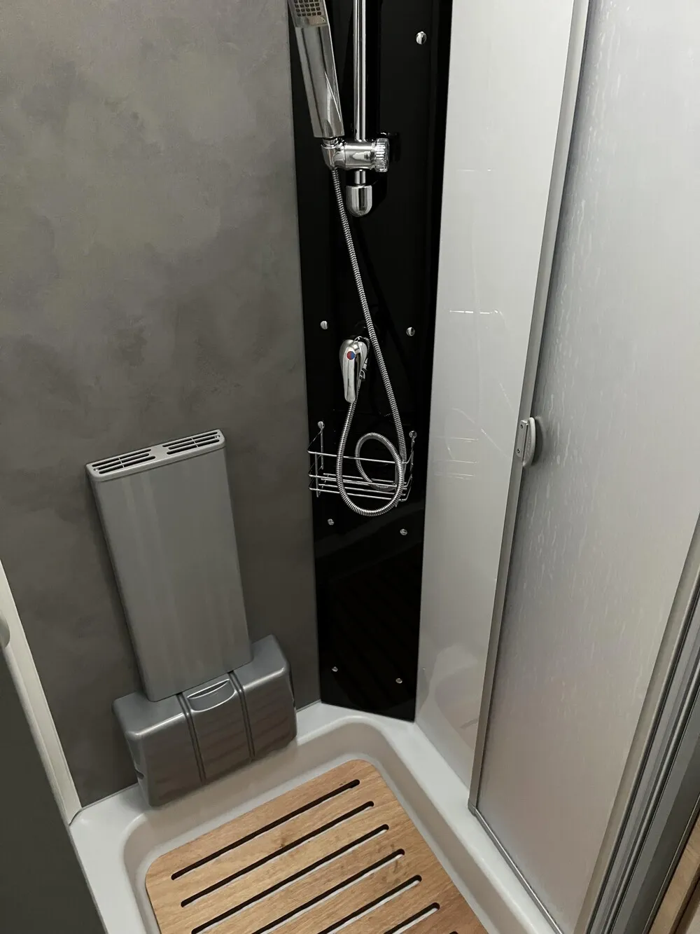- Warmwasserheizung mit Warmwasserboiler, automatischem Ablassventil, Absperrventil für den Schlafraum und digitalem Bedienelement