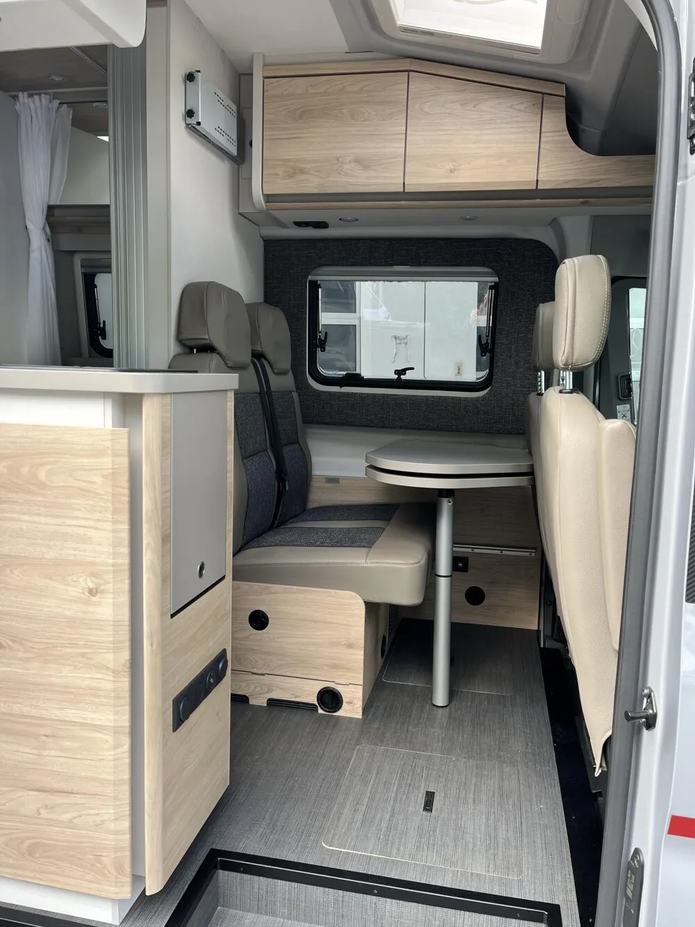 - manuelle Klimaanlage vorn inkl. Staub- und Pollenfilter, Handschuhfach mit Deckel, zusätzlich abschließbar Trend Innenraum Paket, Stoßfänger vorn in Wagenfarbe lackiert, Scheinwerfer mit statischem Abbiegelicht, Außenspiegel, elektrisch einstellbar und beheizbar, Leichtmetallräder 16" schwarz Fenster im Heck links 815x315, Rahmenfenster, Markise 3,1m, Vorbereitung Rückfahrkamera, Indirekte Beleuchtung, ausdrehbare Tischplattenerweiterung, doppel-USB Steckdose, TV-Vorbereitung 12V, SAT-Anschluss, TV-Halter, Solar Vorbereitung, Fenster im Badezimmer