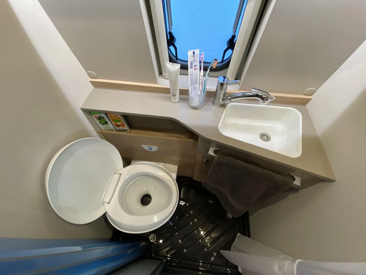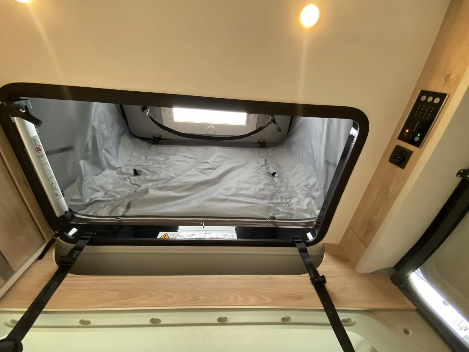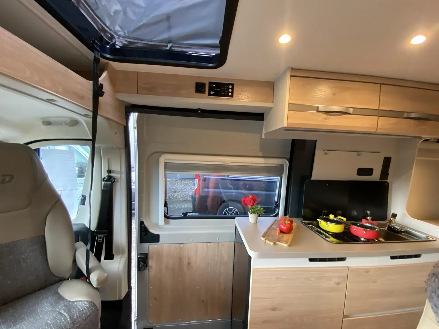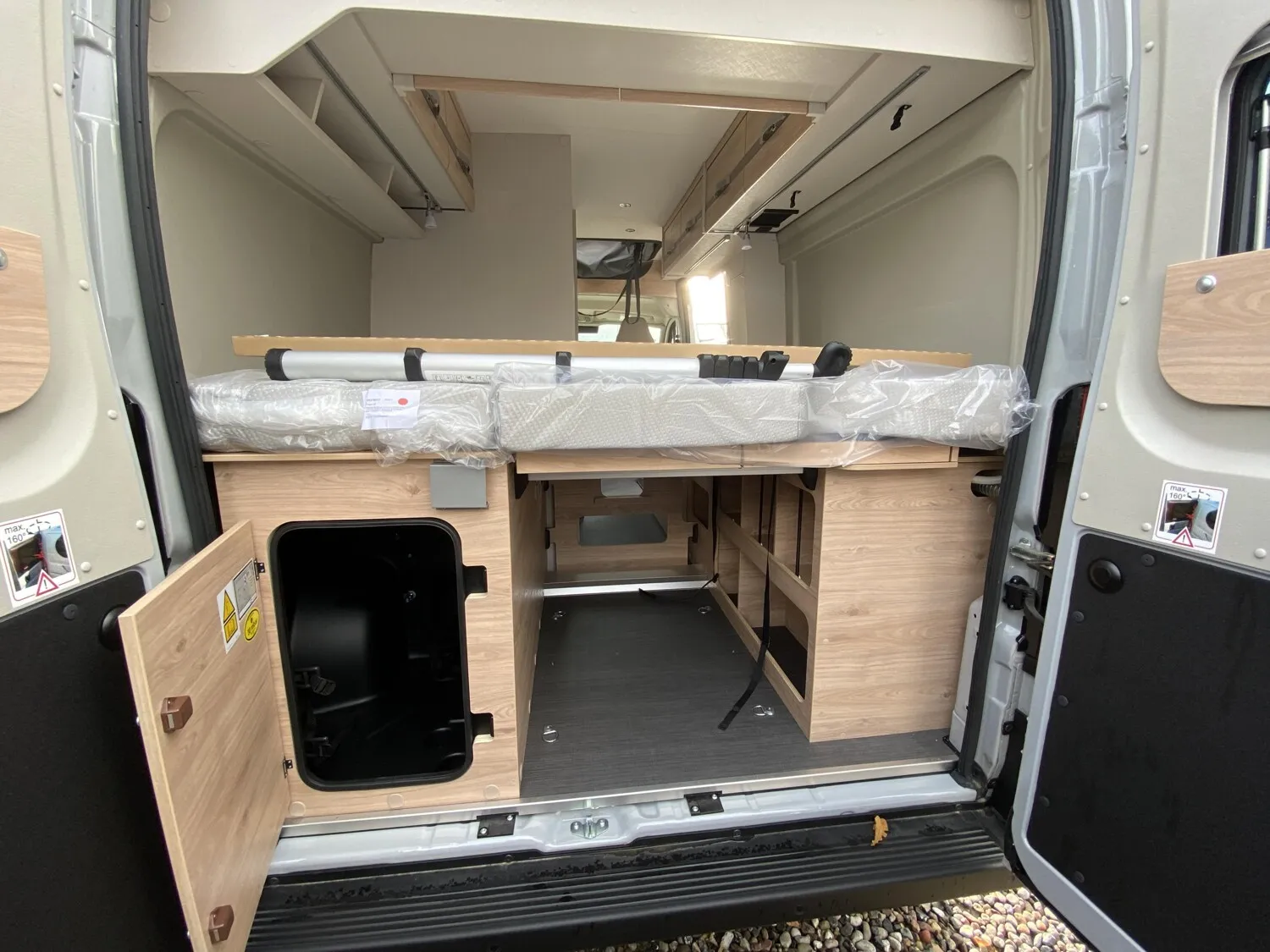 - Aufstelldach schwarz, vorne komplett zu öffnen inkl. elektrischem Schließassistenten, Fliegengitter, Schwanenhalsleuchte und USB-Steckdose, mit hochwertiger Matratze