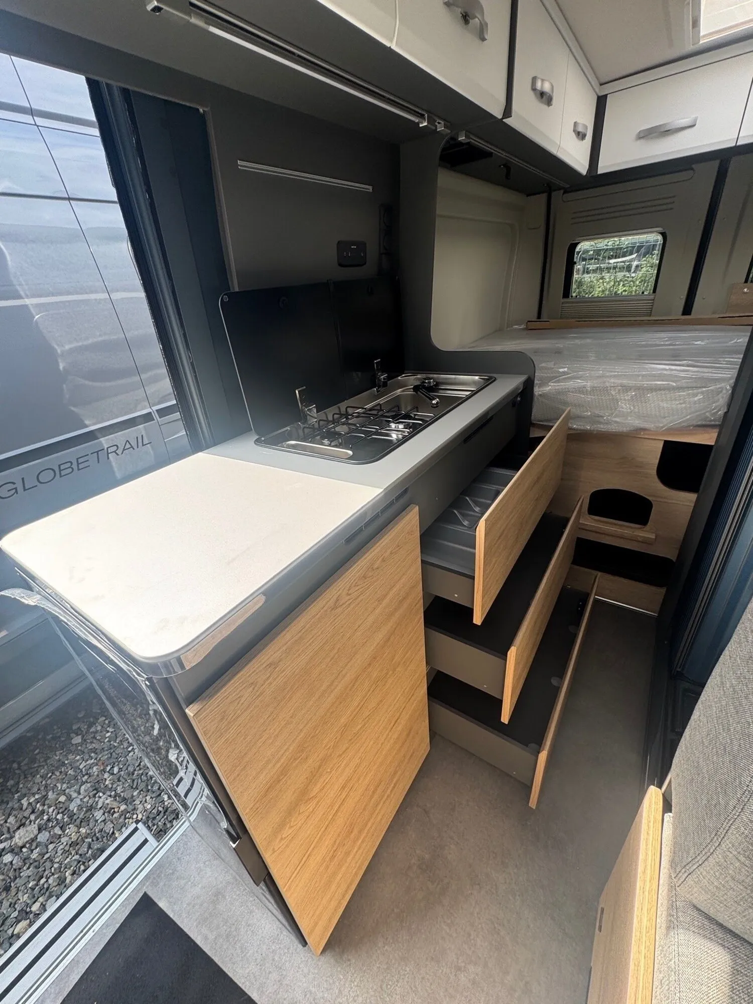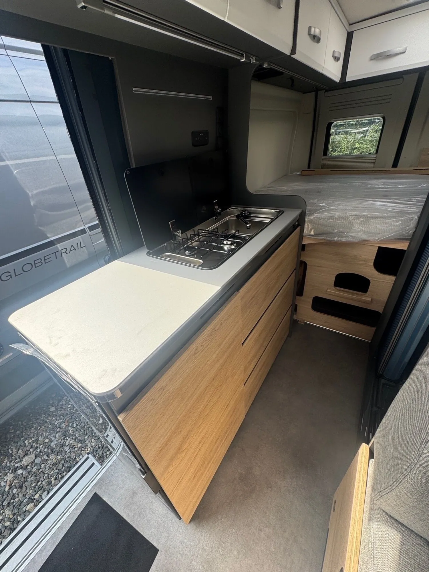 - Elektro Paket (Zusätzliche Doppel-USB-Steckdose im Bug links, 12-V-Steckdose im Heckbereich links unten, 230-V-Steckdose im Oberschrank Bug links (Sitzgruppe), Indirekte Beleuchtung, LED-Lichtröhre in der Küche, Vorbereitung Solarmodule)