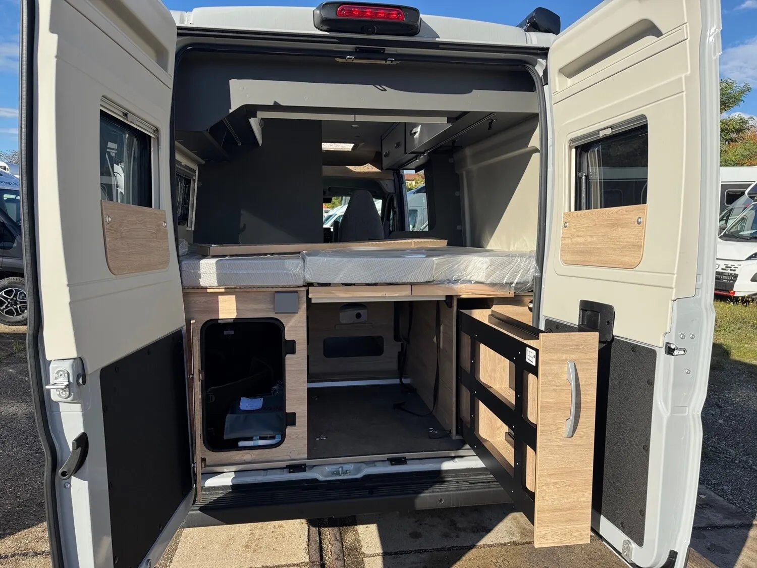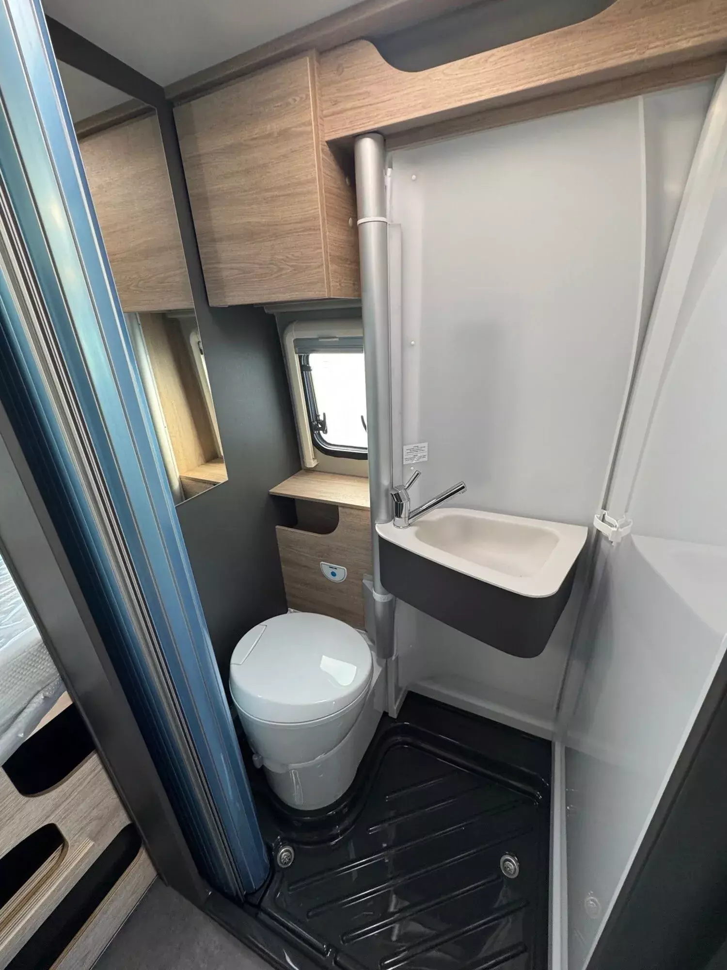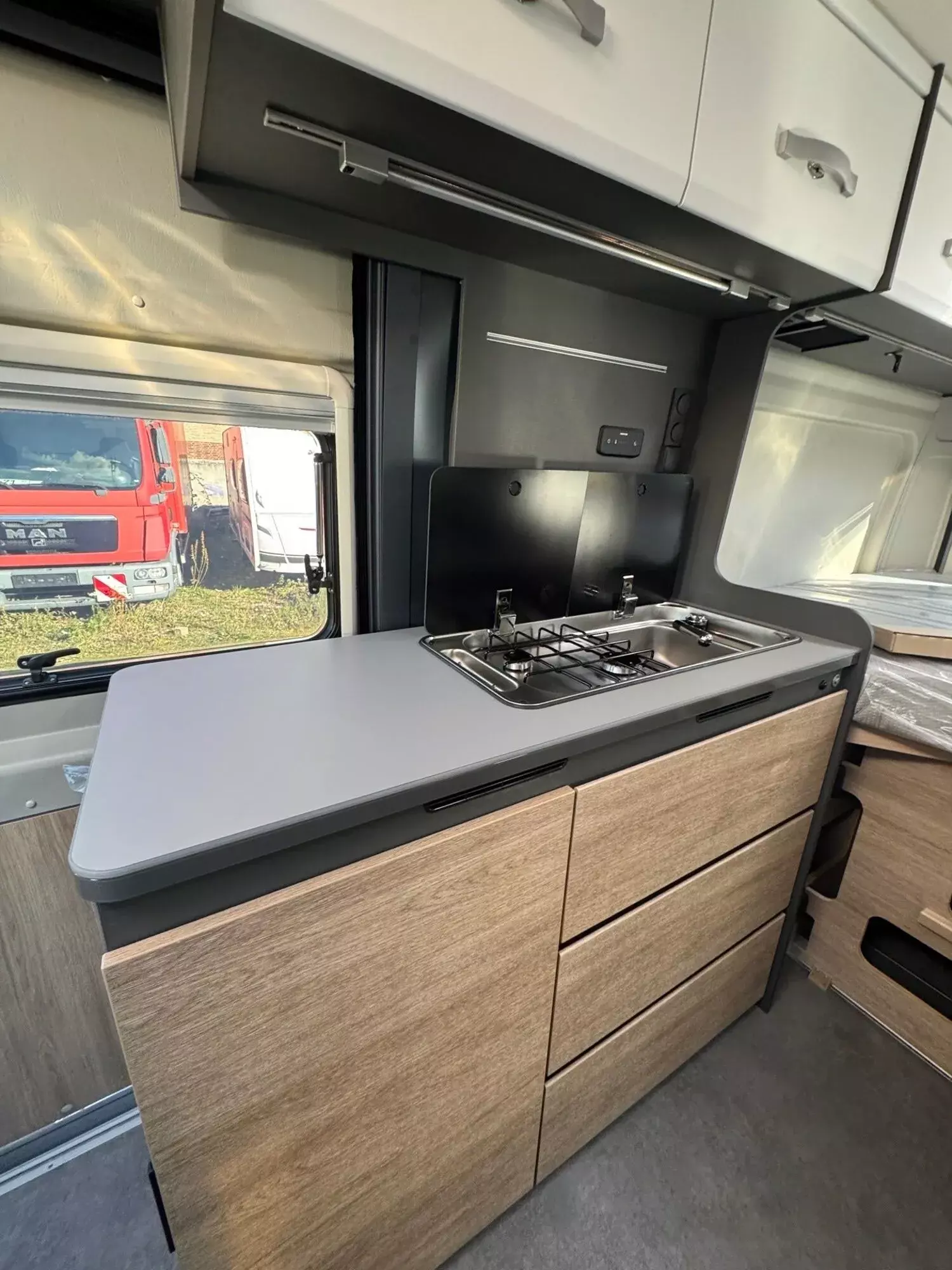 - Elektro Paket (Zusätzliche Doppel-USB-Steckdose im Bug links, 12-V-Steckdose im Heckbereich links unten, 230-V-Steckdose im Oberschrank Bug links (Sitzgruppe), Indirekte Beleuchtung, LED-Lichtröhre in der Küche, Vorbereitung Solarmodule)