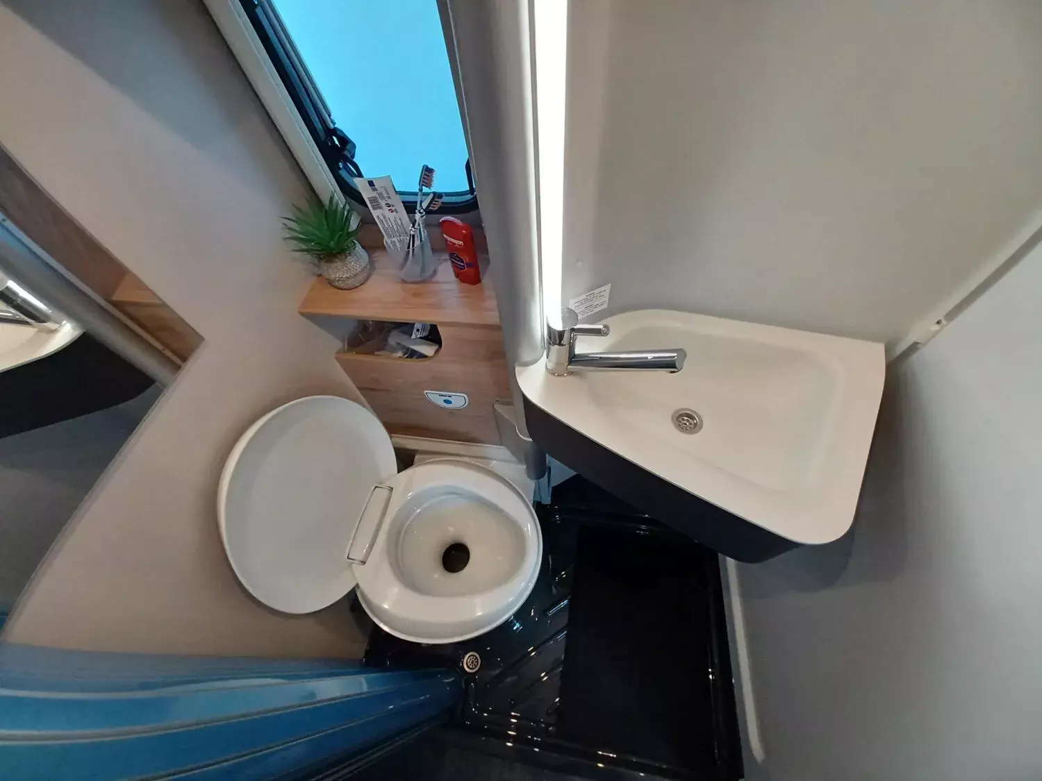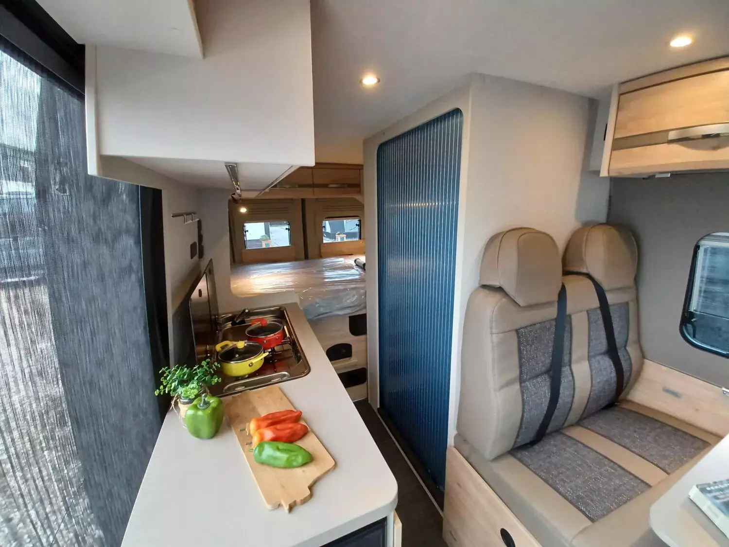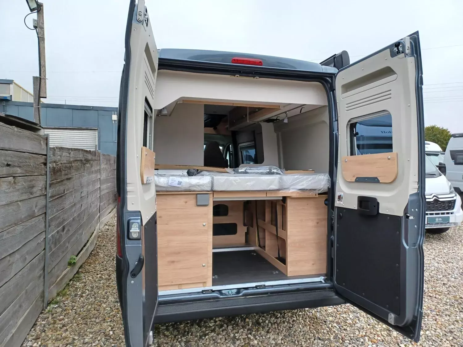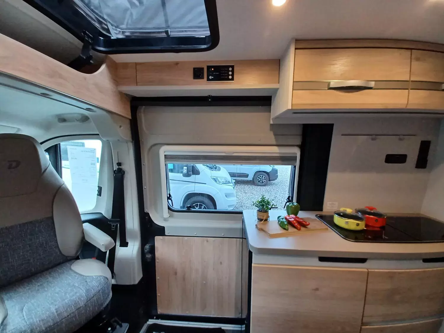 - Aufstelldach schwarz, vorne komplett zu öffnen inkl. elektrischem Schließassistenten, Fliegengitter, Schwanenhalsleuchte und USB-Steckdose, mit hochwertiger Matratze