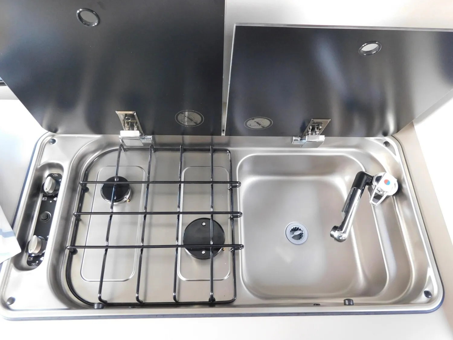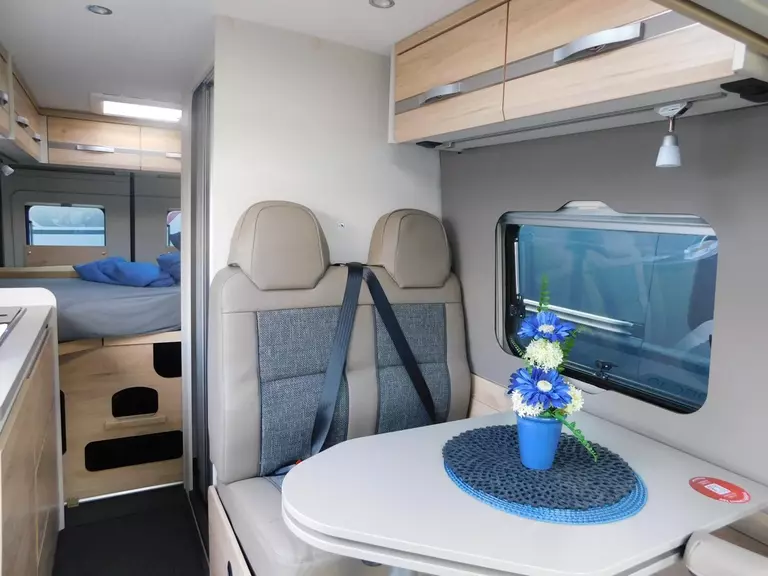 - Elektro Paket (Zusätzliche Doppel-USB-Steckdose im Bug links, 12-V-Steckdose im Heckbereich links unten, 230-V-Steckdose im Oberschrank Bug links (Sitzgruppe), Indirekte Beleuchtung, LED-Lichtröhre in der Küche, Vorbereitung Solarmodule)