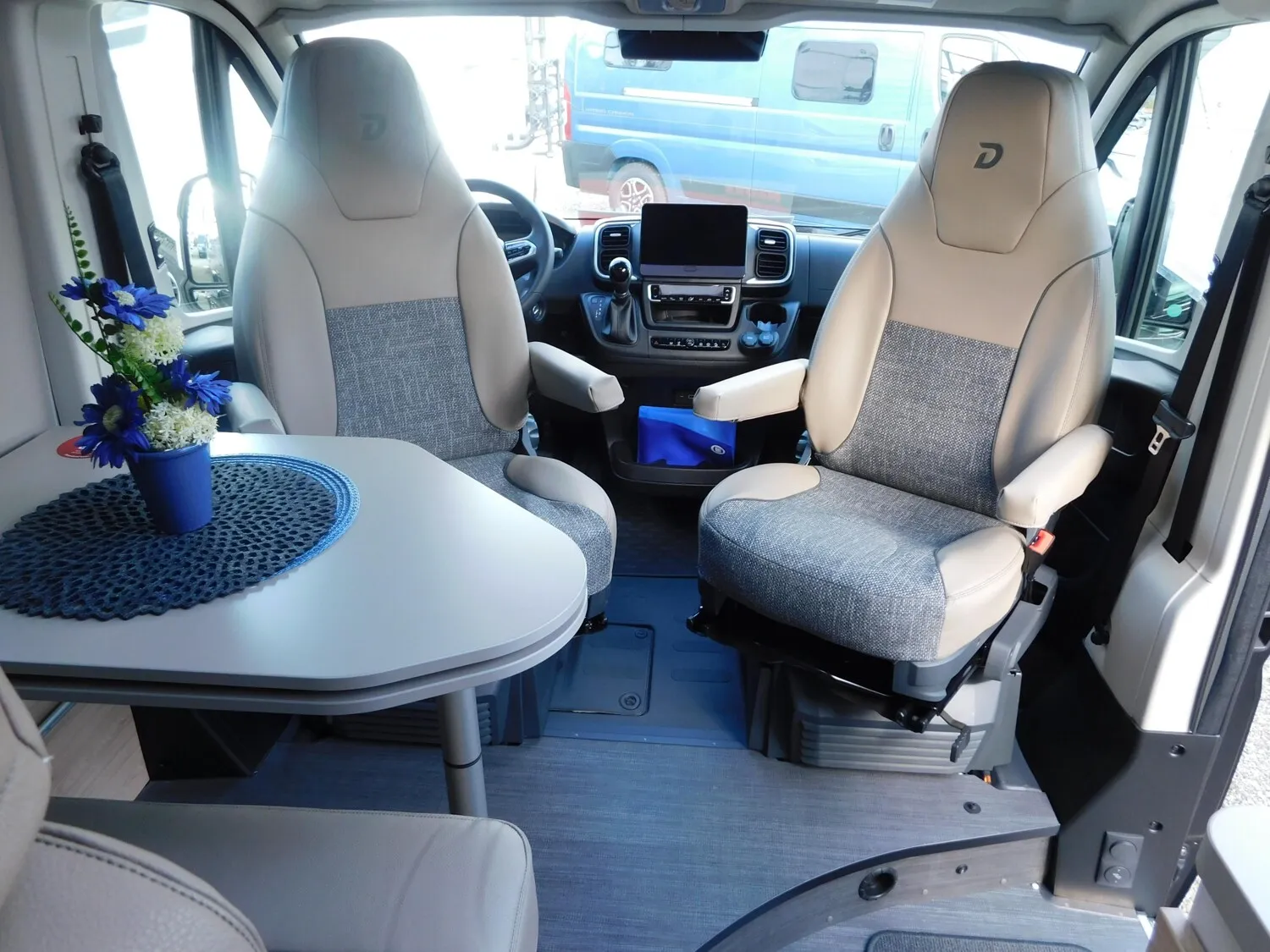 - Komfort Paket (600 DK / DS / DR) (Rahmenfenster, Fenster mit Fliegenschutz und Verdunklungsrollo im Heck links, Markise 3,75 m (600), Innovativer Auszug unter dem Heckbett, Teppich auf Podest (gekettelt, lose verlegt), Vorzeltleuchte, Drehplatte für Tischerweiterung)