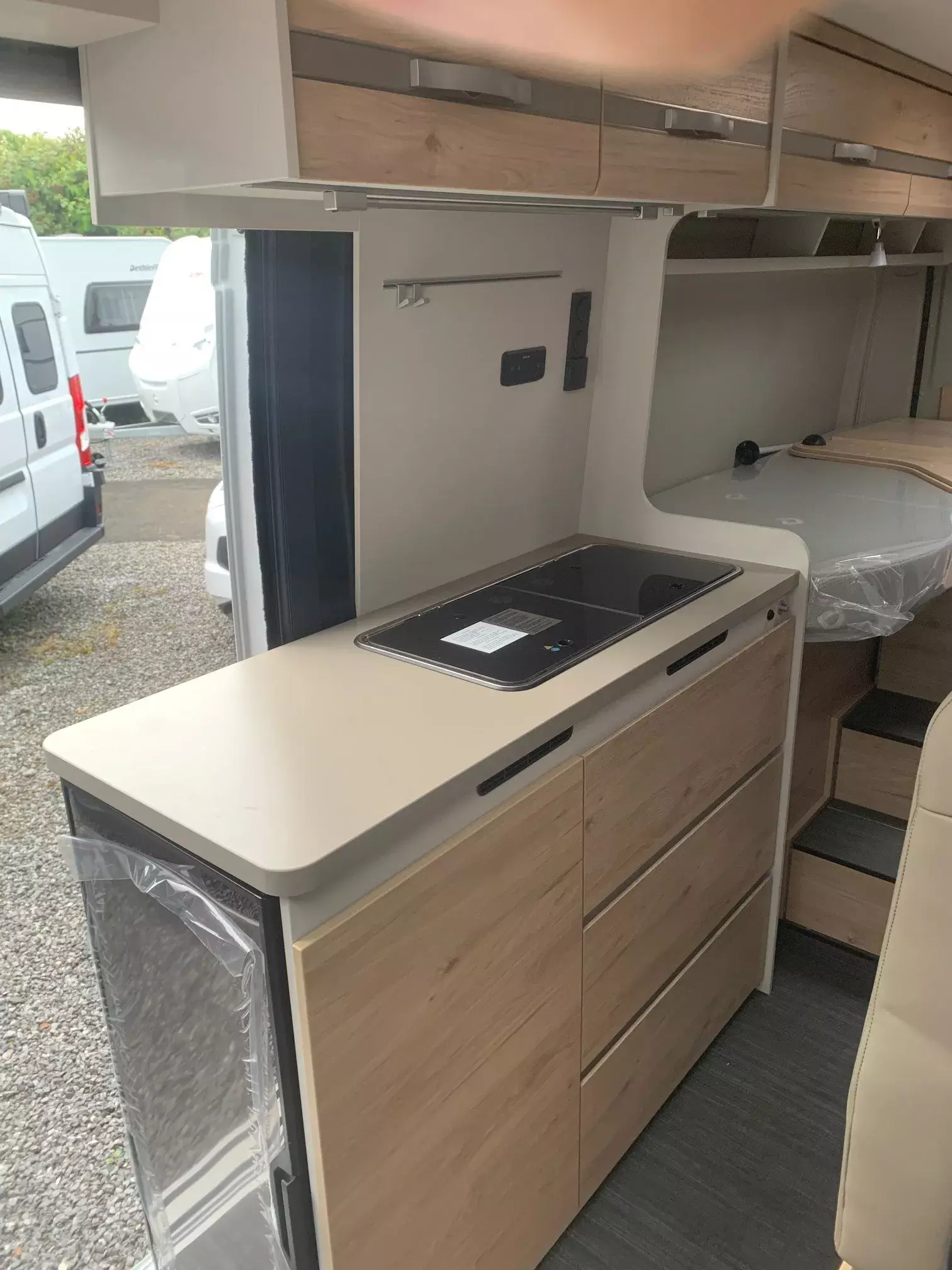 - Elektro Paket (Zusätzliche Doppel-USB-Steckdose im Bug links, 12-V-Steckdose im Heckbereich links unten, 230-V-Steckdose im Oberschrank Bug links (Sitzgruppe), Indirekte Beleuchtung, LED-Lichtröhre in der Küche, Vorbereitung Solarmodule)