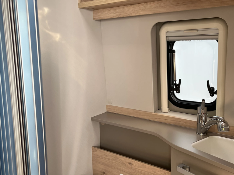 - Elektro Paket (Zusätzliche Doppel-USB-Steckdose im Bug links, 12-V-Steckdose im Heckbereich links unten, 230-V-Steckdose im Oberschrank Bug links (Sitzgruppe), Indirekte Beleuchtung, LED-Lichtröhre in der Küche, Vorbereitung Solarmodule)