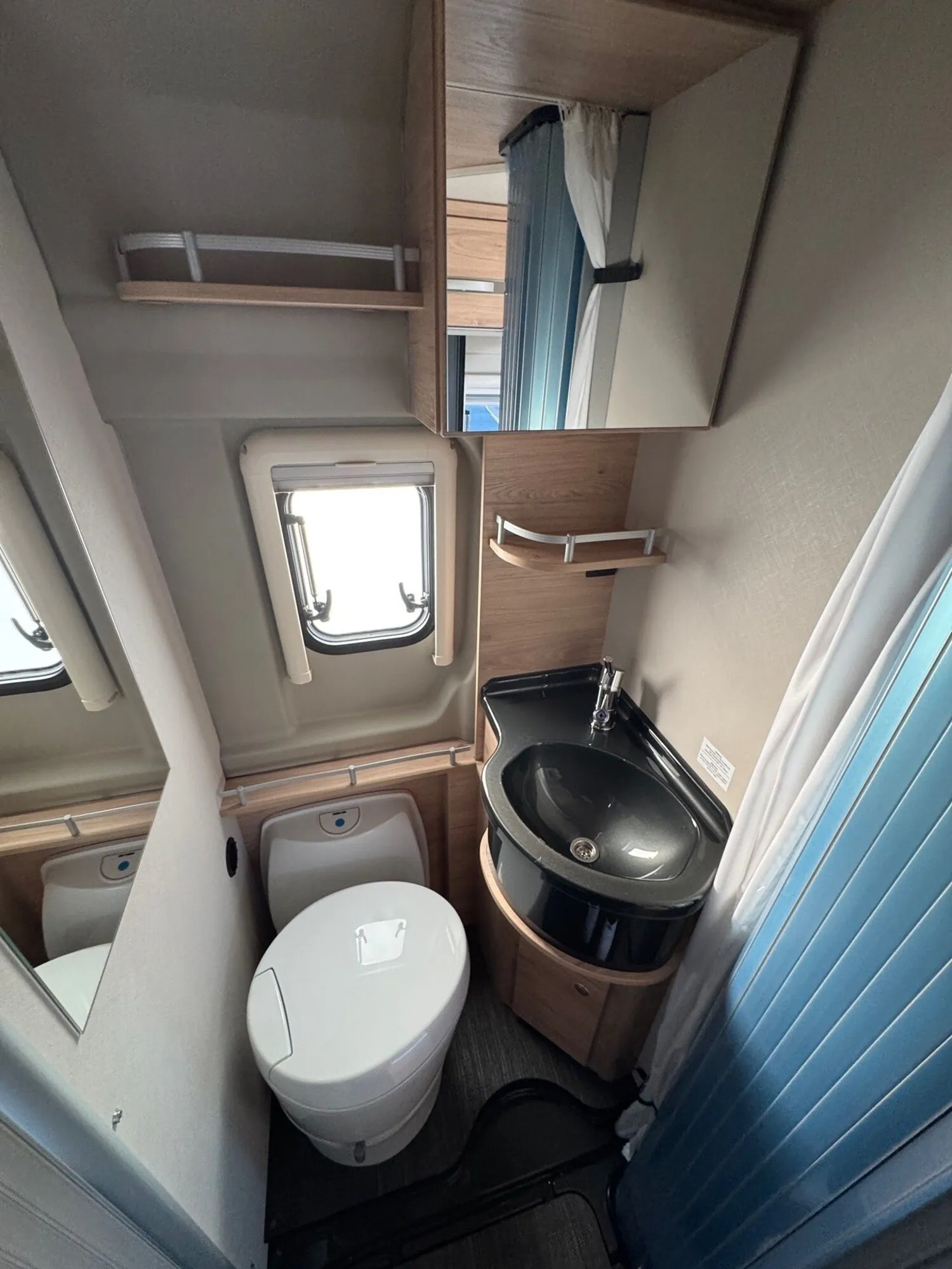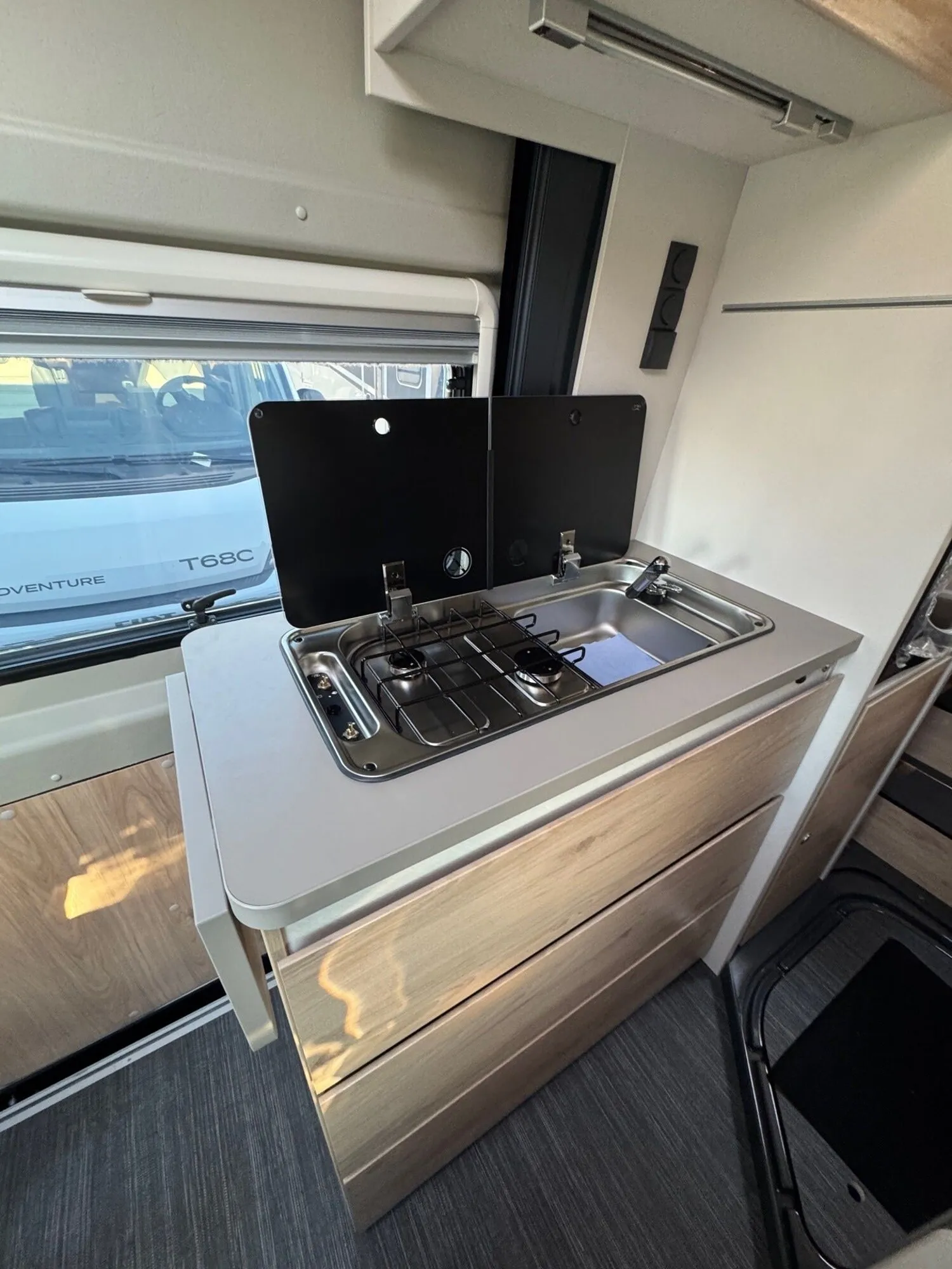 - Elektro Paket (Zusätzliche Doppel-USB-Steckdose im Bug links, 12-V-Steckdose im Heckbereich links unten, 230-V-Steckdose im Oberschrank Bug links (Sitzgruppe), Indirekte Beleuchtung, LED-Lichtröhre in der Küche, Vorbereitung Solarmodule)