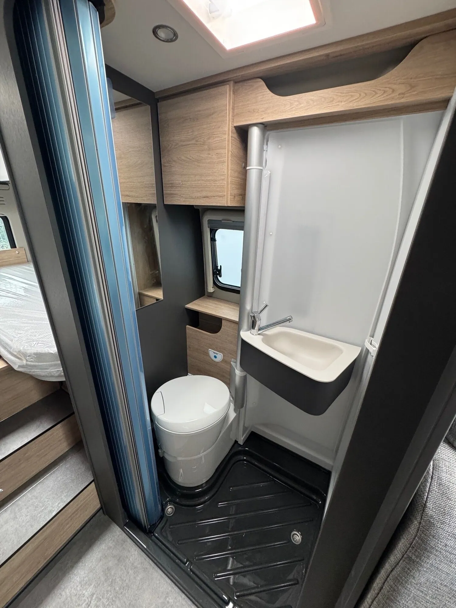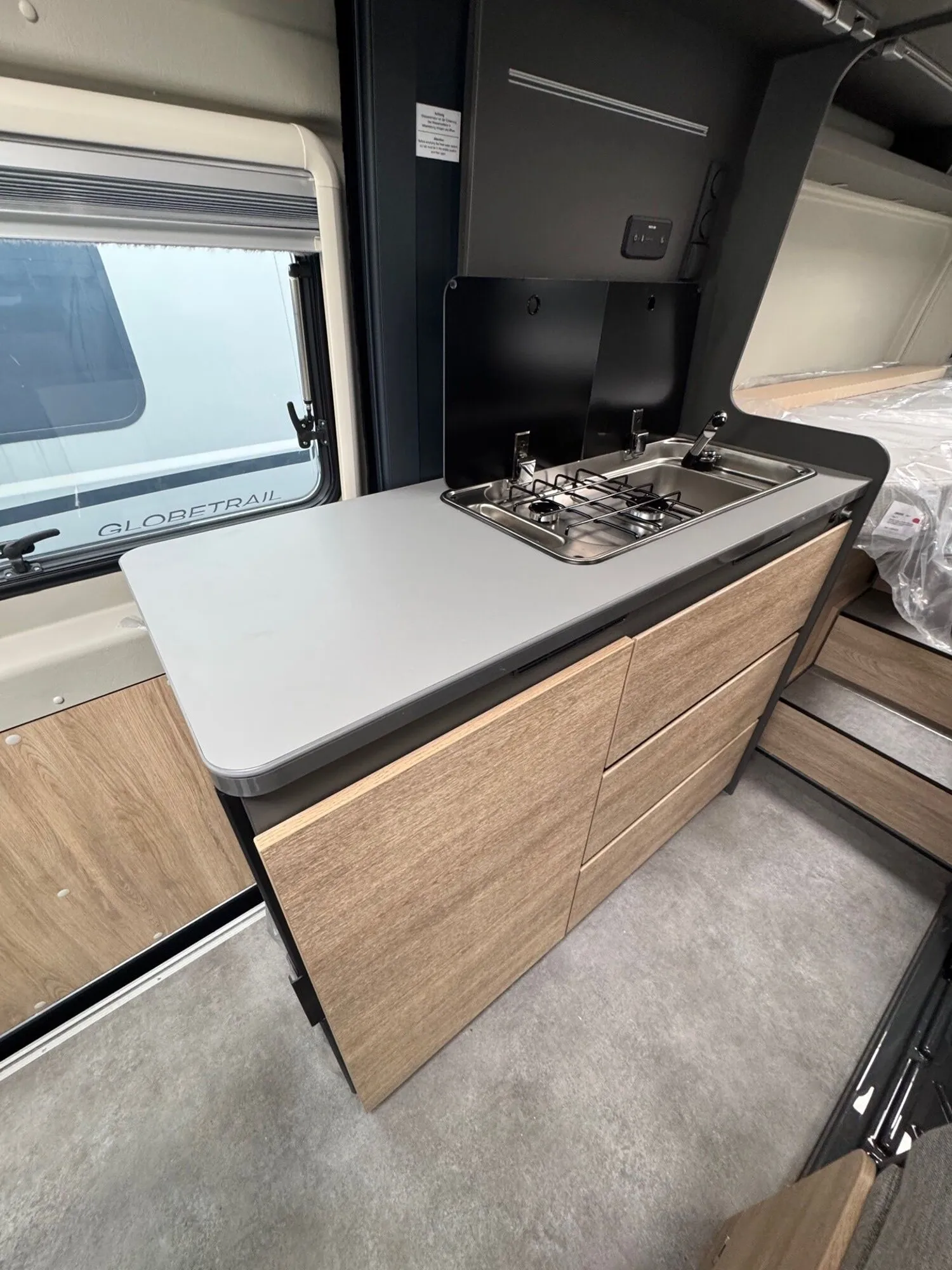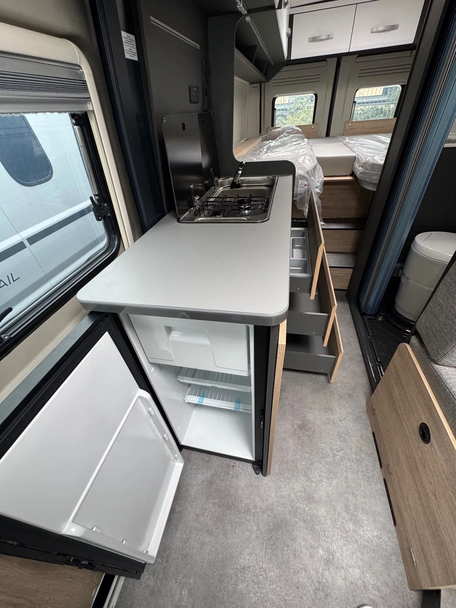 - Elektro Paket (Zusätzliche Doppel-USB-Steckdose im Bug links, 12-V-Steckdose im Heckbereich links unten, 230-V-Steckdose im Oberschrank Bug links (Sitzgruppe), Indirekte Beleuchtung, LED-Lichtröhre in der Küche, Vorbereitung Solarmodule)
