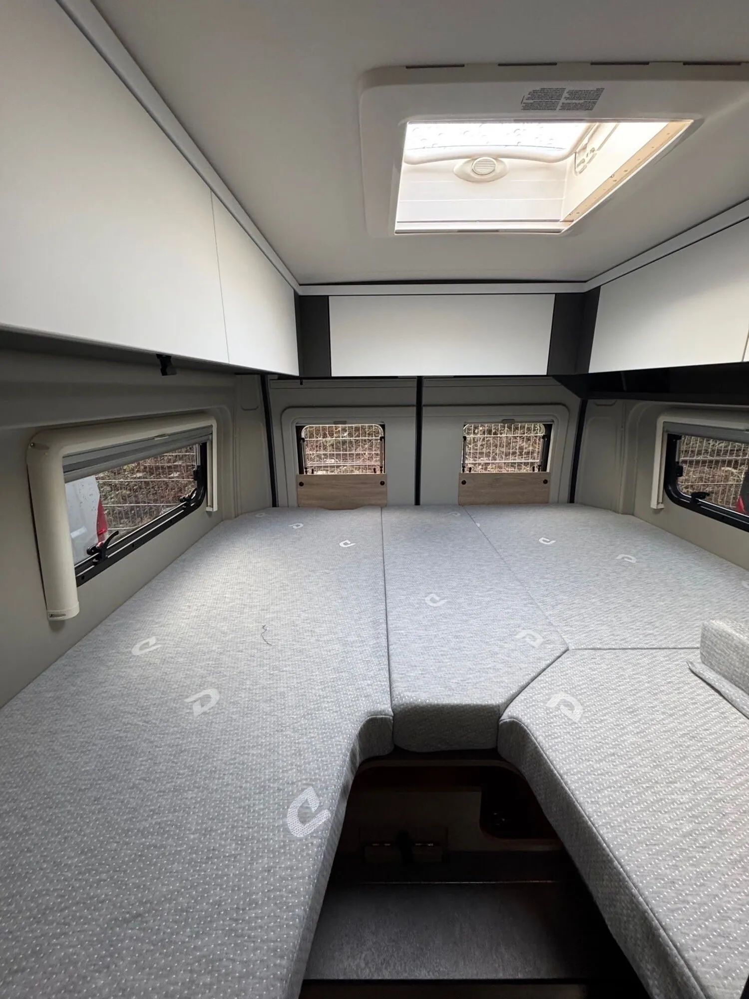 - Fenster mit Fliegenschutz und Verdunklungsrollo im Heck rechts