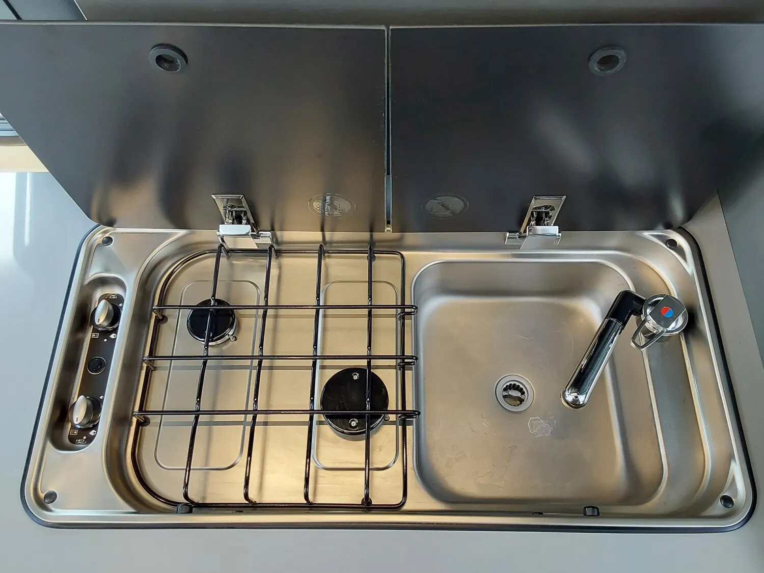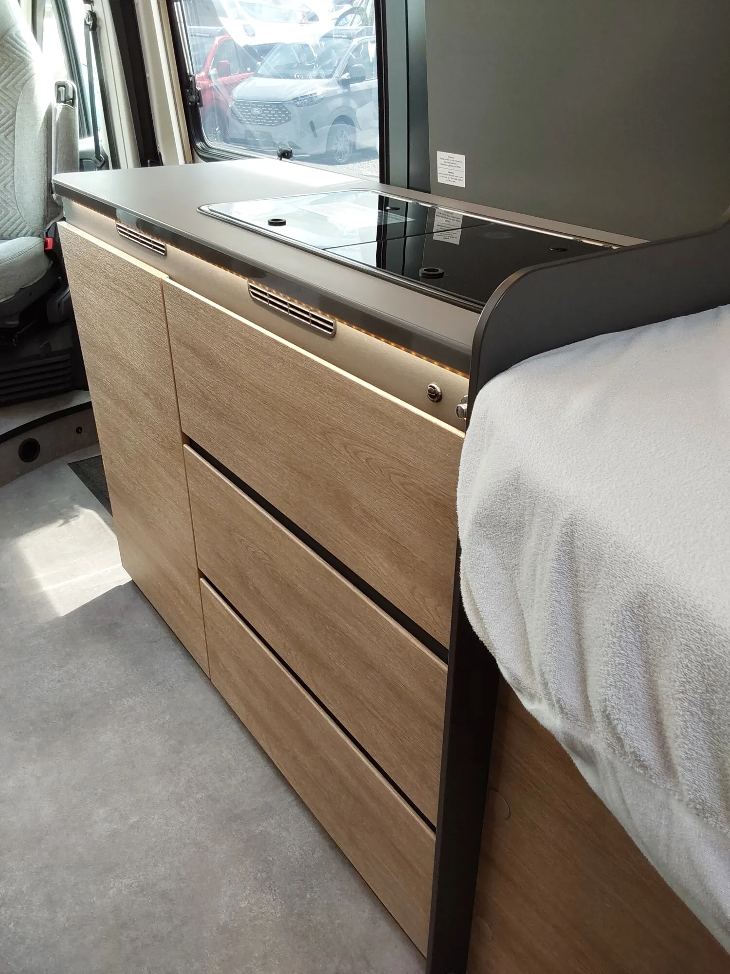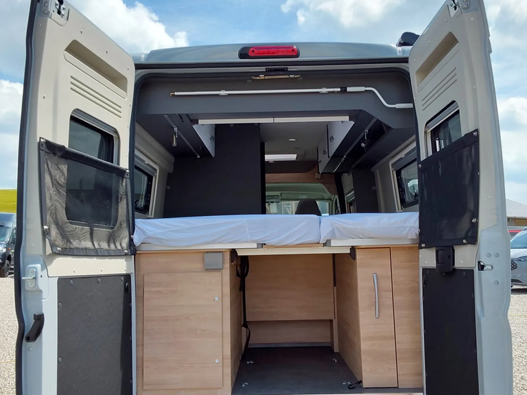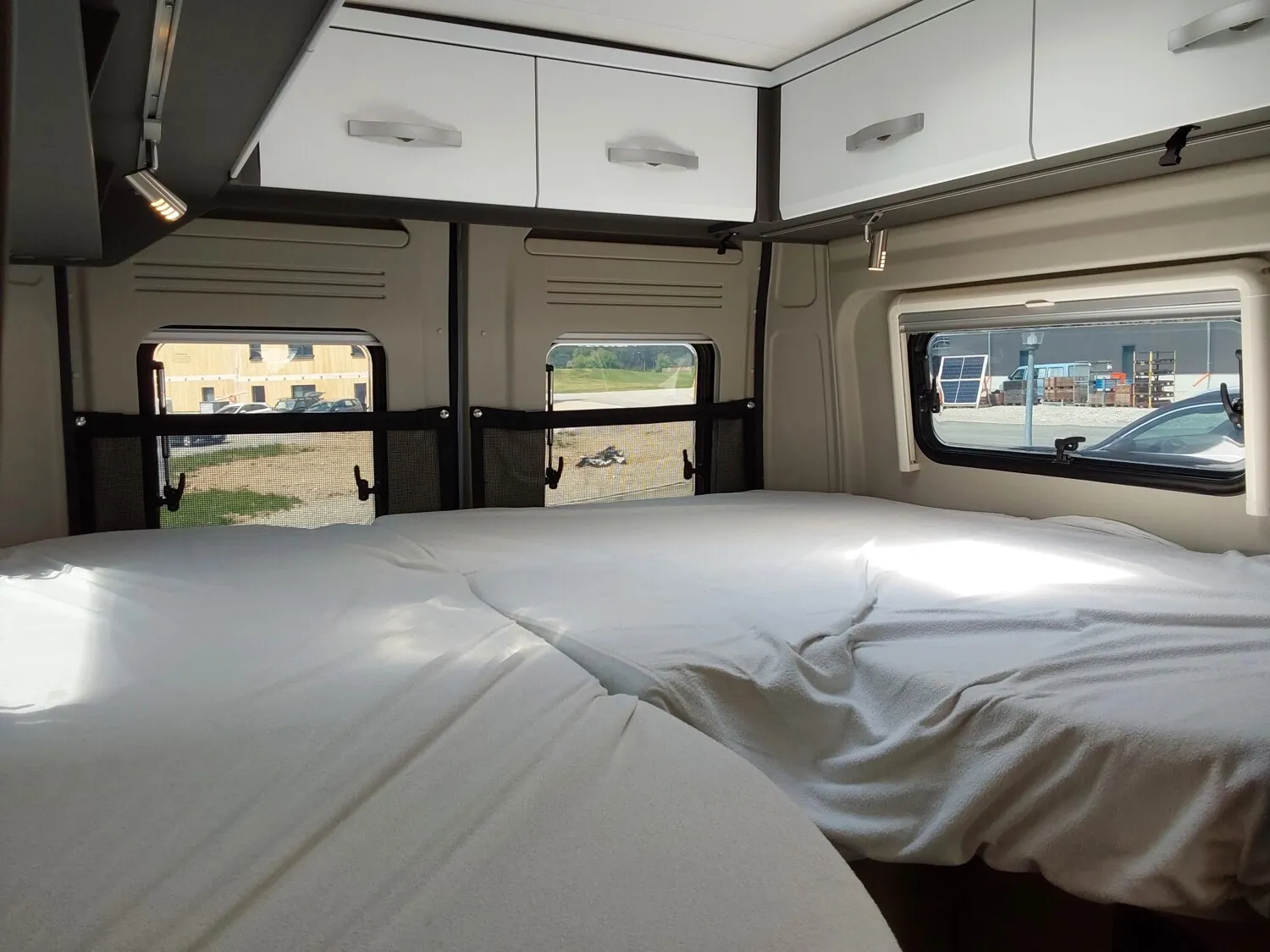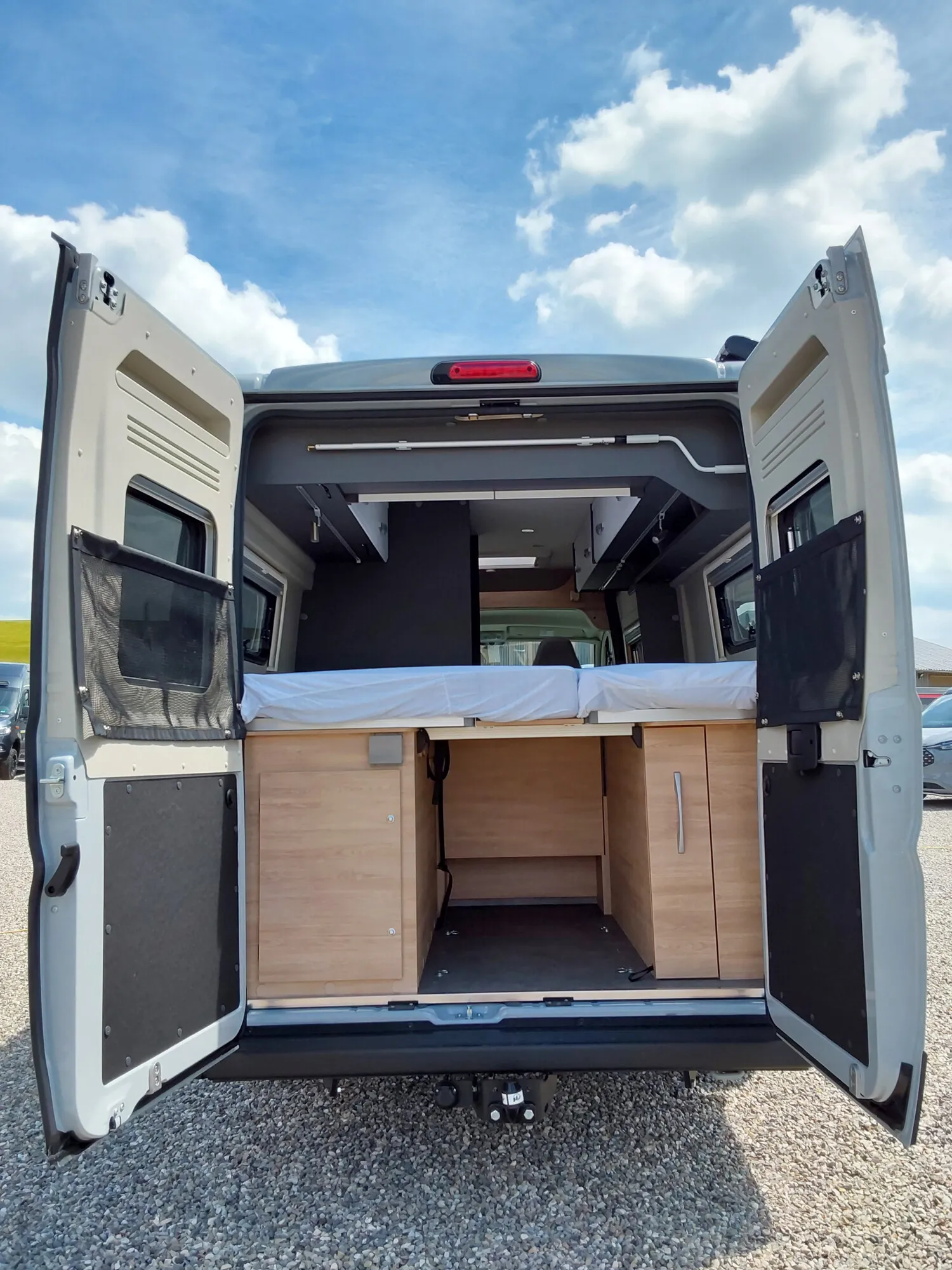 - Fenster mit Fliegenschutz und Verdunklungsrollo im Heck rechts