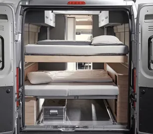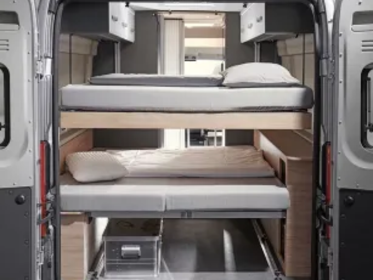 - Hubbett mit Lattenrost und enorm viel Stauraum im Heck
