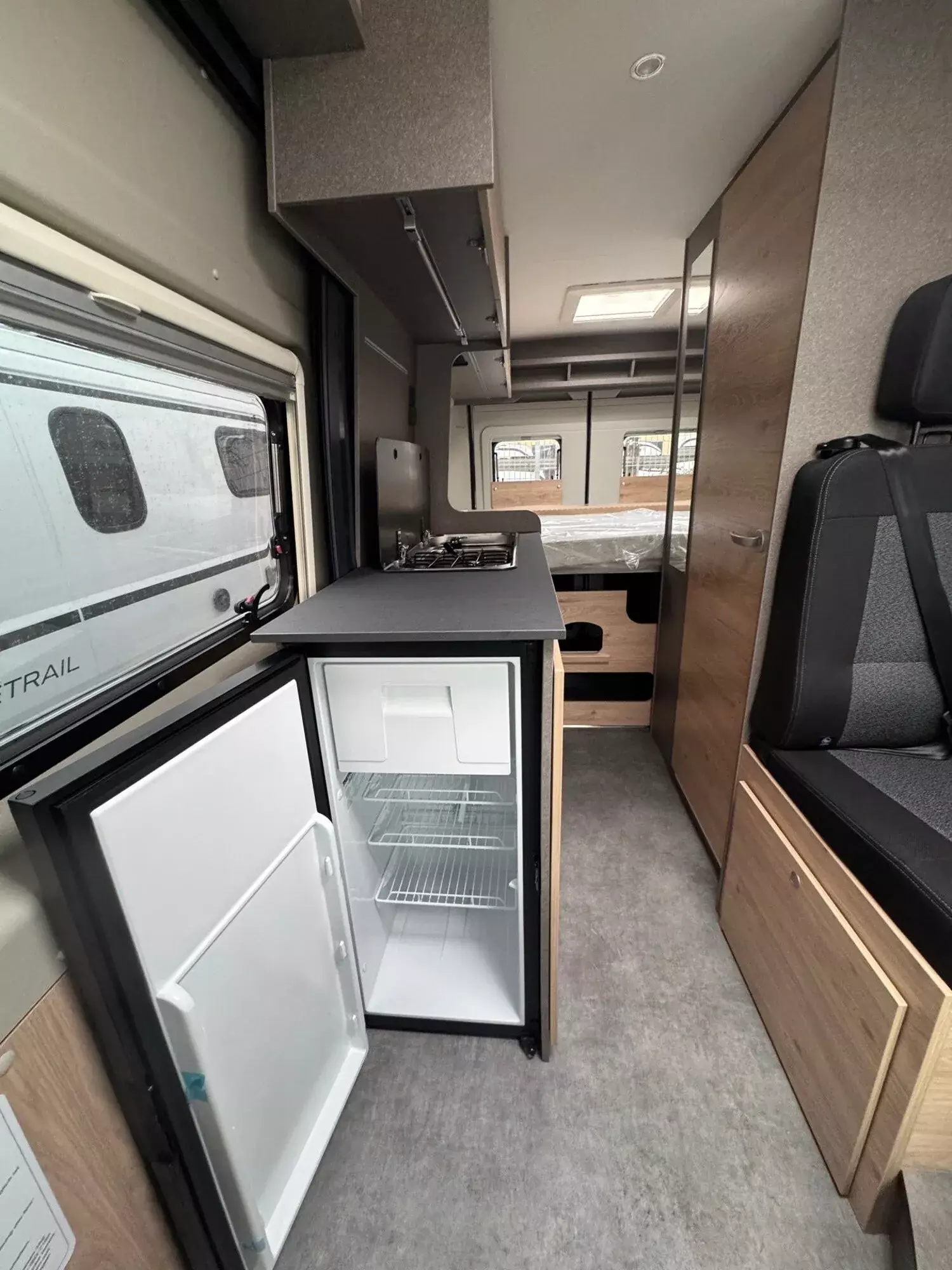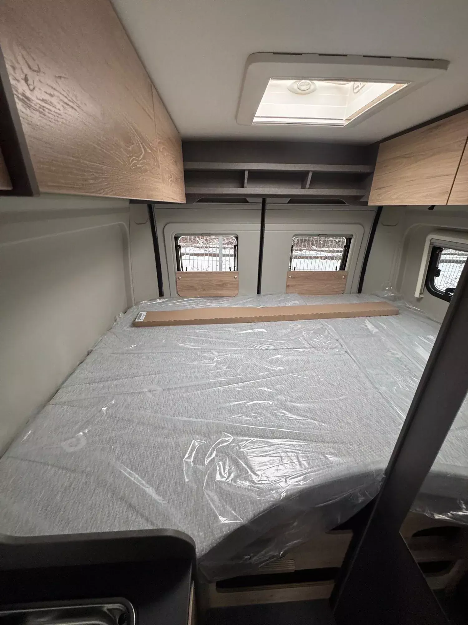 - Fenster mit Fliegenschutz und Verdunklungsrollo im Heck links