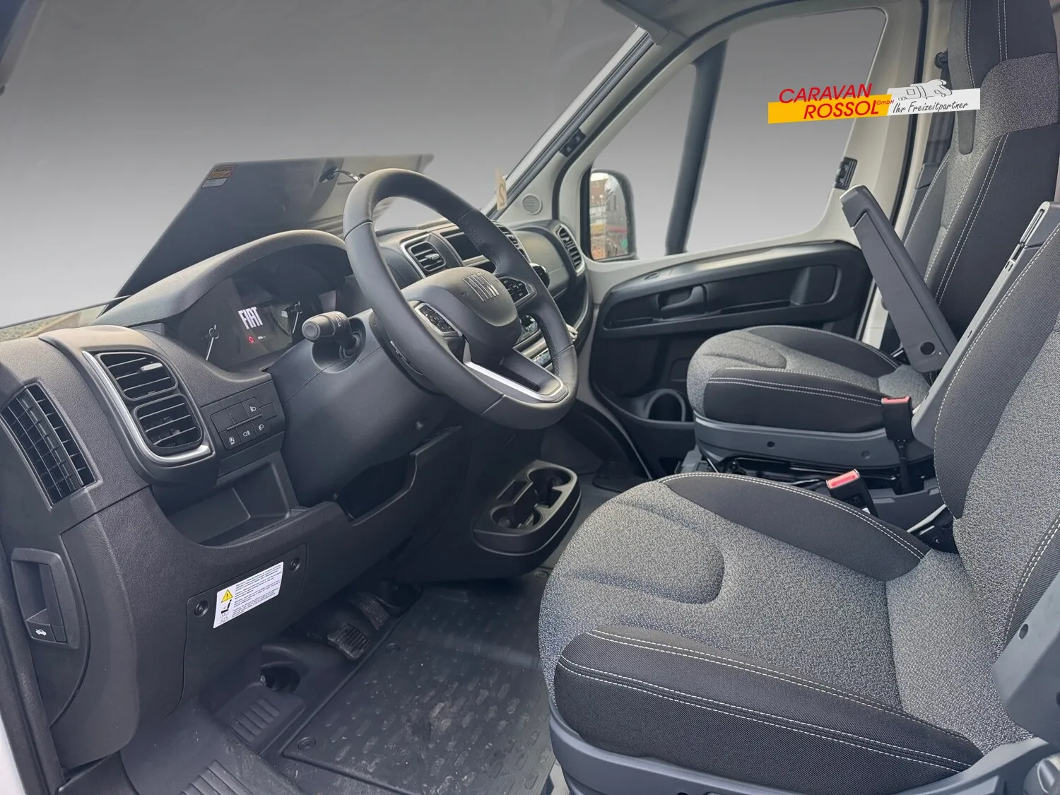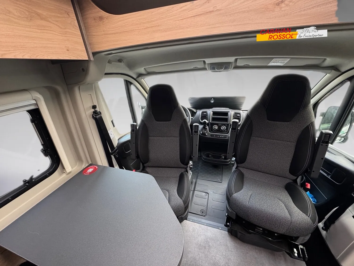 - Active Paket (Fiat) (Alufelge 16 Zoll (Manuelles Getriebe: Felgen Schwarz, Automatik/ Maxi: Felgen Bicolor), Lenkrad und Schaltknauf in Lederausführung, Techno Trim, Tablet Holder, DAB Antenne im Spiegel, Lautsprecher, Lenkradbedienung Radio, Falt-Sichtschutz in Fahrerhaus: Frontscheibe, Falt-Sichtschutz in Fahrerhaus: Seitenscheiben, Fliegengittertür, Elektrische Einstiegsstufe, Fenster im Bad, Dachhaube Midi-Heki 70 x 50 cm über der Sitzgruppe mit Fliegenschutz und Verdunklungsrollo, Drehplatte für Tischerweiterung, Kabelvorbereitung für Rückfahrkamera, Vorbereitung Solarmodule, TV-Vorbereitung 12 V und TV-Steckdose, SAT-Anschluss, LED-Lichtröhre in der Küche, 230-V-Steckdose im Oberschrank Bug links (Sitzgruppe), 12-V-Steckdose im Heckbereich links unten, Zusätzliche Doppel-USB-Steckdose im Bug links)