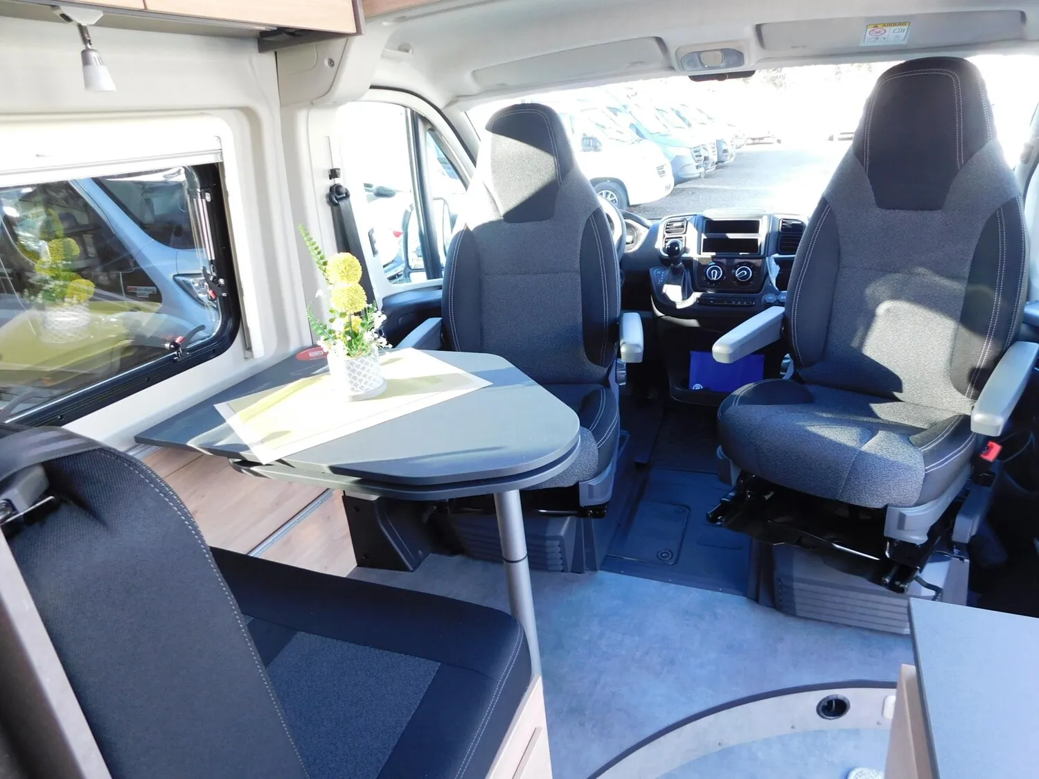 - Active Paket (Fiat) (Alufelge 16 Zoll (Manuelles Getriebe: Felgen Schwarz, Automatik/ Maxi: Felgen Bicolor), Lenkrad und Schaltknauf in Lederausführung, Techno Trim, Tablet Holder, DAB Antenne im Spiegel, Lautsprecher, Lenkradbedienung Radio, Falt-Sichtschutz in Fahrerhaus: Frontscheibe, Falt-Sichtschutz in Fahrerhaus: Seitenscheiben, Fliegengittertür, Elektrische Einstiegsstufe, Fenster im Bad, Dachhaube Midi-Heki 70 x 50 cm über der Sitzgruppe mit Fliegenschutz und Verdunklungsrollo, Drehplatte für Tischerweiterung, Kabelvorbereitung für Rückfahrkamera, Vorbereitung Solarmodule, TV-Vorbereitung 12 V und TV-Steckdose, SAT-Anschluss, LED-Lichtröhre in der Küche, 230-V-Steckdose im Oberschrank Bug links (Sitzgruppe), 12-V-Steckdose im Heckbereich links unten, Zusätzliche Doppel-USB-Steckdose im Bug links)