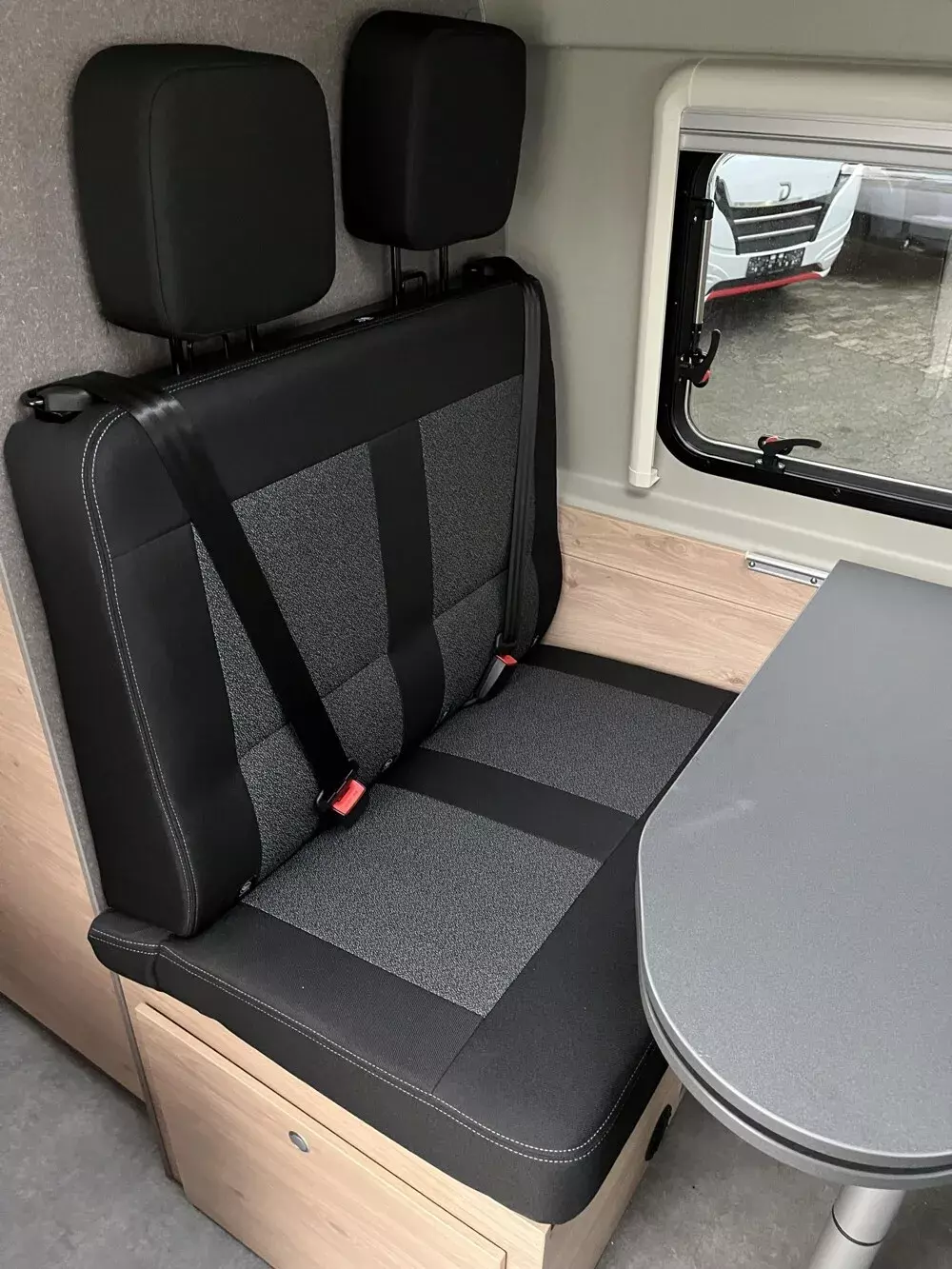 - Fenster mit Fliegenschutz und Verdunklungsrollo im Heck links