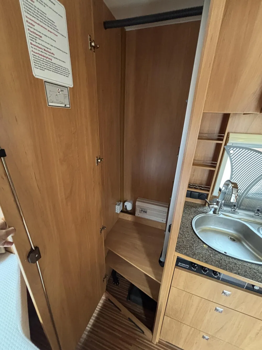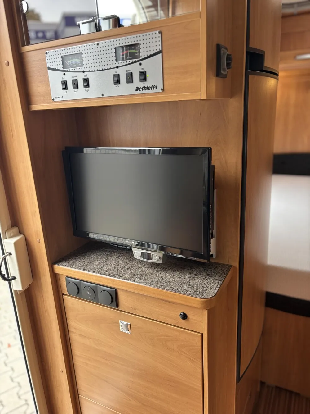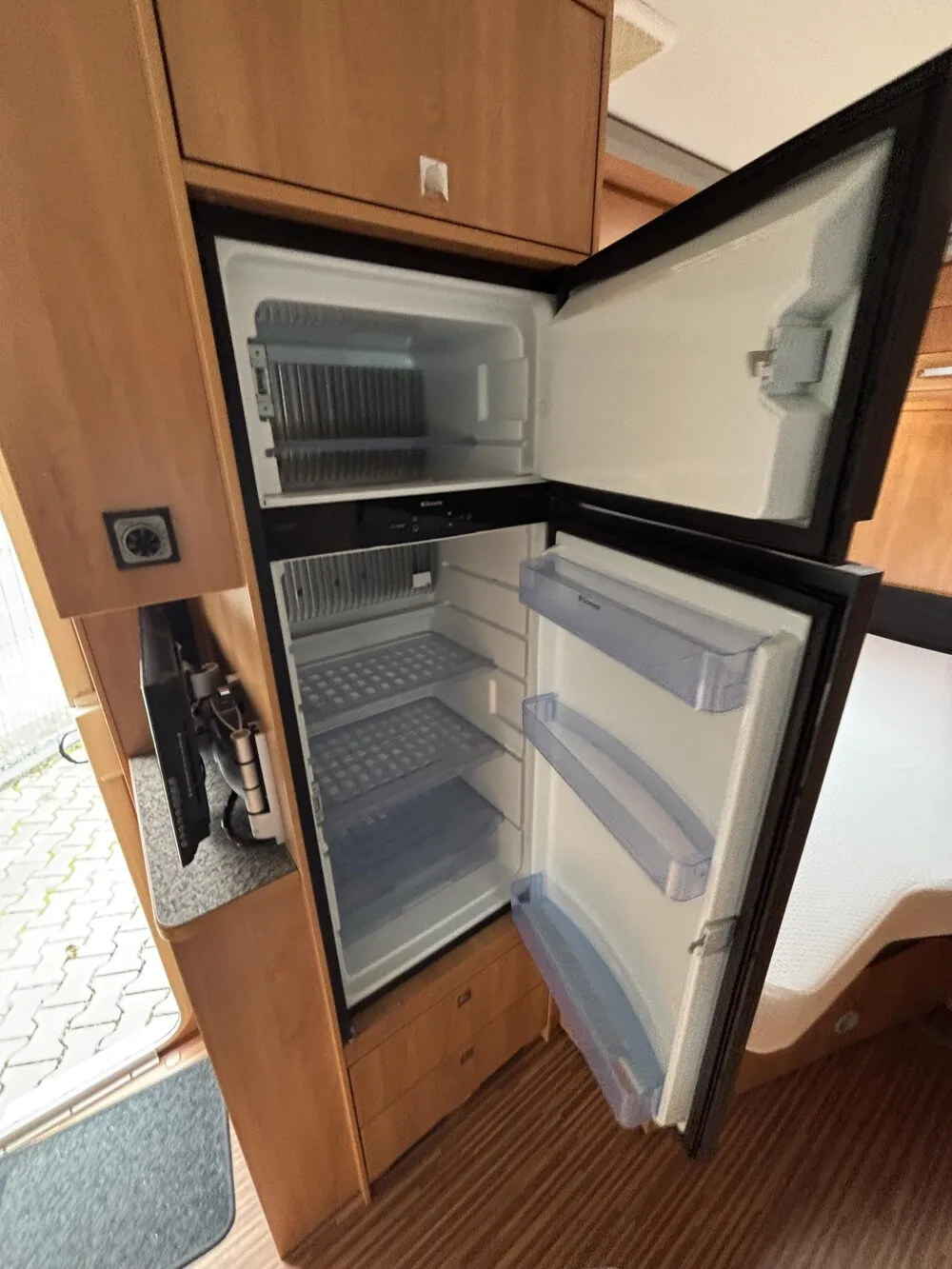 - Großer Absorberkühlschrank ( 220V / 12V und Gas )
