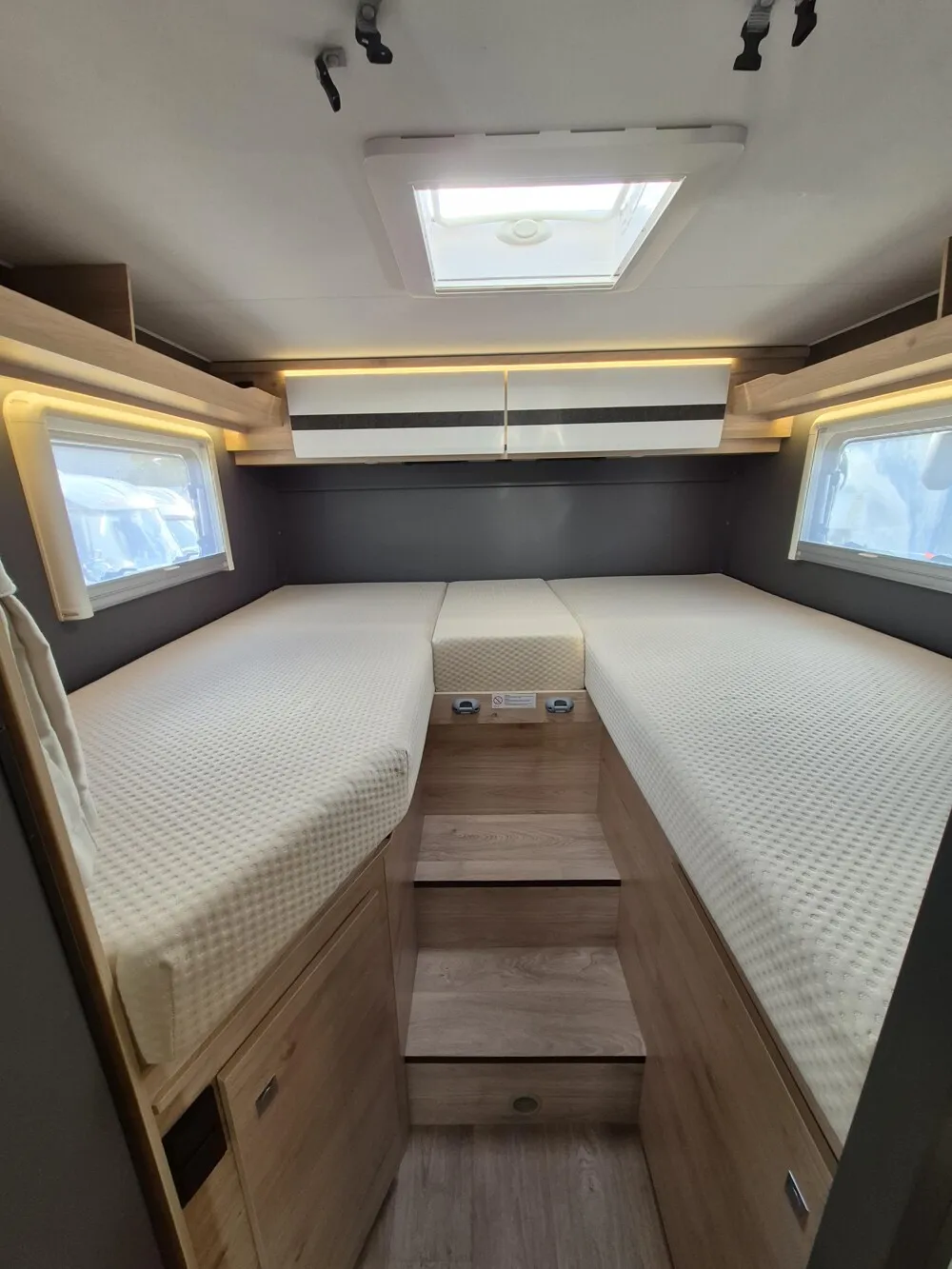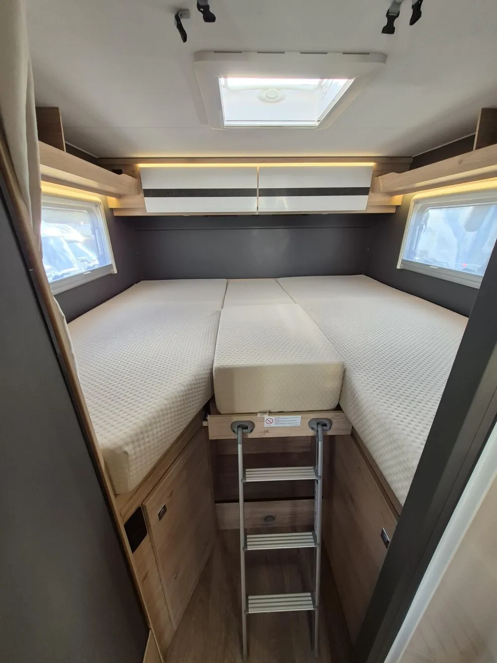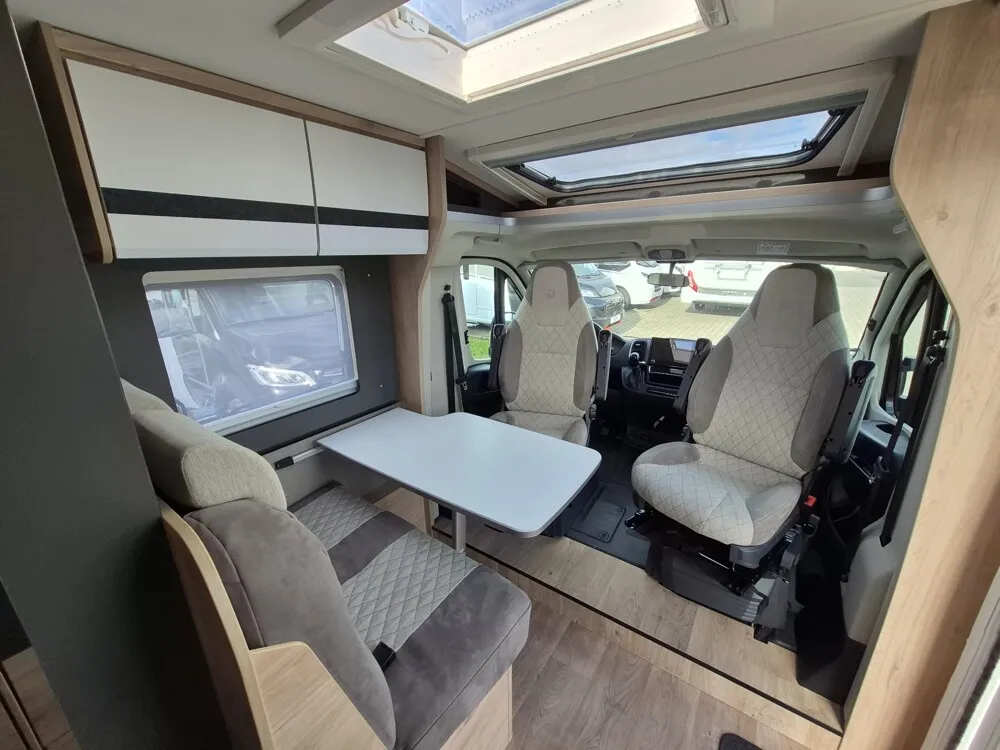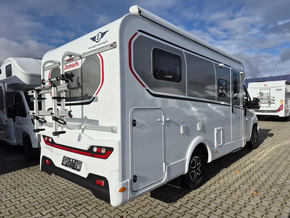 - Active-Paket T4 (Verdunklungsjalousien im Fahrerhaus, Wohnraumtür mit Fenster inkl. Verdunkelung und Zentralverriegelung (inkl. Fahrerhaustür), Panorama-Dachhaube 70 x 50 cm im Wohnraum, Küchenrückwand, Light Moments: Küchenrückwand beleuchtet, Light Moments: Fensterverkleidung im Wohnraum beleuchtet, Light Moments: Indirekte Ambientebeleuchtung über den Dachstauschränken, Light Moments: Indirekte Wandflächen-Ambientebeleuchtung, Bettumbau Einzelbetten zu Doppelbett, Fahrerhaus Klimaanlage automatisch, Digitaler Tacho mit 7"-Kombiinstrument und Wireless Phone Charger in der Mittelkonsole, Voll LED Frontscheinwerfer, Elektrische Feststellbremse, Rückfahrkamera (Einfachkamera), Dethleffs Naviceiver inkl. DAB+, Truck Navigation, Wireless Apple CarPlay und Android Auto, Doppelverglaste Rahmenfenster mit Verdunklung & Mückenschutz, Raumhoher Kompressor Kühlschrank mit separatem Frosterfach (131 l), Duschrost, Digitales Bedienelement für Warmluftheizung, Vorbereitung Solar, Vorbereitung Dach-Klimaanlage, Vorbereitung zweite Rückfahrkamera, Vorbereitung SAT-Anlage, Wohnwelt Jupiter, Active Außendesign (Heckleuchtenträger mit schwarzem Diffusor, erweiterte Beklebung, Skidplate "rot"), Sitzgruppe mit Gurtbank inkl. zwei 3-Punkt-Gurten und einhängbarem und erweiterbarem Tisch, Stauraum-Türe links, Dachmarkise Omnistor 4.0 m (manuell), Abwassertank isoliert)
