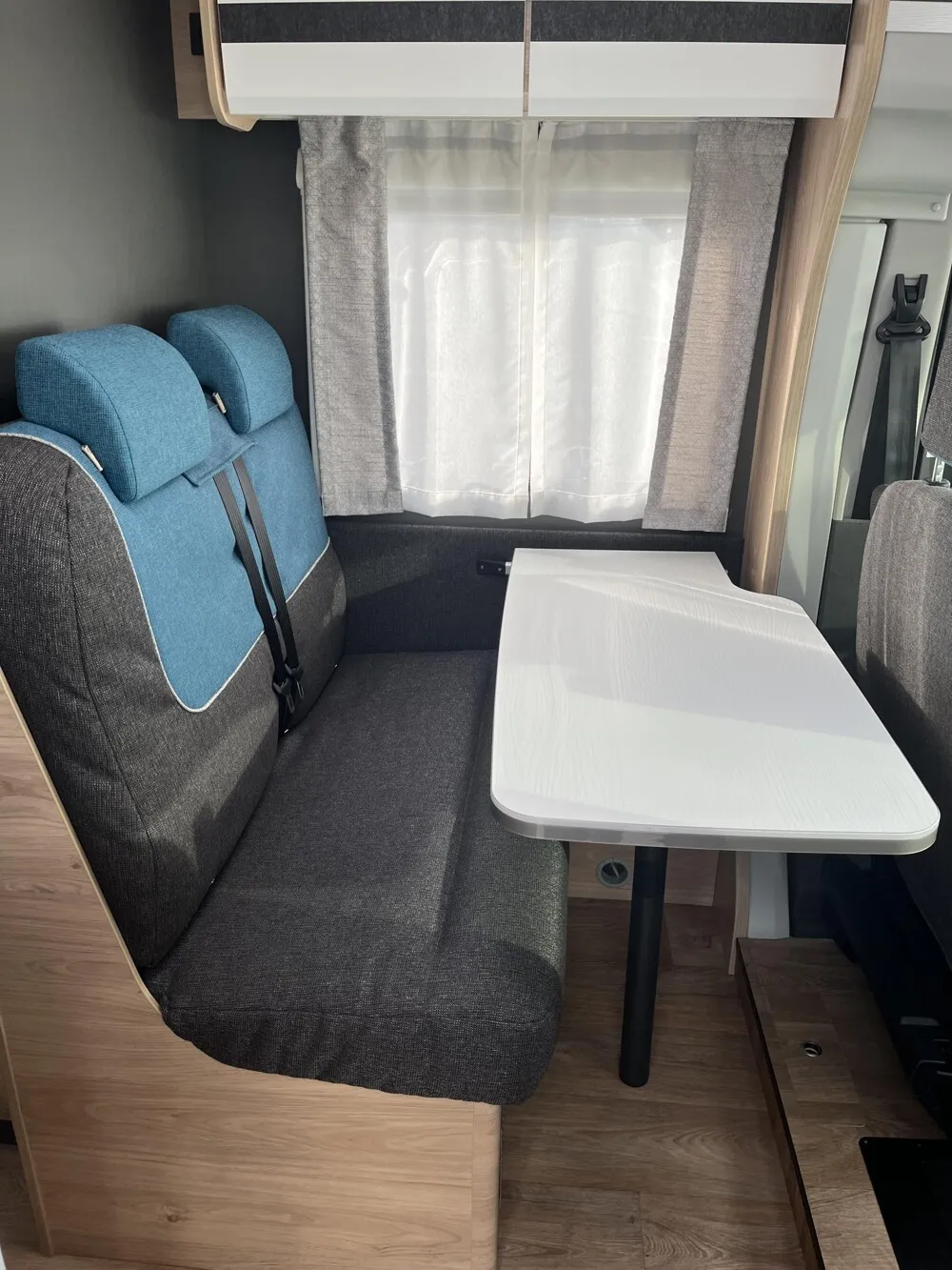 - Sitzgruppe mit Gurtbank inkl. zwei 3-Punkt-Gurten und einhängbarem und erweiterbarem Tisch