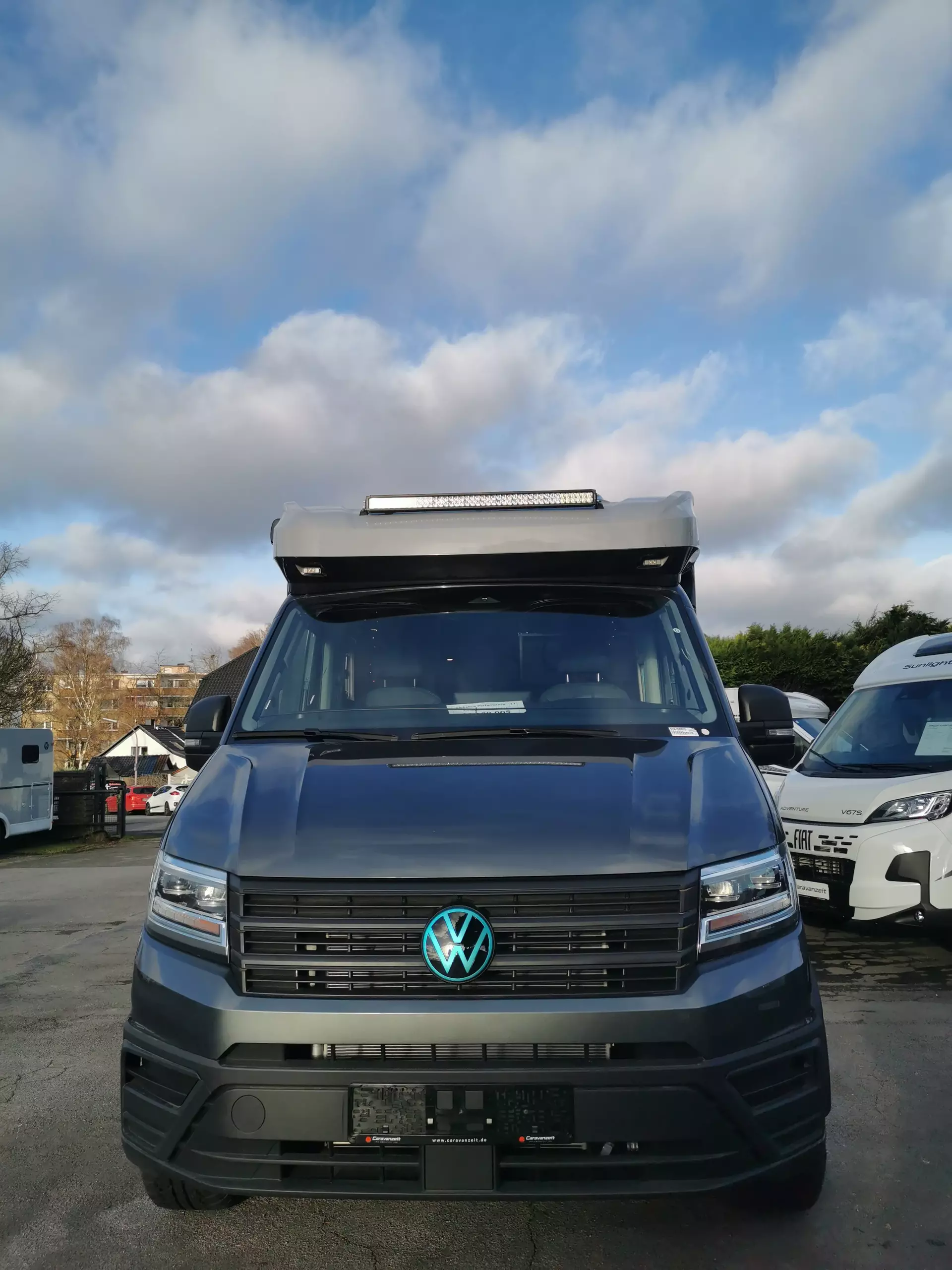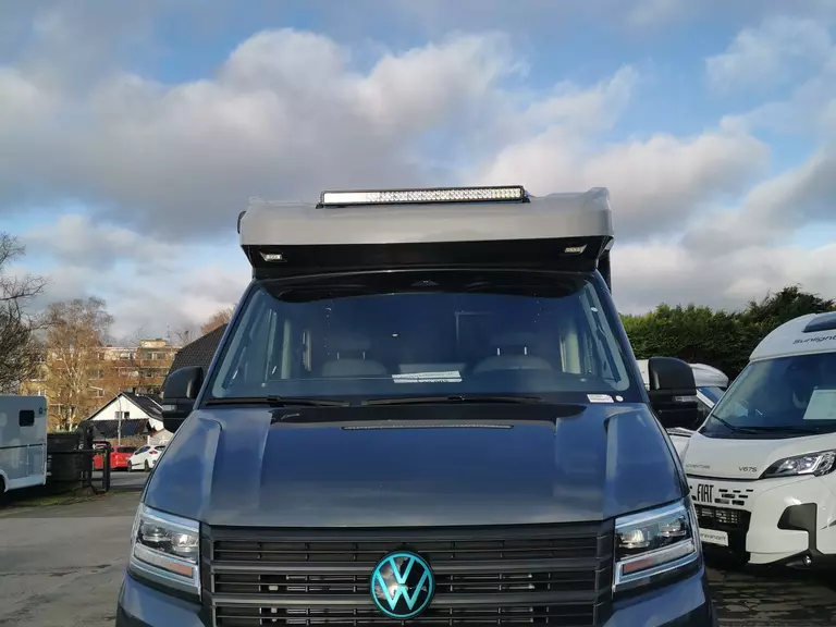 First Edition Paket (Alufelge Hanma 18 Zoll schwarz matt, LoderTire AT 255/55 R18 (M+S Schneeflocke) inkl. Radkastenabdeckung VA, Höherlegung Vorder- und Hinterachse, LED Lightbar T-Haube, Verdunklungsjalousien im Fahrerhaus, Wohnraumtür mit Fenster inkl. Verdunkelung und Zentralverriegelung (inkl. Fahrerhaustür), Dachlüfter mit Ventilator, Doppelverglaste Rahmenfenster mit Verdunklung & Mückenschutz, Cassettenmarkise Omnistor 4.0 m inkl. LED Beleuchtung (manuell), Dachreling, Aufstiegsleiter für Dachreling inkl. Querträger, 2. Aufbaubatterie Dual Battery System (Lithium), 168 Ah, Light Moments: Indirekte Ambientebeleuchtung über den Dachstauschränken, Light Moments: Indirekte Wandflächen-Ambientebeleuchtung, Light Moments: Verkleidete Sitztruhenwange mit indirekter Beleuchtung, Light Moments: Fensterverkleidung im Wohnraum beleuchtet, Light Moments: Küchenrückwand beleuchtet, 5G WLAN Router inkl. 4x4 Dachantenne mit 32 Smart TV inkl. Flachbildschirmhalter, Raumhoher Kompressor Kühlschrank mit separatem Frosterfach (131 l), FirstEdition Außendesign (Bi-Color lackierung T-Haube, schwarze Kantenleisten), Außenlackierung Aufbau: Grau, Außenfarbe Chassis: Indiumgrau Metallic, Klimaanlage AirCare Climatic, LED-Hauptscheinwerfer mit LED-Tagfahrlicht, Licht- und Sicht-Paket, Vorbereitung für VW Connect und VW Connect Plus, Außenspiegel el. verstell- und beheizbar und integriertem Blinker, Assistenzpaket Advanced inkl. automaitscher Distanzregelung (ACC), intelligenter Speed-/ Travel-/ Lane-Assist, Navigationssytem Discover Pro mit 12" Touch-Farbdisplay, Differentialsperre, Berganfahrhilfe / Abfahrhilfe, Handschuhfach abschließbar und beleuchtet)