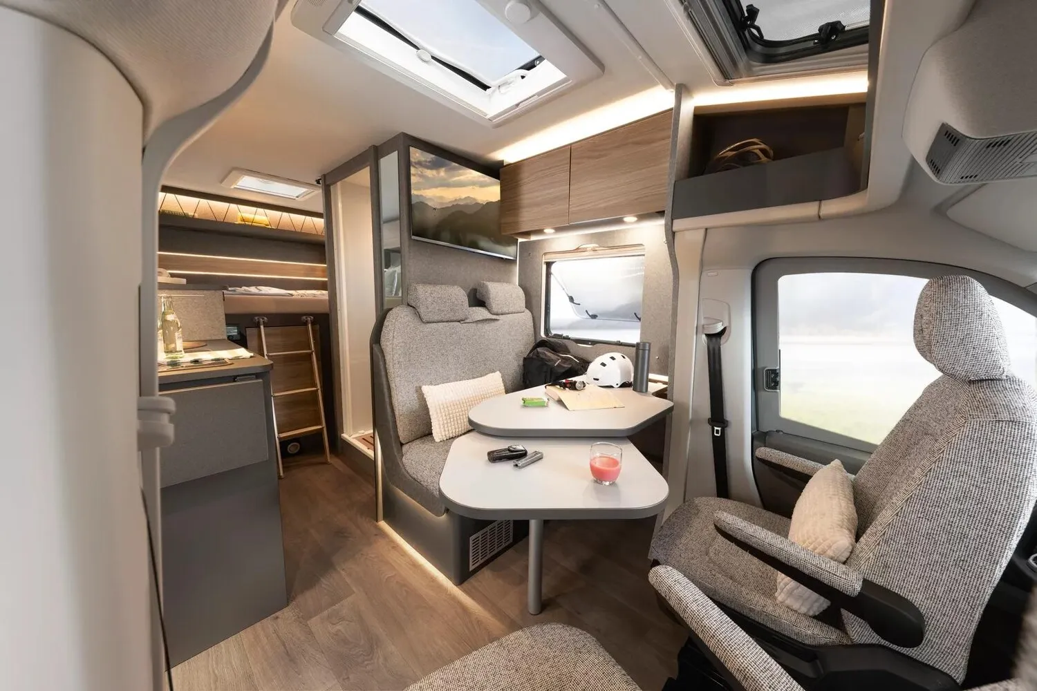 - First Edition Paket (Alufelge Hanma 18 Zoll schwarz matt, LoderTire AT 255/55 R18 (M+S Schneeflocke) inkl. Radkastenabdeckung VA, Höherlegung Vorder- und Hinterachse, LED Lightbar T-Haube, Verdunklungsjalousien im Fahrerhaus, Wohnraumtür mit Fenster inkl. Verdunkelung und Zentralverriegelung (inkl. Fahrerhaustür), Dachlüfter mit Ventilator, Doppelverglaste Rahmenfenster mit Verdunklung & Mückenschutz, Cassettenmarkise Omnistor 4.0 m inkl. LED Beleuchtung (manuell), Dachreling, Aufstiegsleiter für Dachreling inkl. Querträger, 2. Aufbaubatterie Dual Battery System (Lithium), 168 Ah, Light Moments: Indirekte Ambientebeleuchtung über den Dachstauschränken, Light Moments: Indirekte Wandflächen-Ambientebeleuchtung, Light Moments: Verkleidete Sitztruhenwange mit indirekter Beleuchtung, Light Moments: Fensterverkleidung im Wohnraum beleuchtet, Light Moments: Küchenrückwand beleuchtet, 5G WLAN Router inkl. 4x4 Dachantenne mit 32 Smart TV inkl. Flachbildschirmhalter, Raumhoher Kompressor Kühlschrank mit separatem Frosterfach (131 l), FirstEdition Außendesign (Bi-Color lackierung T-Haube, schwarze Kantenleisten), Außenlackierung Aufbau: Grau, Außenfarbe Chassis: Indiumgrau Metallic, Klimaanlage AirCare Climatic, LED-Hauptscheinwerfer mit LED-Tagfahrlicht, Licht- und Sicht-Paket, Vorbereitung für VW Connect und VW Connect Plus, Außenspiegel el. verstell- und beheizbar und integriertem Blinker, Assistenzpaket Advanced inkl. automaitscher Distanzregelung (ACC), intelligenter Speed-/ Travel-/ Lane-Assist, Navigationssytem Discover Pro mit 12" Touch-Farbdisplay, Differentialsperre, Berganfahrhilfe / Abfahrhilfe, Handschuhfach abschließbar und beleuchtet)