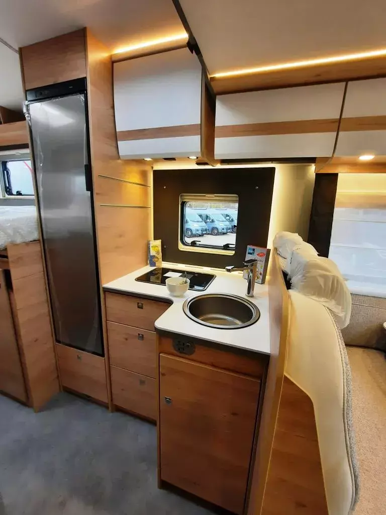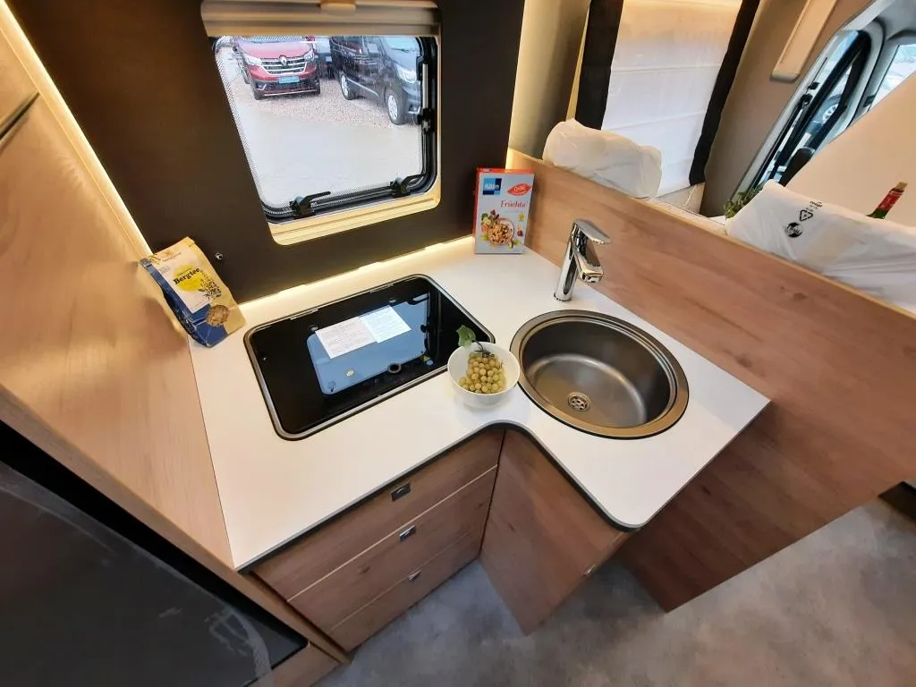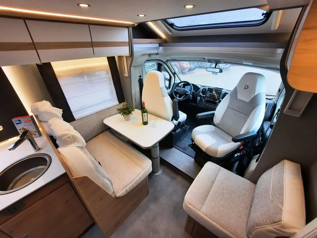 - Active-Paket ( Verdunklungsjalousinen im Fahrerhaus, Wohnraumtür mit Fenster, inkl. Verdunklung und Zentralverriegelung (inkl. Fahrerhaustür), Ausstellenster in T-Haube, Panorama-Dachhaube 70x50 cm im Wohnraum, Küchenrückwand, Light Moments: (Küchenrückwand beleuchtet, Indirekte Ambientebeleuchtung über den Dachstauschränken, Indirekte Wandflächen-Ambientebeleuchtung), Rückfahrkamera (Einfachkamera), Dethleffs Naviceiver inkl. DAB, Truck Navigation, Wireless Apple CarPlay und Android Auto, Doppelverglaste Rahmenfenster mit Verdunklung & Mückenschutz, Digitales Bedienelement für Warmluftheizung, Vorbereitung Solar, Vorbereitung Dach-Klimaanlage, Vorbereitung SAT-Anlage, Active Außendesign (Heckleuchtenträger mit schwarzem Diffusor, erweiterte Beklebung, Skidplate „rot“), Bettenumbau Einzelbett zu Doppelbett, Fenster im Badezimmer, Duschrost Stauraum-Türe links, Dachmarkise Omnistor (manuell), Textilleder-Wohnwelt Heron )