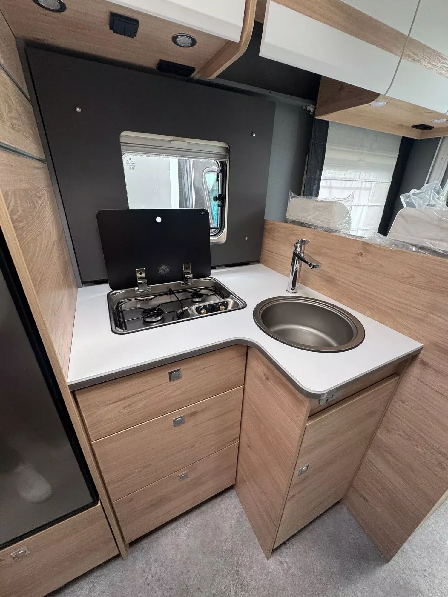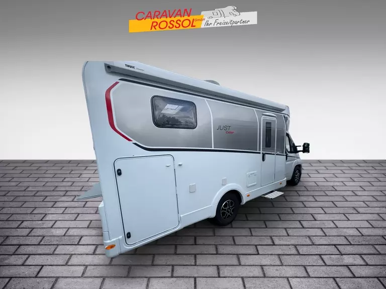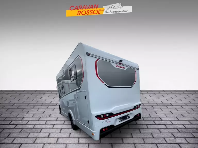 - Active-Paket T 6812 EB (Ausstellfenster in der T-Haube, Wohnraumtür mit Fenster inkl. Verdunkelung und Zentralverriegelung (inkl. Fahrerhaustür), Verdunklungsjalousien im Fahrerhaus, Panorama-Dachhaube 70 x 50 cm im Wohnraum, Light Moments: Indirekte Ambientebeleuchtung über den Dachstauschränken, Light Moments: Indirekte Wandflächen-Ambientebeleuchtung, Stauraum-Türe links, Doppelverglaste Rahmenfenster mit Verdunklung & Mückenschutz inkl. verkleidete Küchenrückwand, Textilleder-Wohnwelt Heron, Vorbereitung Solar, Light Moments: Küchenrückwand beleuchtet, Vorbereitung Dach-Klimaanlage, Digitales Bedienelement für Warmluftheizung, Dethleffs Naviceiver inkl. DAB+, Truck Navigation, Wireless Apple CarPlay und Android Auto, Rückfahrkamera (Einfachkamera), Vorbereitung SAT-Anlage, Active Außendesign (Heckleuchtenträger mit schwarzem Diffusor, erweiterte Beklebung, Skidplate "rot"), Bettumbau Einzelbetten zu Doppelbett, Gemütliche L-Sitzgruppe mit freistehendem, absenkbarem Tischfuß und 2 integrierte 3-Punkt-Gurte, Duschrost, Cassettenmarkise Omnistor 4.0 m (manuell))