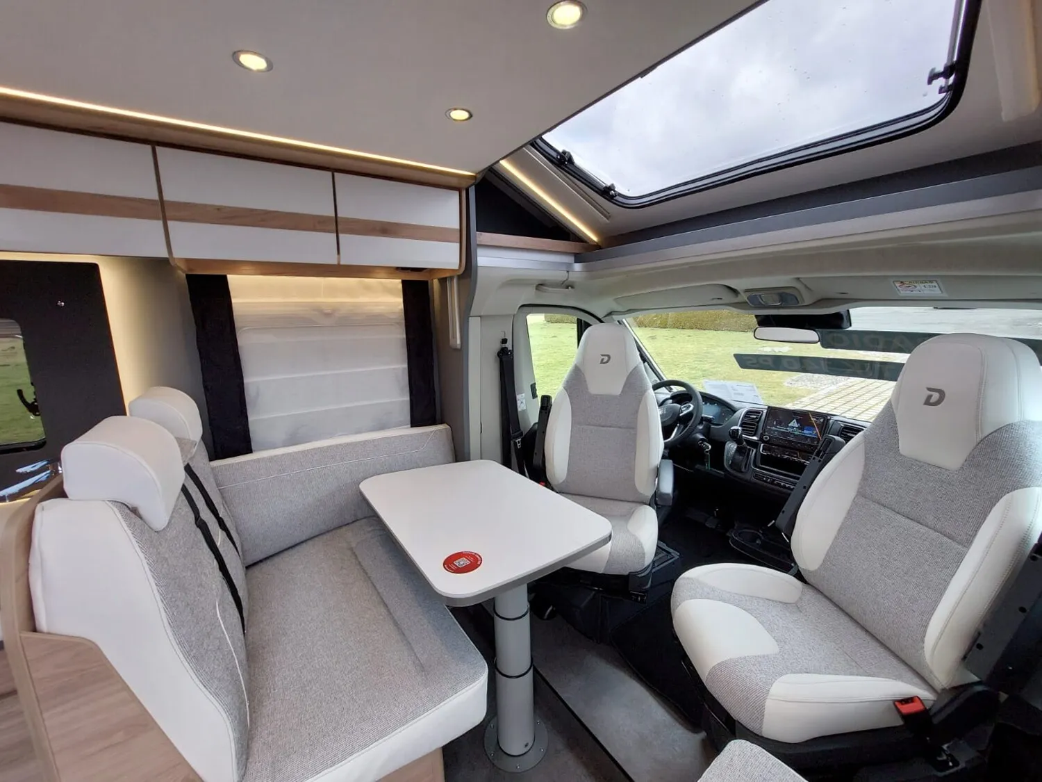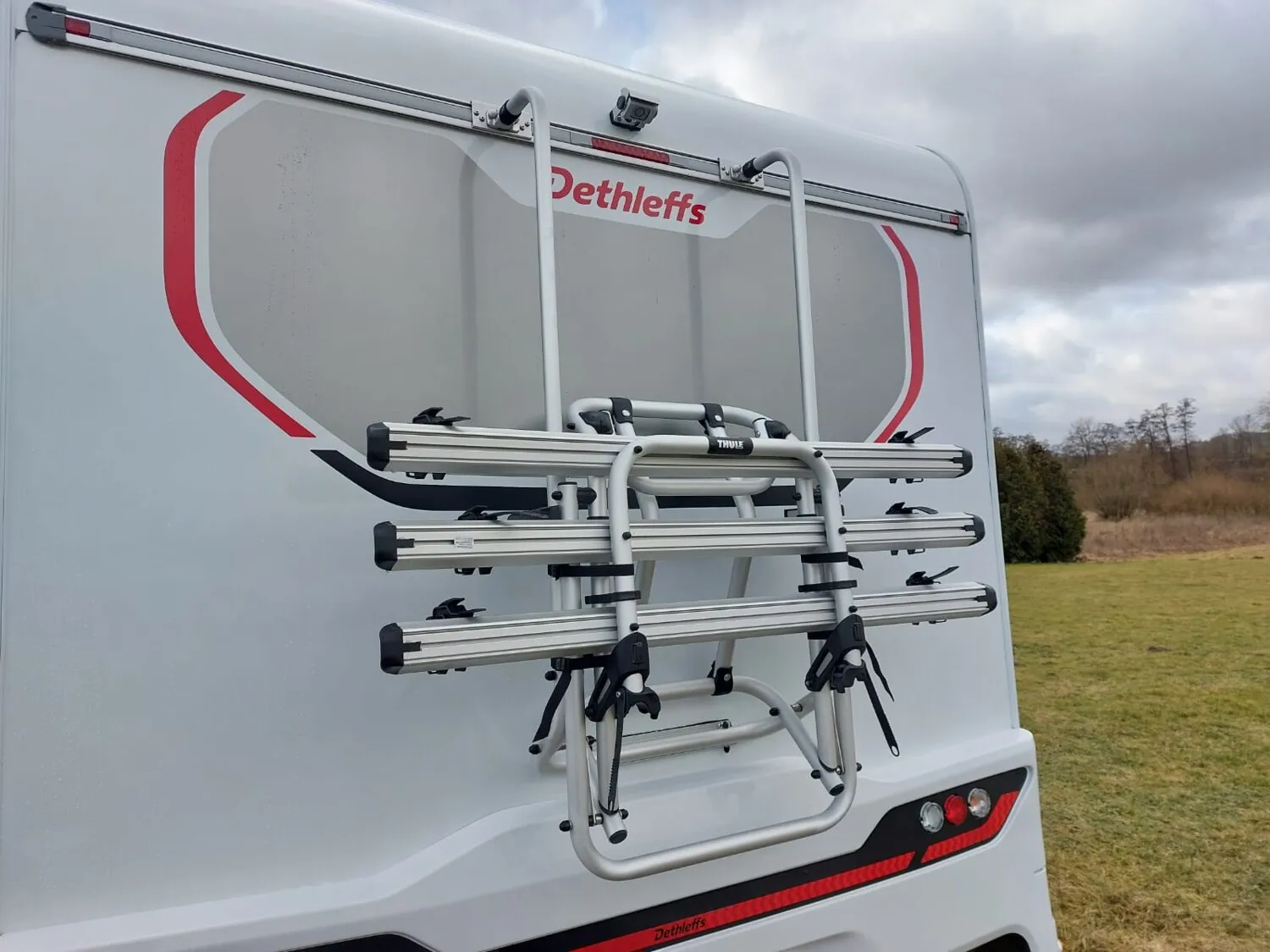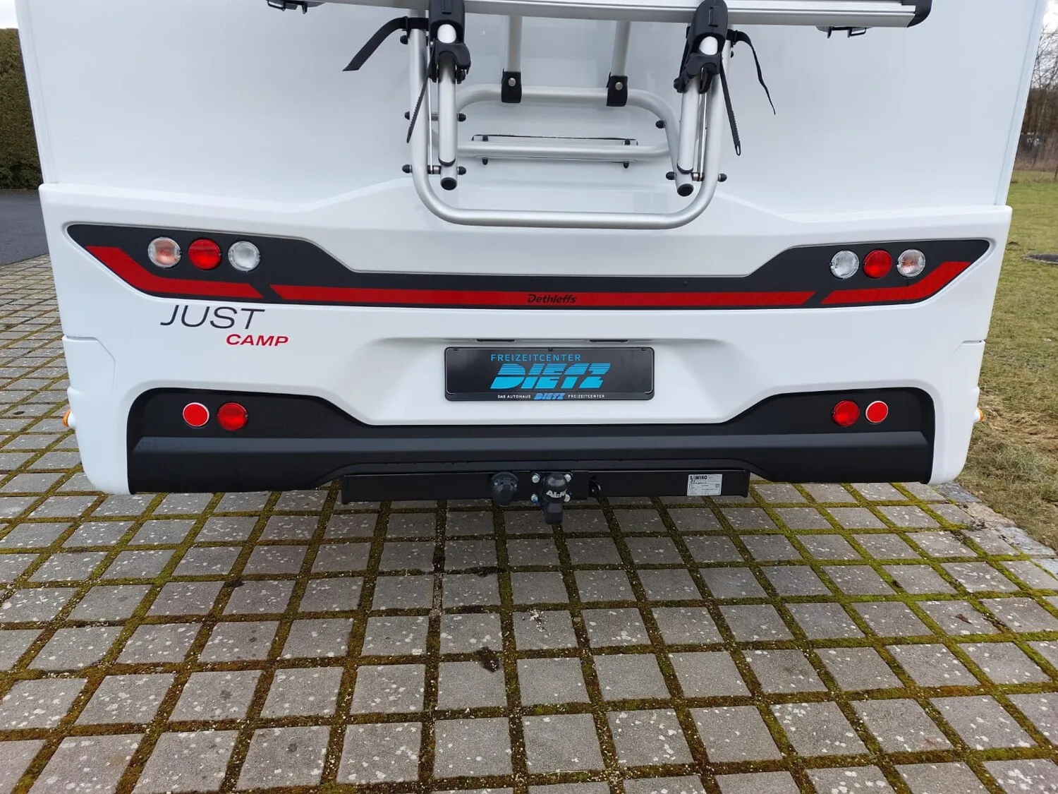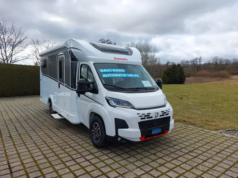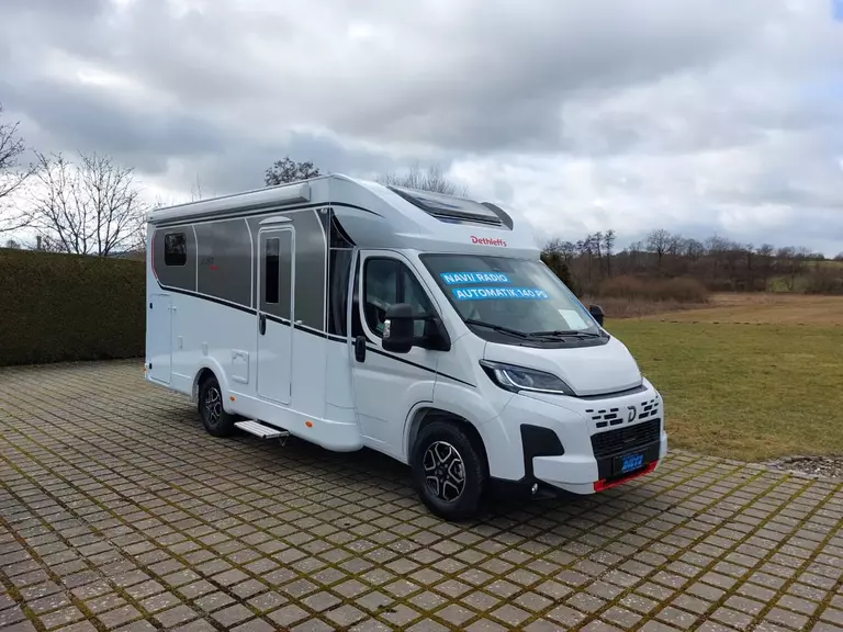 - Active-Paket T 6812 EB (Ausstellfenster in der T-Haube, Wohnraumtür mit Fenster inkl. Verdunkelung und Zentralverriegelung (inkl. Fahrerhaustür), Verdunklungsjalousien im Fahrerhaus, Panorama-Dachhaube 70 x 50 cm im Wohnraum, Light Moments: Indirekte Ambientebeleuchtung über den Dachstauschränken, Light Moments: Indirekte Wandflächen-Ambientebeleuchtung, Stauraum-Türe links, Doppelverglaste Rahmenfenster mit Verdunklung & Mückenschutz inkl. verkleidete Küchenrückwand, Textilleder-Wohnwelt Heron, Vorbereitung Solar, Light Moments: Küchenrückwand beleuchtet, Vorbereitung Dach-Klimaanlage, Digitales Bedienelement für Warmluftheizung, Dethleffs Naviceiver inkl. DAB+, Truck Navigation, Wireless Apple CarPlay und Android Auto, Rückfahrkamera (Einfachkamera), Vorbereitung SAT-Anlage, Active Außendesign (Heckleuchtenträger mit schwarzem Diffusor, erweiterte Beklebung, Skidplate "rot"), Bettumbau Einzelbetten zu Doppelbett, Gemütliche L-Sitzgruppe mit freistehendem, absenkbarem Tischfuß und 2 integrierte 3-Punkt-Gurte, Duschrost, Cassettenmarkise Omnistor 4.0 m (manuell))