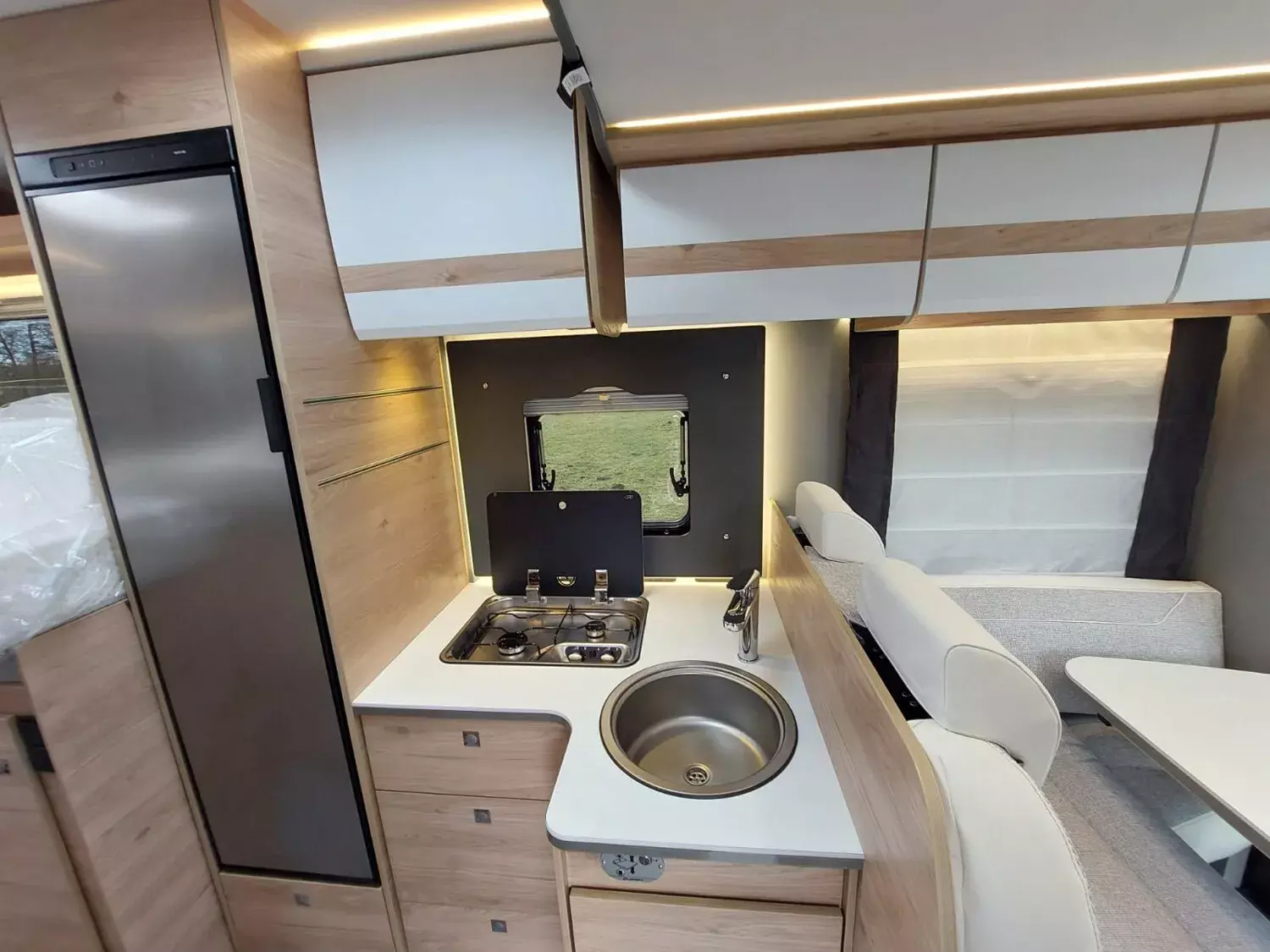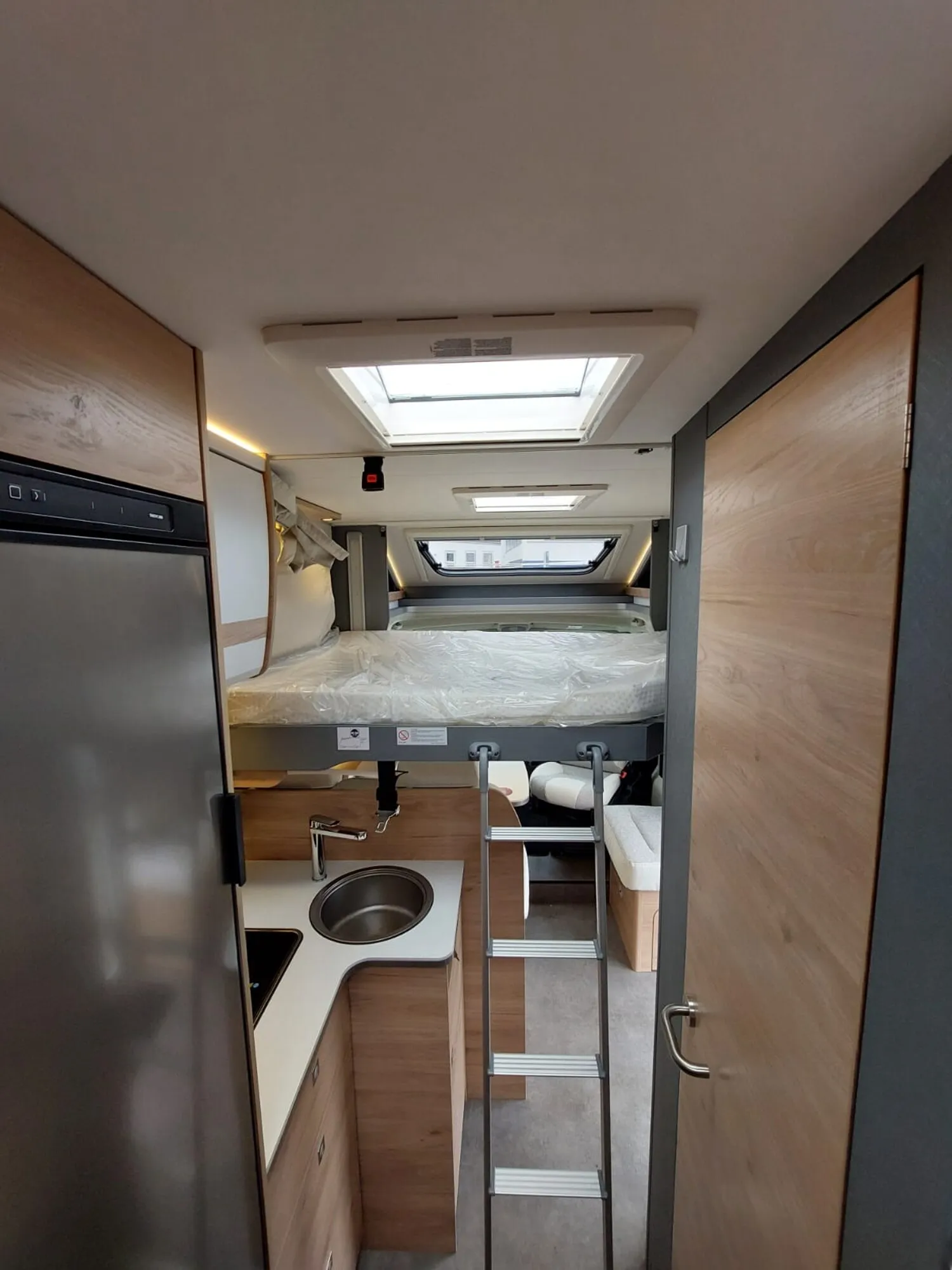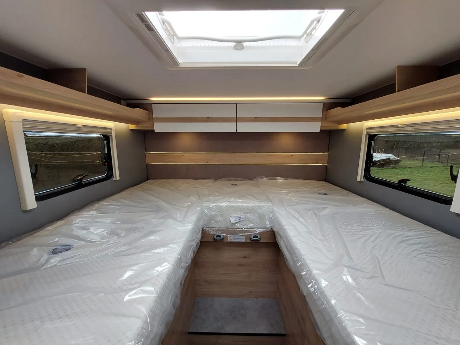 - Active-Paket T 6812 EB (Ausstellfenster in der T-Haube, Wohnraumtür mit Fenster inkl. Verdunkelung und Zentralverriegelung (inkl. Fahrerhaustür), Verdunklungsjalousien im Fahrerhaus, Panorama-Dachhaube 70 x 50 cm im Wohnraum, Light Moments: Indirekte Ambientebeleuchtung über den Dachstauschränken, Light Moments: Indirekte Wandflächen-Ambientebeleuchtung, Stauraum-Türe links, Doppelverglaste Rahmenfenster mit Verdunklung & Mückenschutz inkl. verkleidete Küchenrückwand, Textilleder-Wohnwelt Heron, Vorbereitung Solar, Light Moments: Küchenrückwand beleuchtet, Vorbereitung Dach-Klimaanlage, Digitales Bedienelement für Warmluftheizung, Dethleffs Naviceiver inkl. DAB+, Truck Navigation, Wireless Apple CarPlay und Android Auto, Rückfahrkamera (Einfachkamera), Vorbereitung SAT-Anlage, Active Außendesign (Heckleuchtenträger mit schwarzem Diffusor, erweiterte Beklebung, Skidplate "rot"), Bettumbau Einzelbetten zu Doppelbett, Gemütliche L-Sitzgruppe mit freistehendem, absenkbarem Tischfuß und 2 integrierte 3-Punkt-Gurte, Duschrost, Cassettenmarkise Omnistor 4.0 m (manuell))