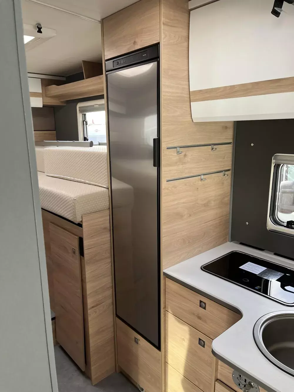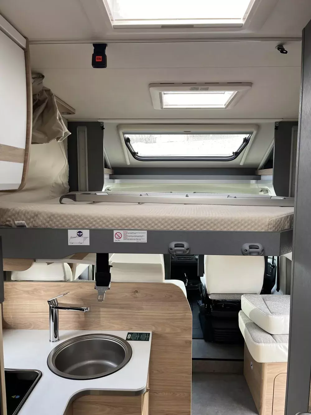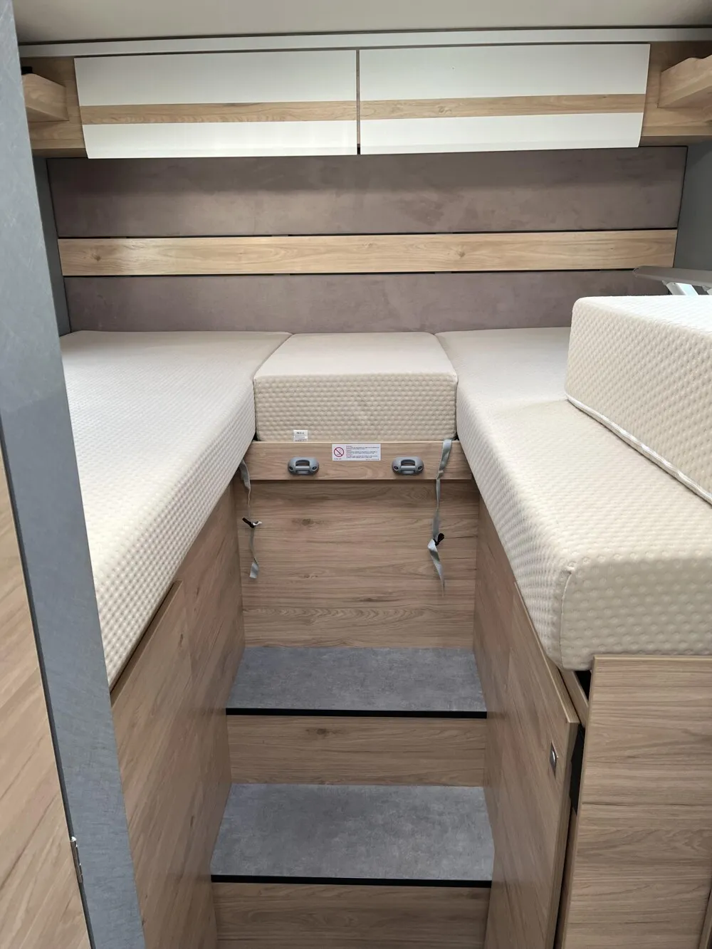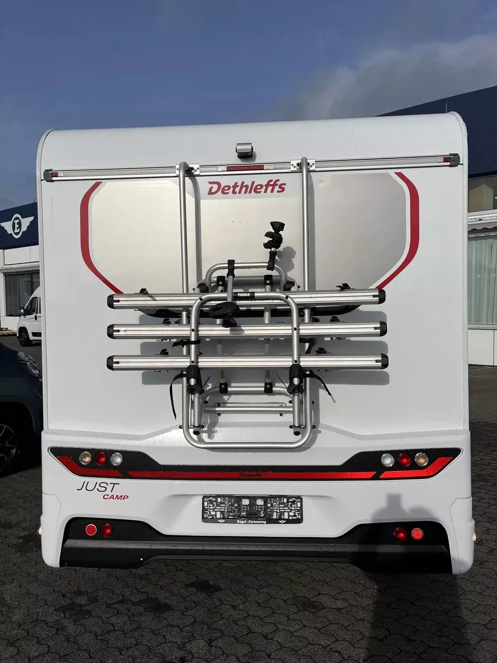 - Active-Paket T 6812 EB (Ausstellfenster in der T-Haube, Wohnraumtür mit Fenster inkl. Verdunkelung und Zentralverriegelung (inkl. Fahrerhaustür), Verdunklungsjalousien im Fahrerhaus, Panorama-Dachhaube 70 x 50 cm im Wohnraum, Light Moments: Indirekte Ambientebeleuchtung über den Dachstauschränken, Light Moments: Indirekte Wandflächen-Ambientebeleuchtung, Stauraum-Türe links, Doppelverglaste Rahmenfenster mit Verdunklung & Mückenschutz inkl. verkleidete Küchenrückwand, Textilleder-Wohnwelt Heron, Vorbereitung Solar, Light Moments: Küchenrückwand beleuchtet, Vorbereitung Dach-Klimaanlage, Digitales Bedienelement für Warmluftheizung, Dethleffs Naviceiver inkl. DAB+, Truck Navigation, Wireless Apple CarPlay und Android Auto, Rückfahrkamera (Einfachkamera), Vorbereitung SAT-Anlage, Active Außendesign (Heckleuchtenträger mit schwarzem Diffusor, erweiterte Beklebung, Skidplate "rot"), Bettumbau Einzelbetten zu Doppelbett, Gemütliche L-Sitzgruppe mit freistehendem, absenkbarem Tischfuß und 2 integrierte 3-Punkt-Gurte, Duschrost, Cassettenmarkise Omnistor 4.0 m (manuell))