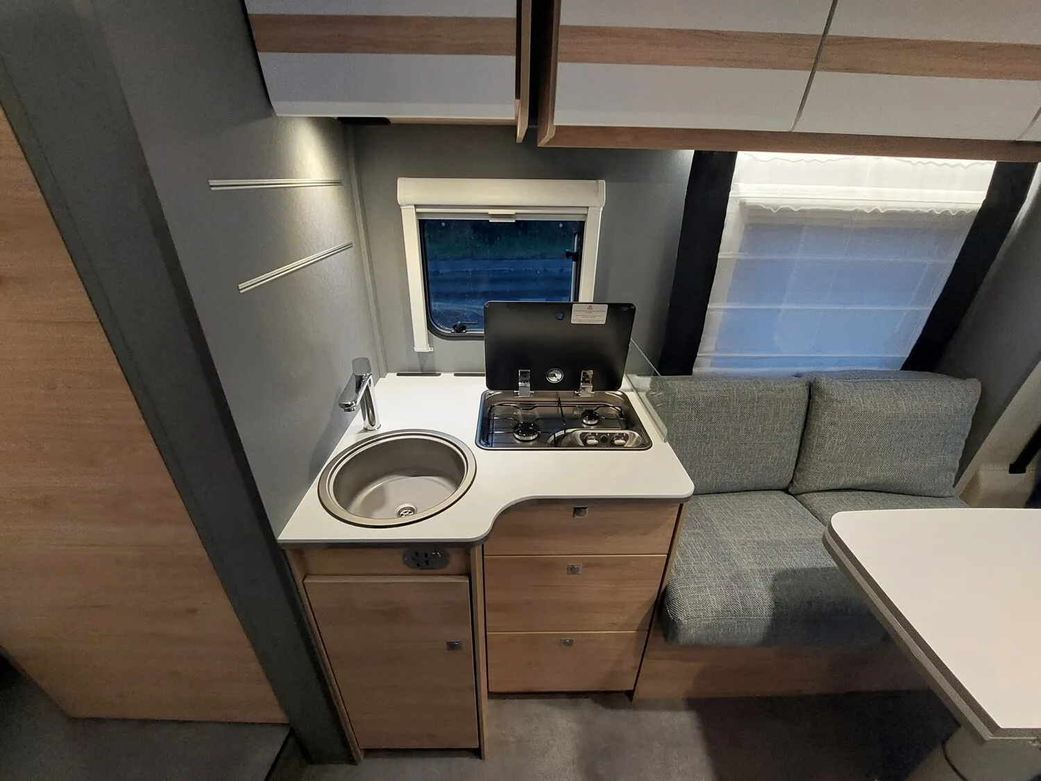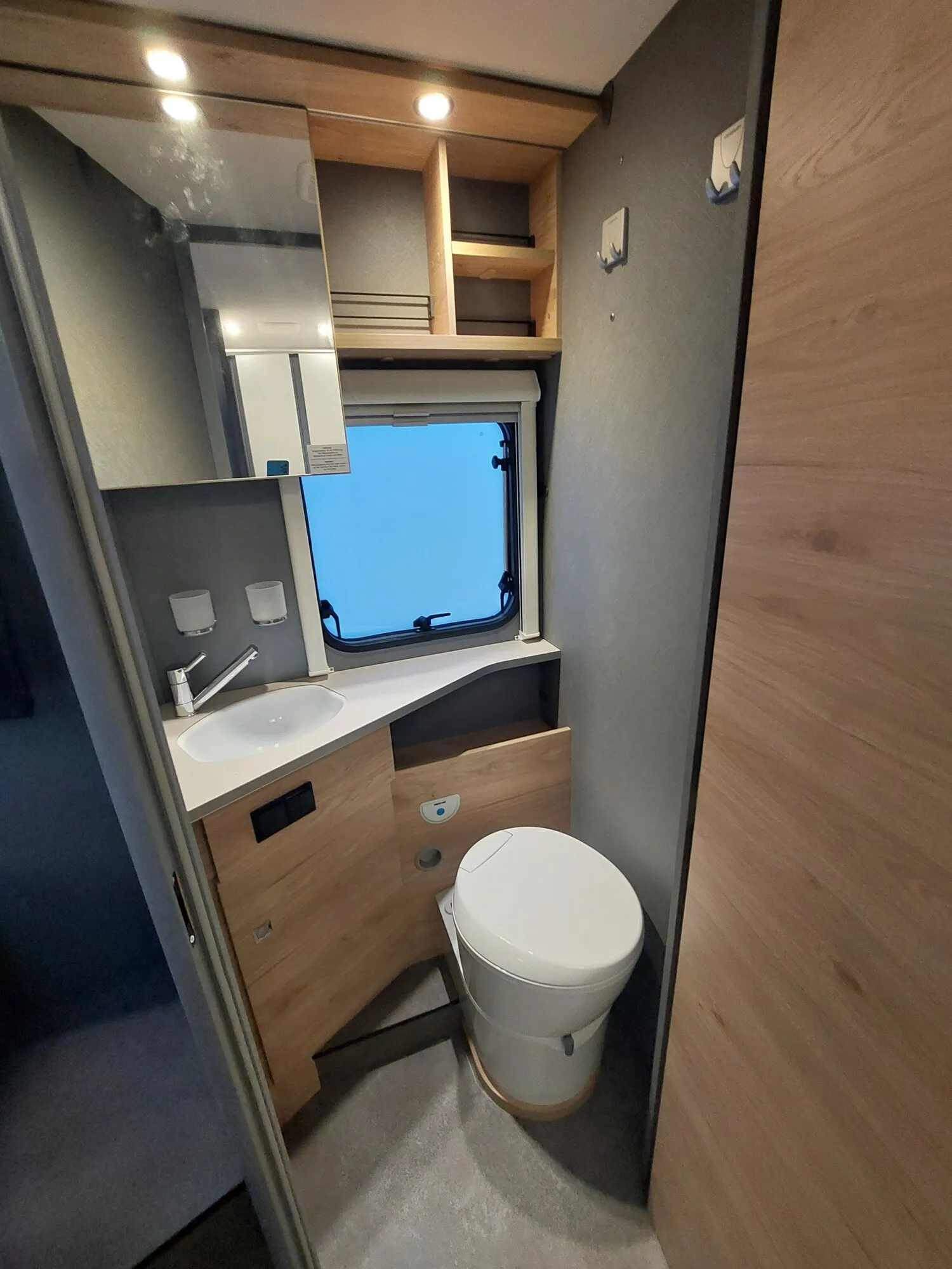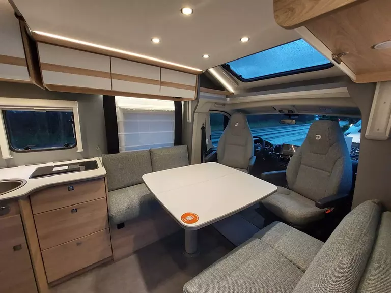 - Family-Paket T 7052 DBL (Ausstellfenster in der T-Haube, Wohnraumtür mit Fenster inkl. Verdunkelung und Zentralverriegelung (inkl. Fahrerhaustüre), Verdunklungsjalousien im Fahrerhaus, Panorama-Dachhaube 70 x 50 cm im Wohnraum, Light Moments: Indirekte Ambientebeleuchtung über den Dachstauschränken, Light Moments: Indirekte Wandflächen-Ambientebeleuchtung, Stauraum-Türe links)