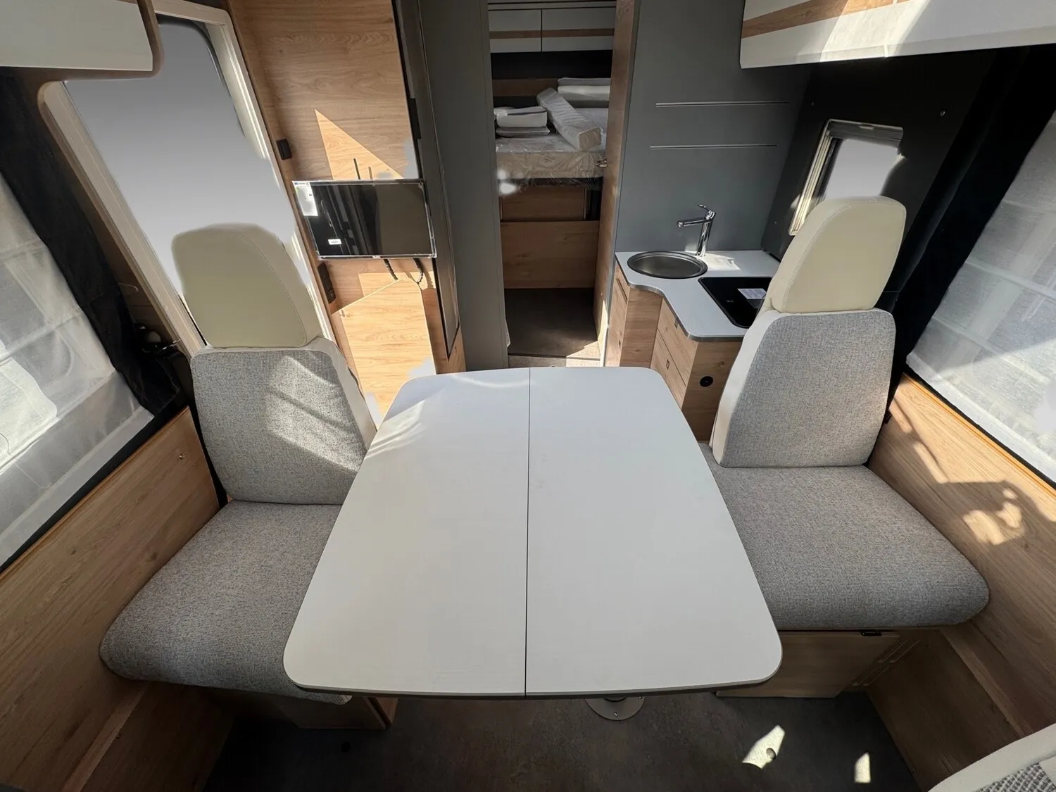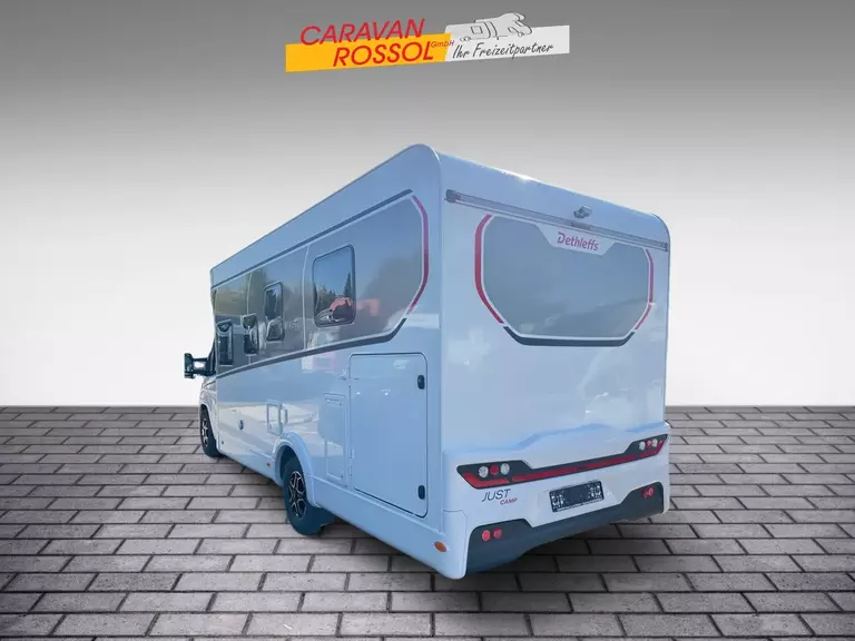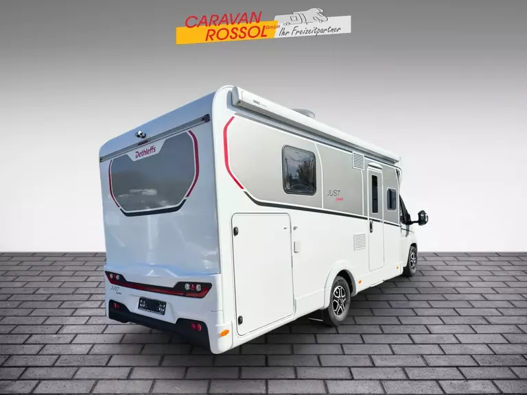 - Active-Paket T 7052 DBL (Ausstellfenster in der T-Haube, Wohnraumtür mit Fenster inkl. Verdunkelung und Zentralverriegelung (inkl. Fahrerhaustür), Verdunklungsjalousien im Fahrerhaus, Panorama-Dachhaube 70 x 50 cm im Wohnraum, Light Moments: Indirekte Ambientebeleuchtung über den Dachstauschränken, Light Moments: Indirekte Wandflächen-Ambientebeleuchtung, Stauraum-Türe links, Doppelverglaste Rahmenfenster mit Verdunklung & Mückenschutz inkl. verkleidete Küchenrückwand, Textilleder-Wohnwelt Heron, Vorbereitung Solar, Light Moments: Küchenrückwand beleuchtet, Vorbereitung Dach-Klimaanlage, Digitales Bedienelement für Warmluftheizung, Dethleffs Naviceiver inkl. DAB+, Truck Navigation, Wireless Apple CarPlay und Android Auto, Rückfahrkamera (Einfachkamera), Vorbereitung SAT-Anlage, Active Außendesign (Heckleuchtenträger mit schwarzem Diffusor, erweiterte Beklebung, Skidplate "rot"), Fenster im Badezimmer, Duschrost, Cassettenmarkise Omnistor 4,5 m (manuell))