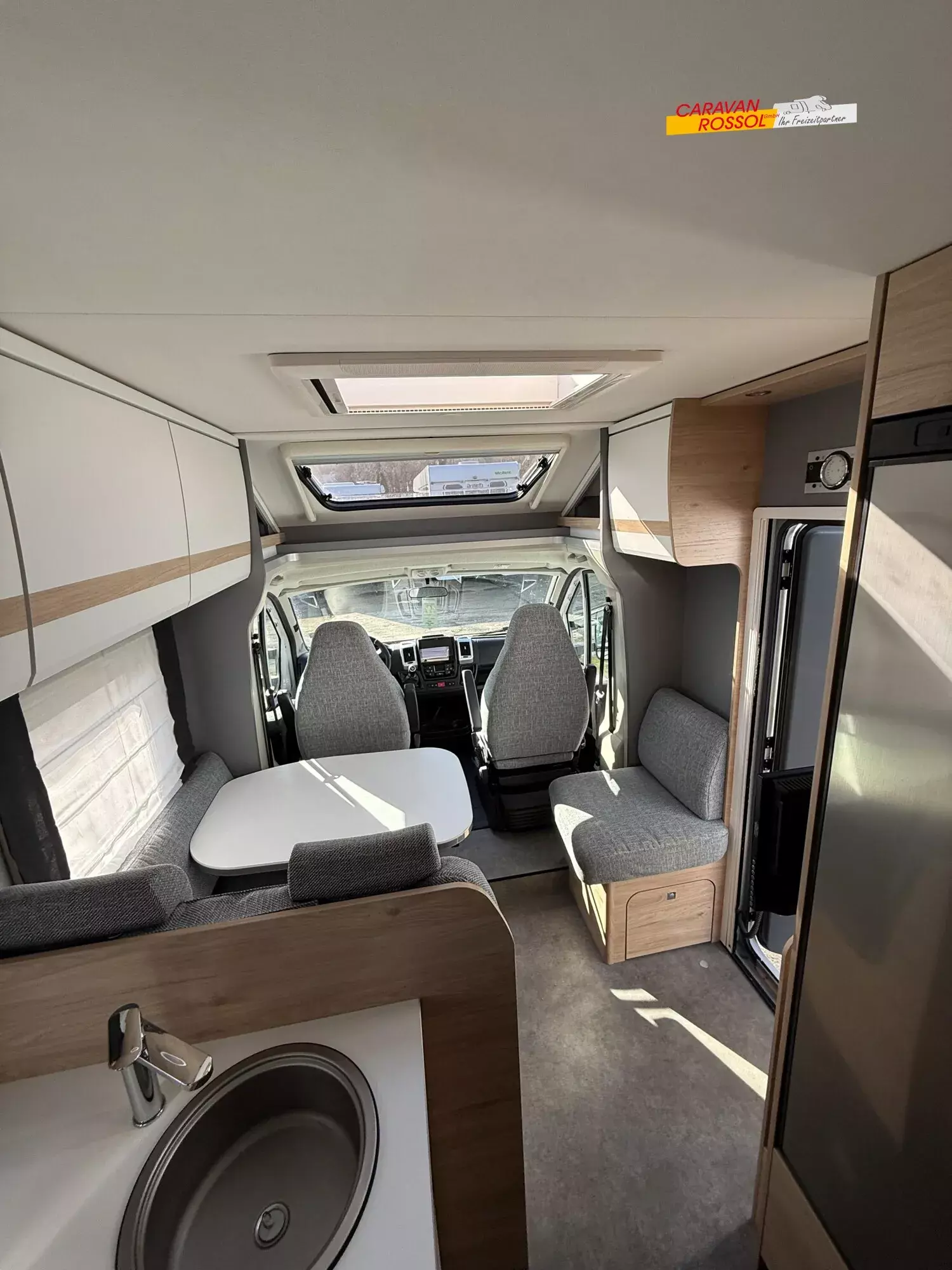 - Family-Paket T 6812, 7052 EB (Ausstellfenster in der T-Haube, Wohnraumtür mit Fenster inkl. Verdunkelung und Zentralverriegelung (inkl. Fahrerhaustüre), Verdunklungsjalousien im Fahrerhaus, Panorama-Dachhaube 70 x 50 cm im Wohnraum, Light Moments: Indirekte Ambientebeleuchtung über den Dachstauschränken, Light Moments: Indirekte Wandflächen-Ambientebeleuchtung, Bettumbau Einzelbetten zu Doppelbett, Gemütliche L-Sitzgruppe mit freistehendem, absenkbarem Tischfuß und 2 integrierte 3-Punkt-Gurte, Stauraum-Türe links)