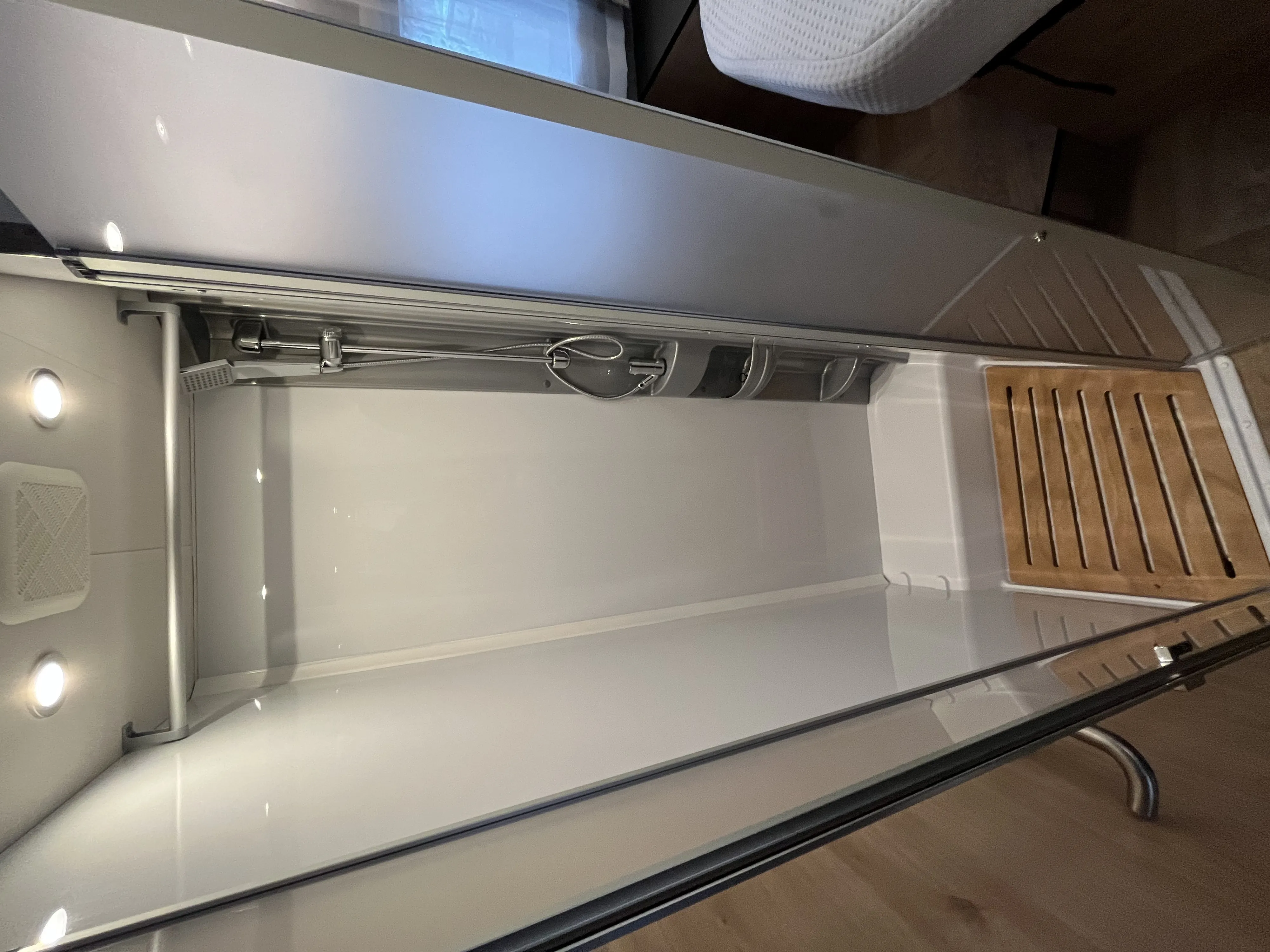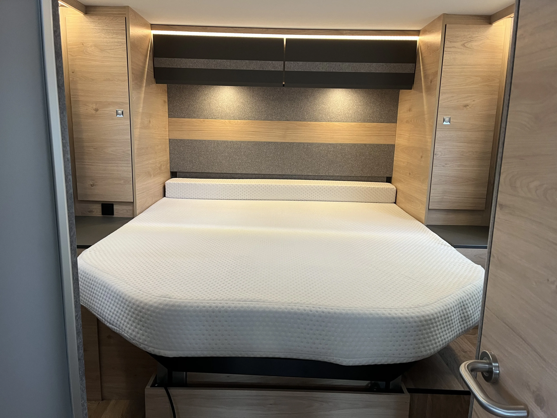 Indirekte Ambientebeleuchtung über den Dachstauschränken,