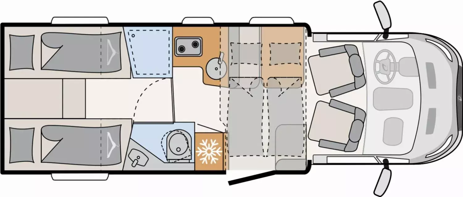 - Gemütliche L-Sitzgruppe mit freistehendem, absenkbarem Tischfuß und 2 integrierte 3-Punkt-Gurte
