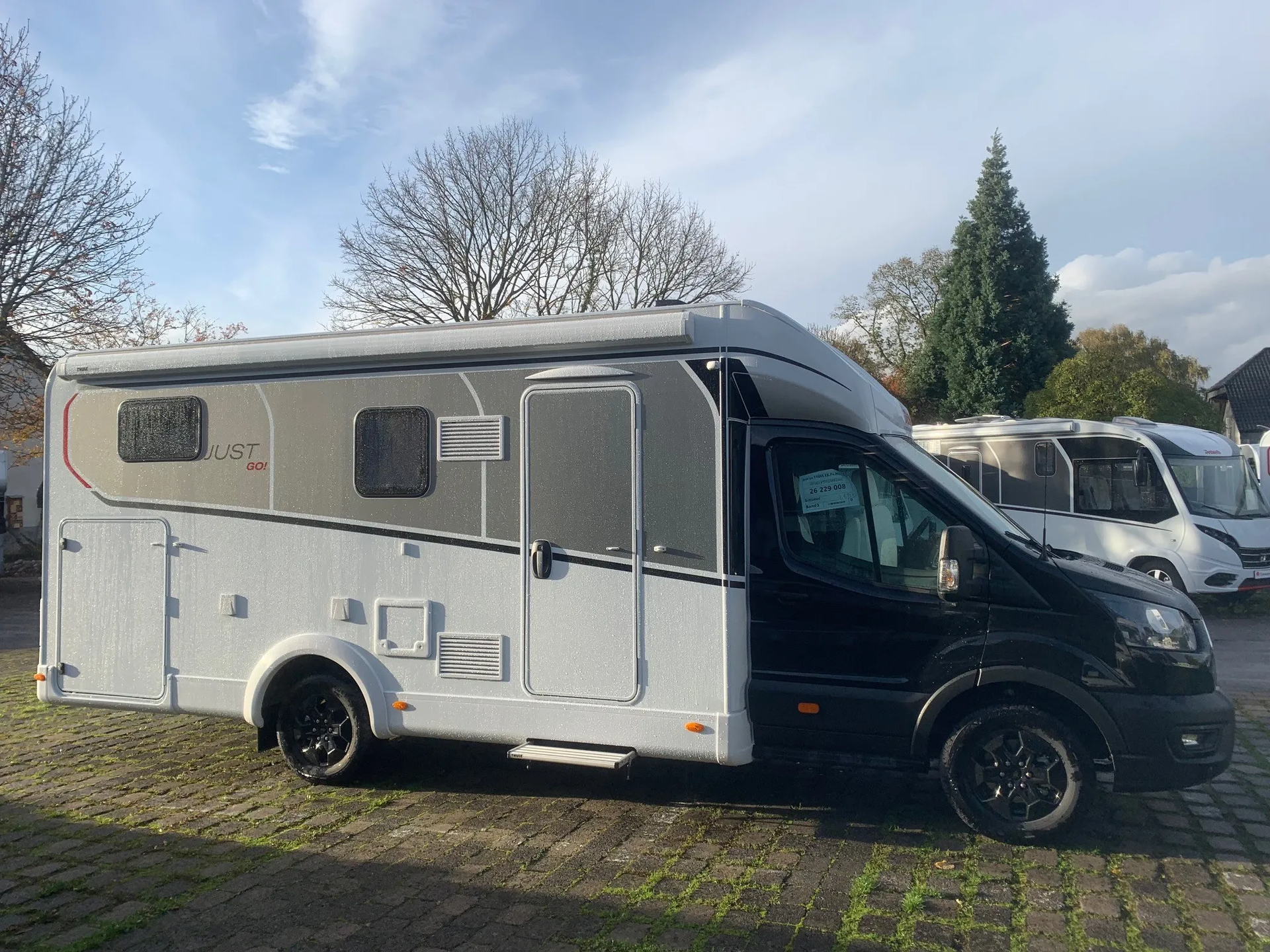 - Active Paket T 7055 EB (Ford Transit Light Tiefrahmen (3.500 kg), TDCi EcoBlue (2,0 l / 121 kW / 165 PS) Heavy Duty, 8-Gang Automatikgetriebe, Außenfarbe Fahrerhaus Schwarz Metallic (Agate Black Metallic), Alufelge Ford 16 Zoll, schwarz, Klimaanlage automatisch inkl. Staub- und Pollenfilter, Außenspiegel elektrisch einstellbar und beheizbar, Ausstellfenster in der T-Haube, Verdunklungsjalousien im Fahrerhaus, Panorama-Dachhaube 70 x 50 cm im Wohnraum, Stauraum-Türe links, Light Moments: Indirekte Ambientebeleuchtung über den Dachstauschränken, Light Moments: Indirekte Wandflächen-Ambientebeleuchtung, Doppelverglaste Rahmenfenster mit Verdunklung & Mückenschutz, Textilleder-Wohnwelt Heron inkl. Fahrer- und Beifahrer-Sitzbezug, Active Außendesign (Heckleuchtenträger mit schwarzem Diffusor, erweiterte Beklebung), Bettumbau Einzelbetten zu Doppelbett, Gemütliche L-Sitzgruppe mit freistehendem, absenkbarem Tischfuß und 2 integrierte 3-Punkt-Gurte)
