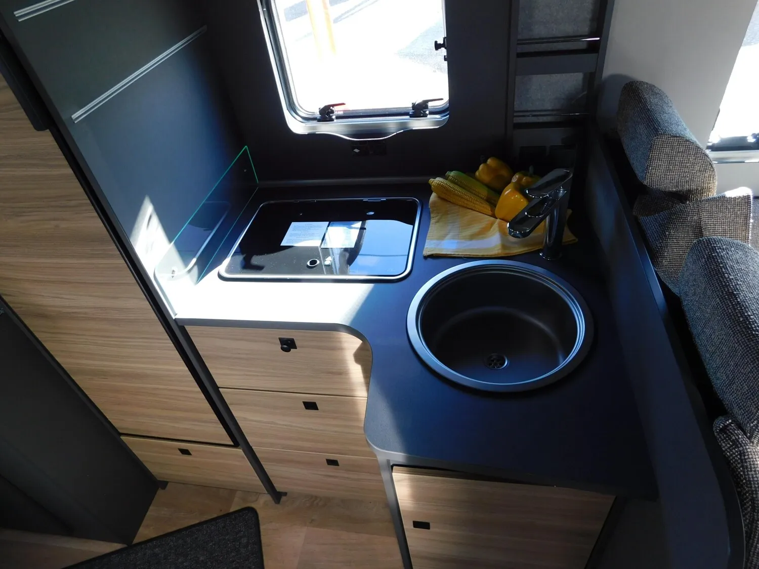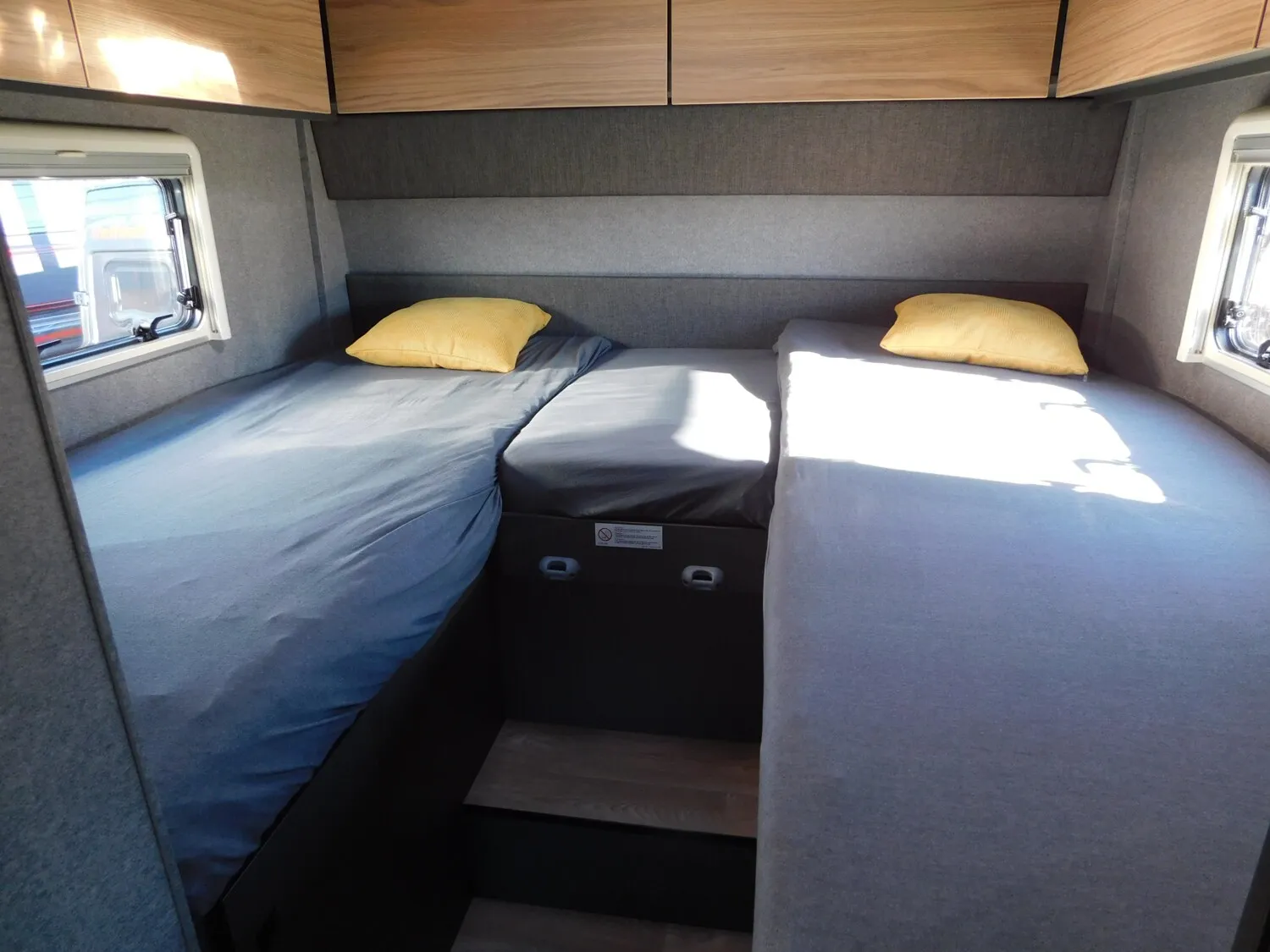 - Family-Paket T 6817, 7057 EB (Wohnraumtür mit Fenster inkl. Verdunkelung und Zentralverriegelung (inkl. Fahrerhaustür), Verdunklungsjalousien im Fahrerhaus, Light Moments: Indirekte Ambientebeleuchtung über den Dachstauschränken, Light Moments: Indirekte Wandflächen-Ambientebeleuchtung, Light Moments: Küchenrückwand beleuchtet, Light Moments: Indirekte Beleuchtung im Badezimmer mit beleuchteter Duschkonsole, Light Moments: Eingangsmodul mit indirekter Beleuchtung, Light Moments: Verkleidete Sitztruhenwange mit indirekter Beleuchtung, Gemütliche L-Sitzgruppe mit freistehendem, absenkbarem Tischfuß und 2 integrierte 3-Punkt-Gurte, Bettumbau Einzelbetten zu Doppelbett)