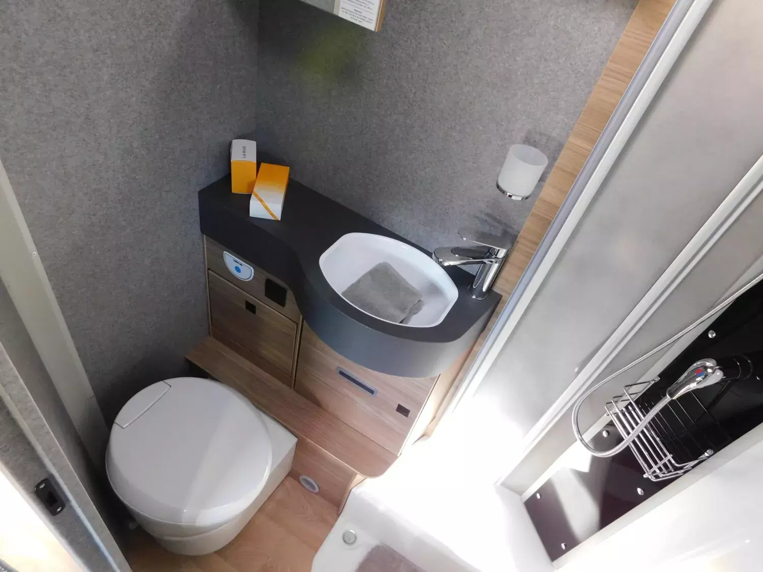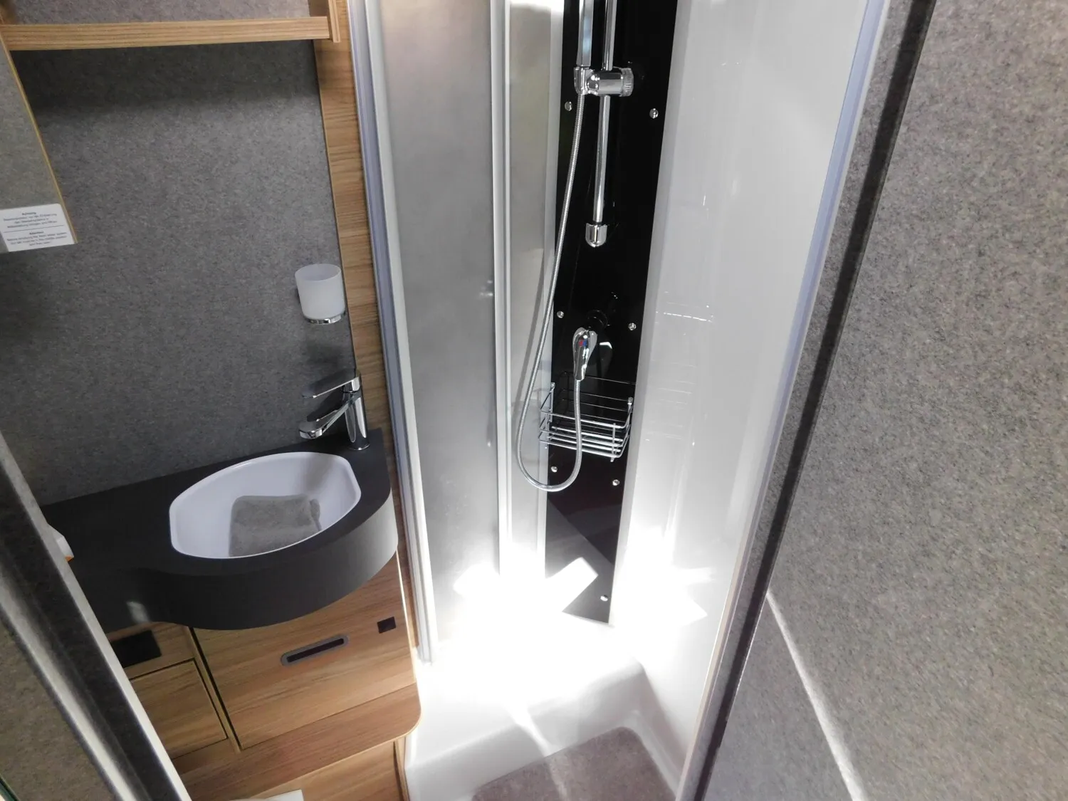 - Winterkomfort-Paket Warmluft (Schalter für Wasserpumpe, Unterbodenleitungen isoliert, Abwassertank isoliert, Abwassertank und -leitungen elektrisch beheizt, Gas Warmluftheizung 6 kW mit 1,8 kW Elektroheizstab und Warmwasserboiler inkl. digitalem Bedienelement, XPS Aufbau-Isolierung)