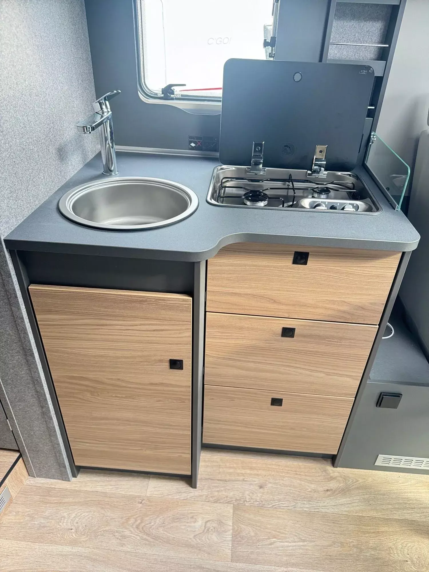 - GT Design-Paket (Doppelverglaste Rahmenfenster mit Verdunklung & Mückenschutz, Außendesign GT (Heckleuchtenträger mit schwarzem Diffusor, erweiterte Beklebung, Skidplate "rot"))