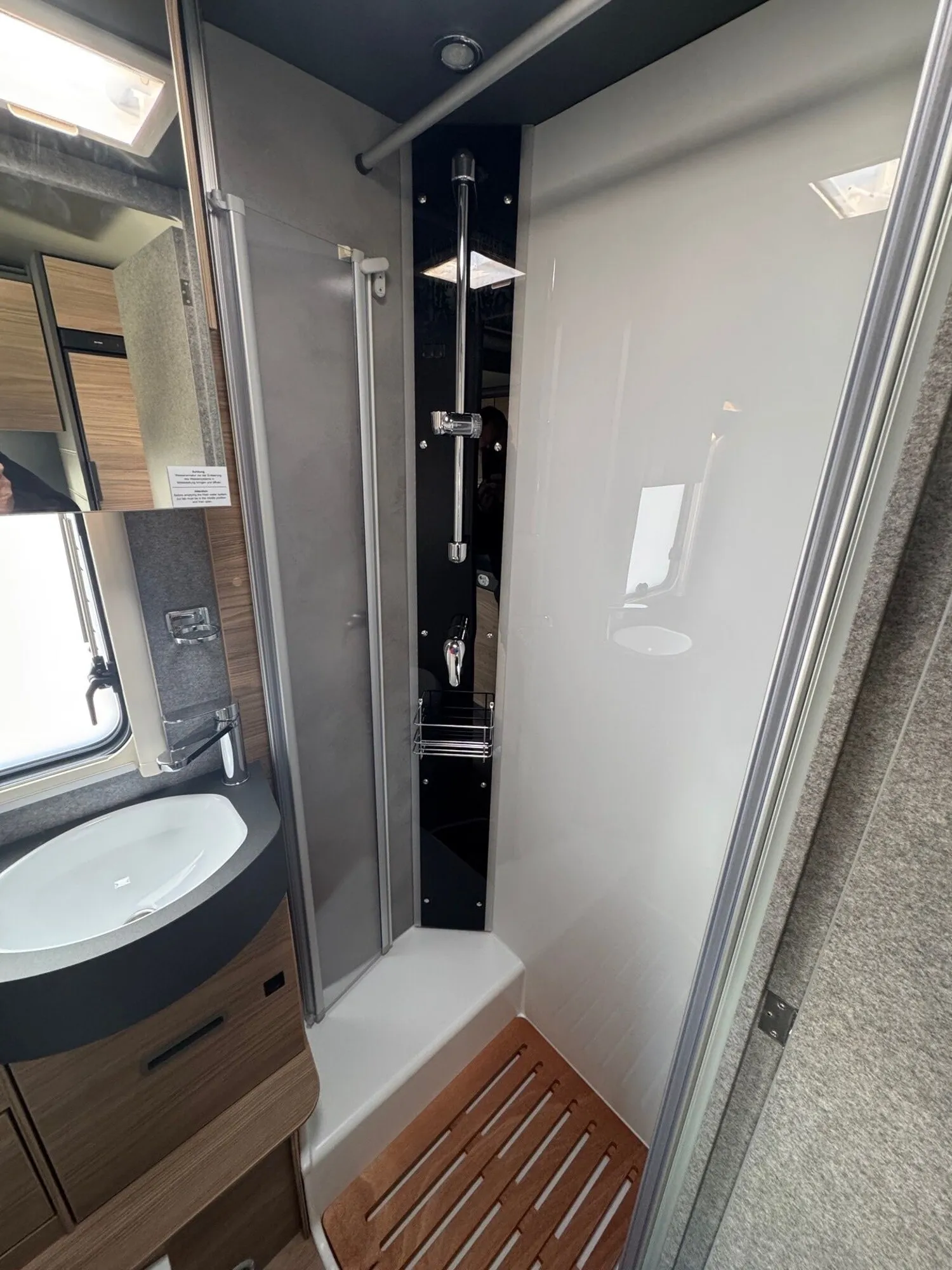 - Family-Paket T 6817, 7057 EB (Wohnraumtür mit Fenster inkl. Verdunkelung und Zentralverriegelung (inkl. Fahrerhaustür), Verdunklungsjalousien im Fahrerhaus, Light Moments: Indirekte Ambientebeleuchtung über den Dachstauschränken, Light Moments: Indirekte Wandflächen-Ambientebeleuchtung, Light Moments: Küchenrückwand beleuchtet, Light Moments: Indirekte Beleuchtung im Badezimmer mit beleuchteter Duschkonsole, Light Moments: Eingangsmodul mit indirekter Beleuchtung, Light Moments: Verkleidete Sitztruhenwange mit indirekter Beleuchtung, Gemütliche L-Sitzgruppe mit freistehendem, absenkbarem Tischfuß und 2 integrierte 3-Punkt-Gurte, Bettumbau Einzelbetten zu Doppelbett)