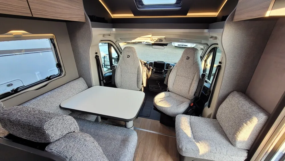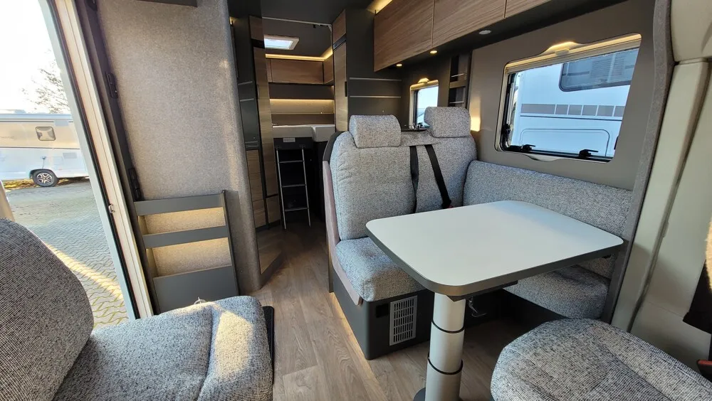 - Family-Paket T 6817, 7057 EB (Wohnraumtür mit Fenster inkl. Verdunkelung und Zentralverriegelung (inkl. Fahrerhaustür), Verdunklungsjalousien im Fahrerhaus, Light Moments: Indirekte Ambientebeleuchtung über den Dachstauschränken, Light Moments: Indirekte Wandflächen-Ambientebeleuchtung, Light Moments: Küchenrückwand beleuchtet, Light Moments: Indirekte Beleuchtung im Badezimmer mit beleuchteter Duschkonsole, Light Moments: Eingangsmodul mit indirekter Beleuchtung, Light Moments: Verkleidete Sitztruhenwange mit indirekter Beleuchtung, Gemütliche L-Sitzgruppe mit freistehendem, absenkbarem Tischfuß und 2 integrierte 3-Punkt-Gurte, Bettumbau Einzelbetten zu Doppelbett)