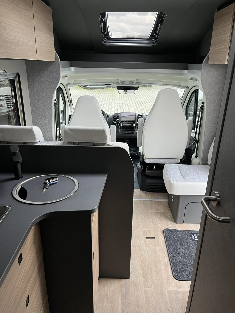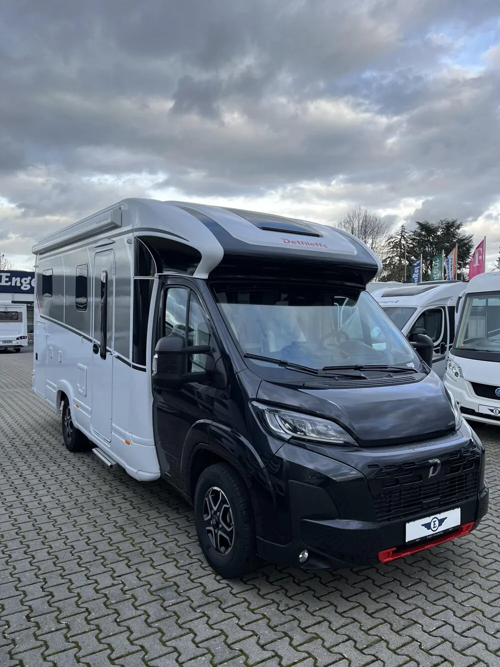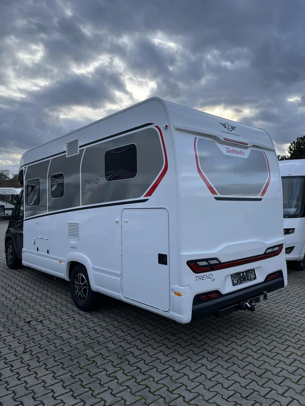 - Active-Paket T 6817, 7057 EB (Wohnraumtür mit Fenster inkl. Verdunkelung und Zentralverriegelung (inkl. Fahrerhaustür), Verdunklungsjalousien im Fahrerhaus, Light Moments: Indirekte Ambientebeleuchtung über den Dachstauschränken, Light Moments: Indirekte Wandflächen-Ambientebeleuchtung, Light Moments: Küchenrückwand beleuchtet, Light Moments: Indirekte Beleuchtung im Badezimmer mit beleuchteter Duschkonsole, Light Moments: Eingangsmodul mit indirekter Beleuchtung, Light Moments: Verkleidete Sitztruhenwange mit indirekter Beleuchtung, Gemütliche L-Sitzgruppe mit freistehendem, absenkbarem Tischfuß und 2 integrierte 3-Punkt-Gurte, Bettumbau Einzelbetten zu Doppelbett, Außenfarbe Chassis Schwarz Metallic, Außendesign GT (Heckleuchtenträger mit schwarzem Diffusor, erweiterte Beklebung, Skidplate "rot"), Integrierte Einlinsen Rückfahrkamera, Vorbereitung SAT-Anlage, Vorbereitung Dach-Klimaanlage, Vorbereitung Solar, Duschrost, Dethleffs Naviceiver inkl. DAB+, Truck Navigation, Wireless Apple CarPlay und Android Auto, Textilleder-Wohnwelt Heron, Fenster im Badezimmer)