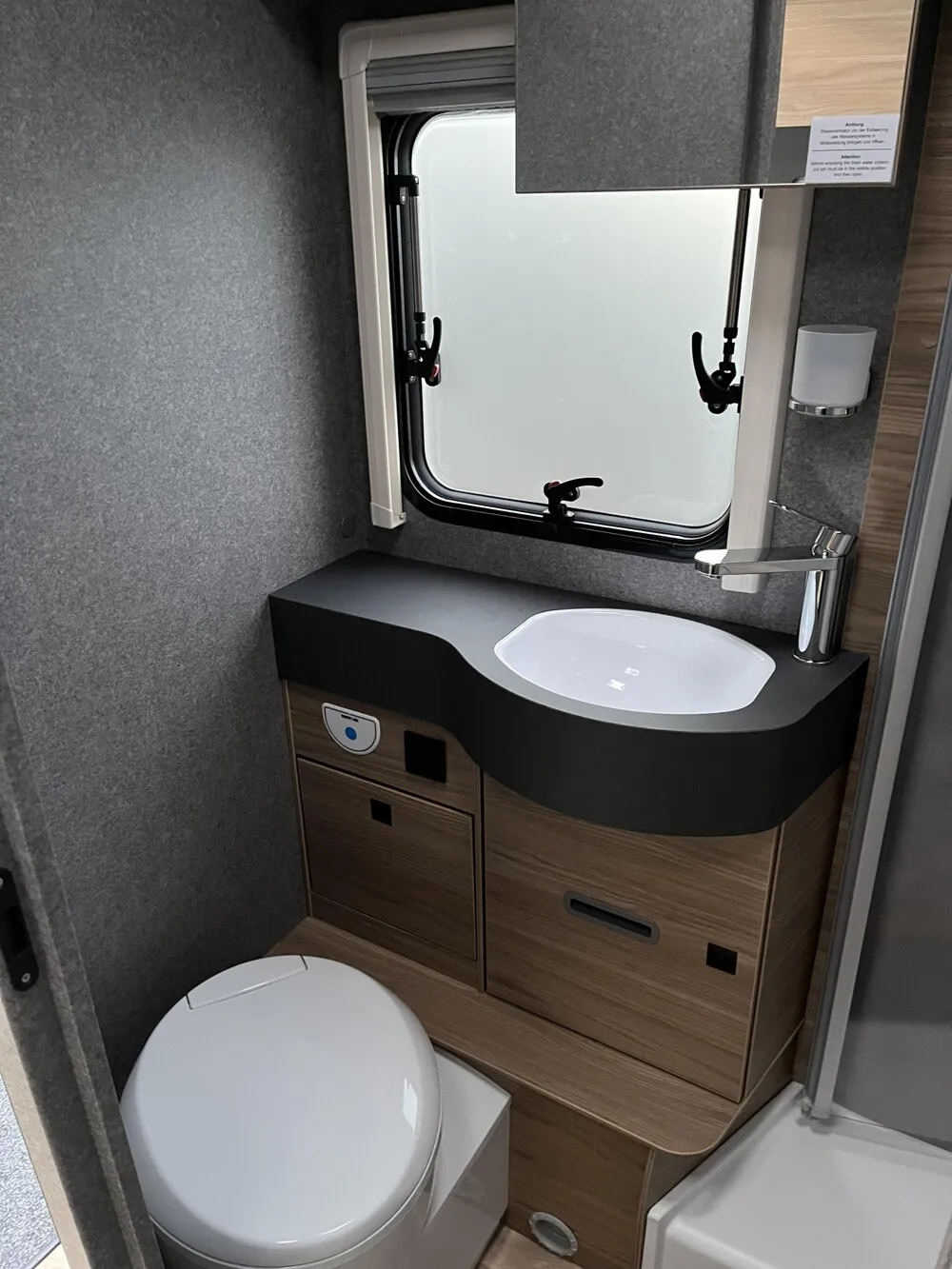 - Winterkomfort-Paket Warmluft (Schalter für Wasserpumpe, Unterbodenleitungen isoliert, Abwassertank isoliert, Abwassertank und -leitungen elektrisch beheizt, Gas Warmluftheizung 6 kW mit 1,8 kW Elektroheizstab und Warmwasserboiler inkl. digitalem Bedienelement, XPS Aufbau-Isolierung)
